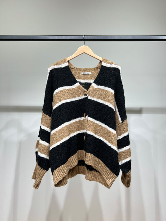 Cardigan Maille Large Motif Rayé Bi-Colore 18% Laine
