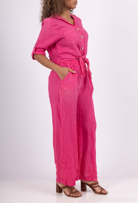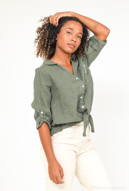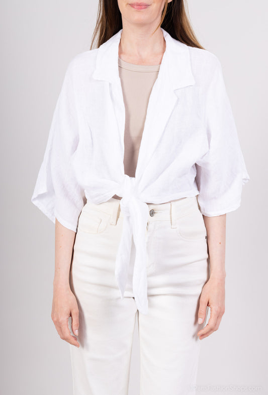 Chemise 100% Lin Cropped Noeud Manches 3/4