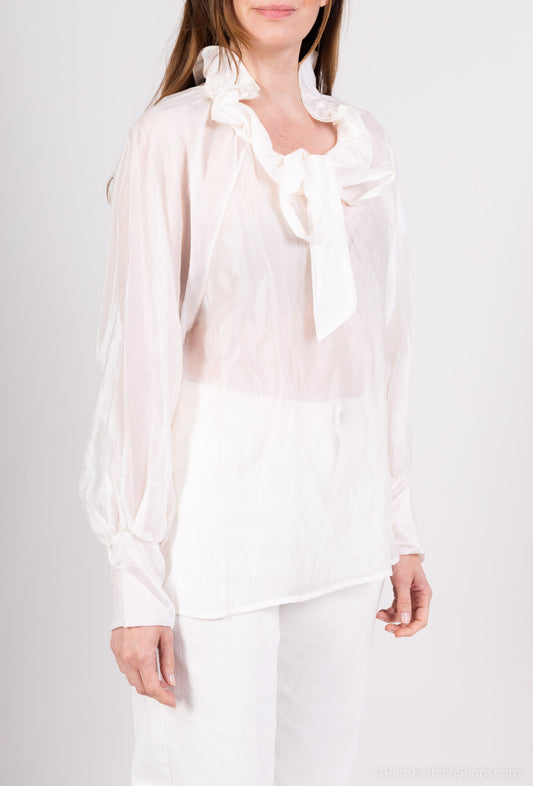 Chemisier Col Lavallière à Volants Léger En Tencel Polyester