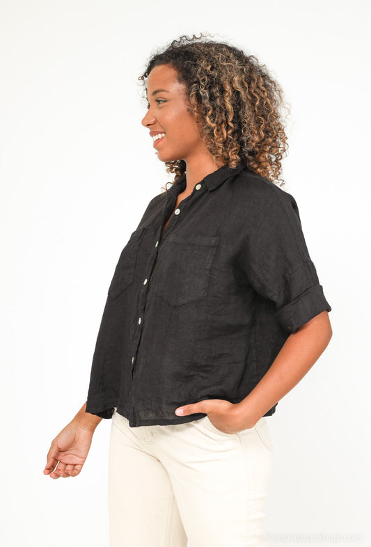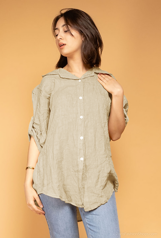 Chemise Ample Manche 3/4 Boutonné 100% Lin