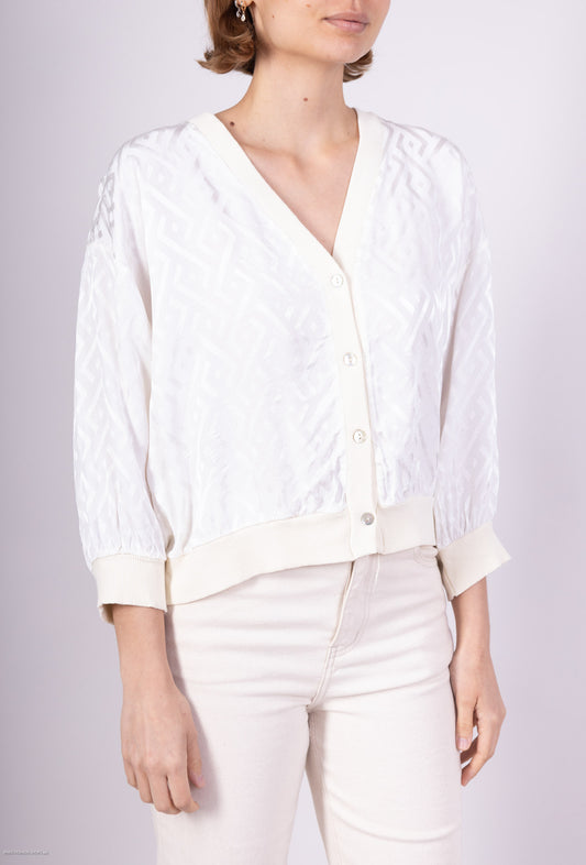 Cardigan à Motifs Géométrique Bords Côtes 100% Viscose