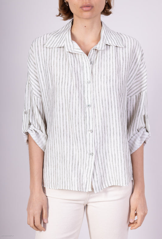 Chemise Manche Longue Boutonnée Rayures Vertical en Lin