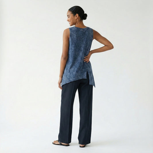 Débardeur 100% Coton Col V Asymétrique En Pointe à Boutons Motif Marbré