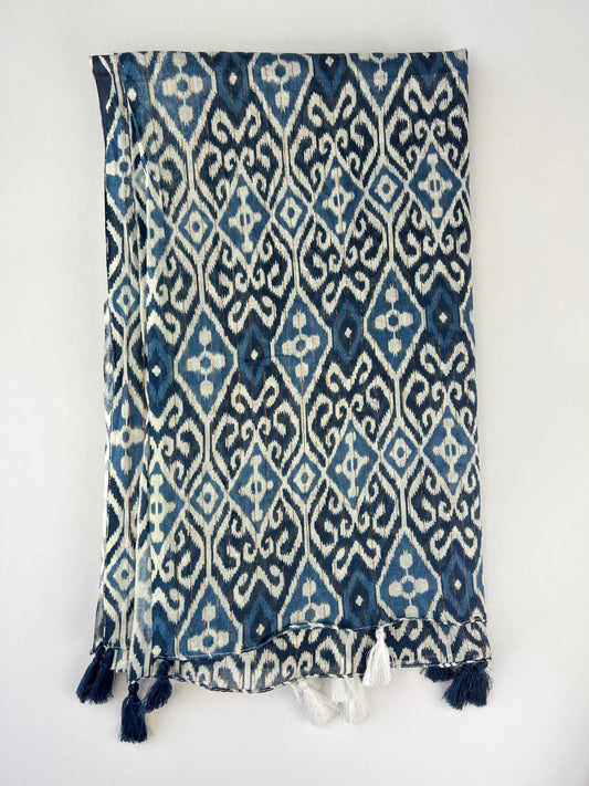 Foulard Motifs Ikat à Pampilles 100% Coton