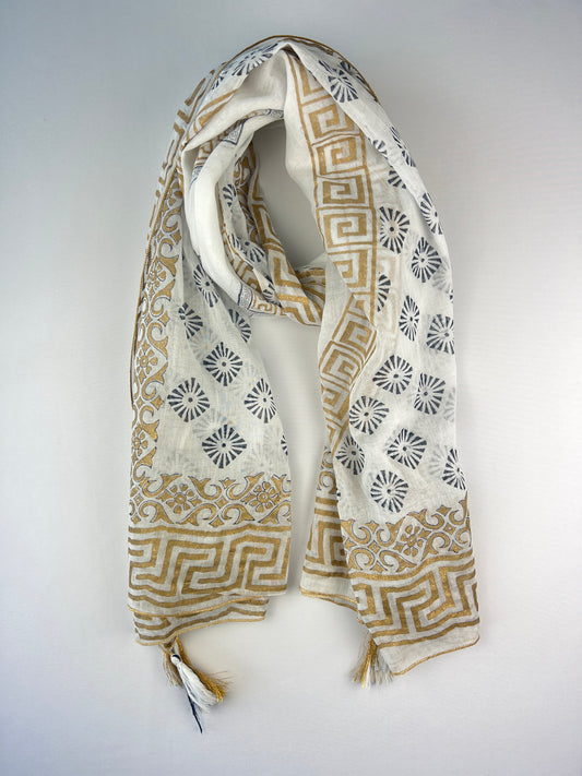 Foulard à Motifs Aztèque Et Pampilles 100% Coton