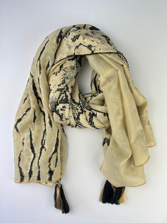 Foulard Carré 4 Motifs Animal à Pampilles 100% Viscose