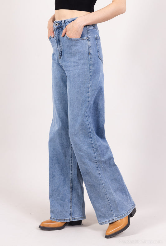 Jean Droit Stretch Coupe Large Taille Haute Taillé