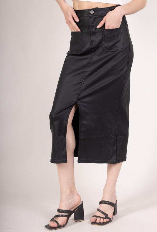 Jupe Jean Noir Fente Arrière Viscose Taillé XS-S-M-L-XL