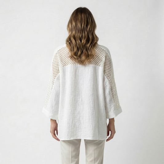 Chemisier Large Col V Maille Large Gaze De Coton 85% Tencel