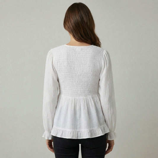 Chemisier Smoké Manche Bouffantes Coupe Peplum 100% Viscose