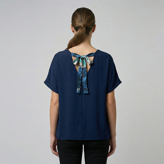 T-Shirt Manche Longue Col V Ouverture Dos Nœud Décoratif