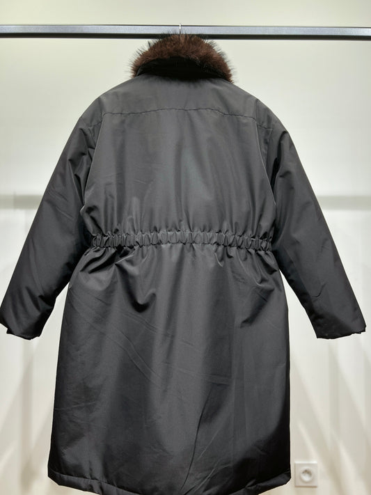Manteau Long Polaire Zippé Col Fourrure Bicolore Ajustable