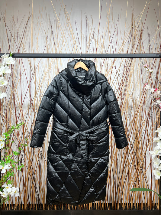 Doudoune Longue Col Montant à Capuche Boutonné & Zippé Avec Ceinture Taillé S-M-L-XL