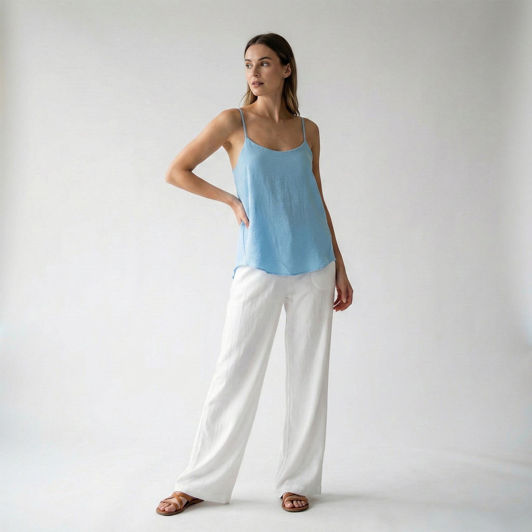 Round Neck Short Tank Top with Adjustable Thin Straps