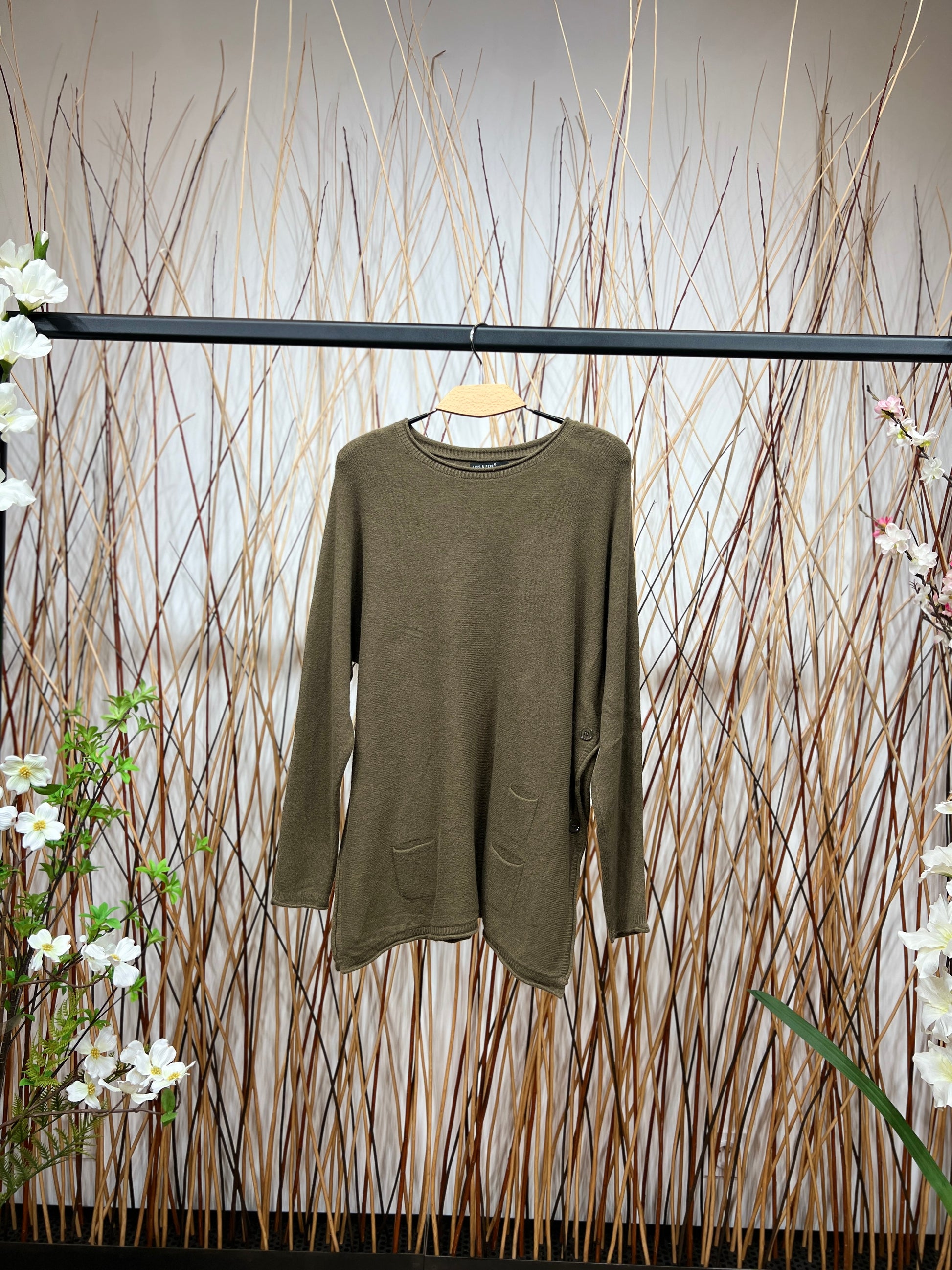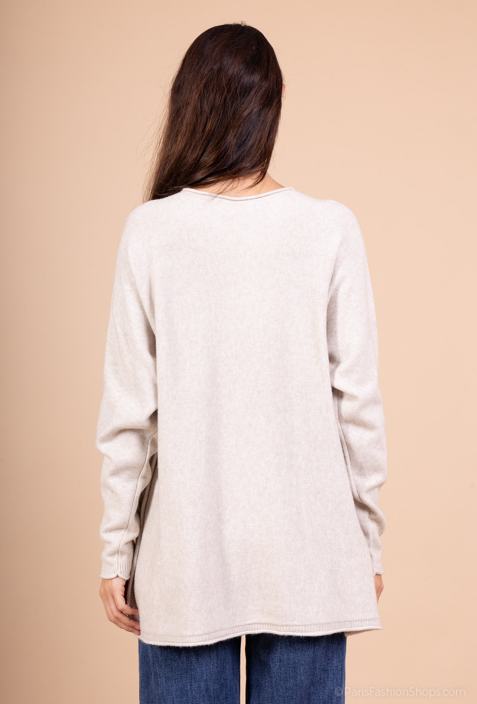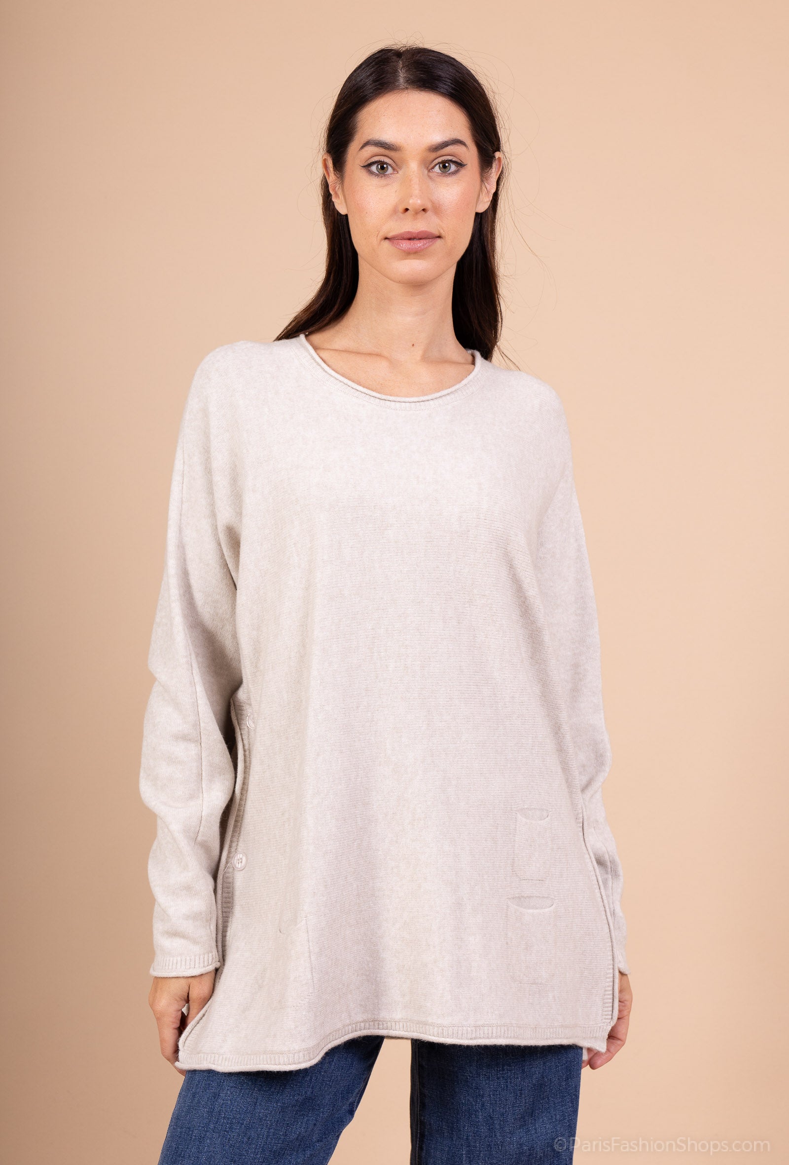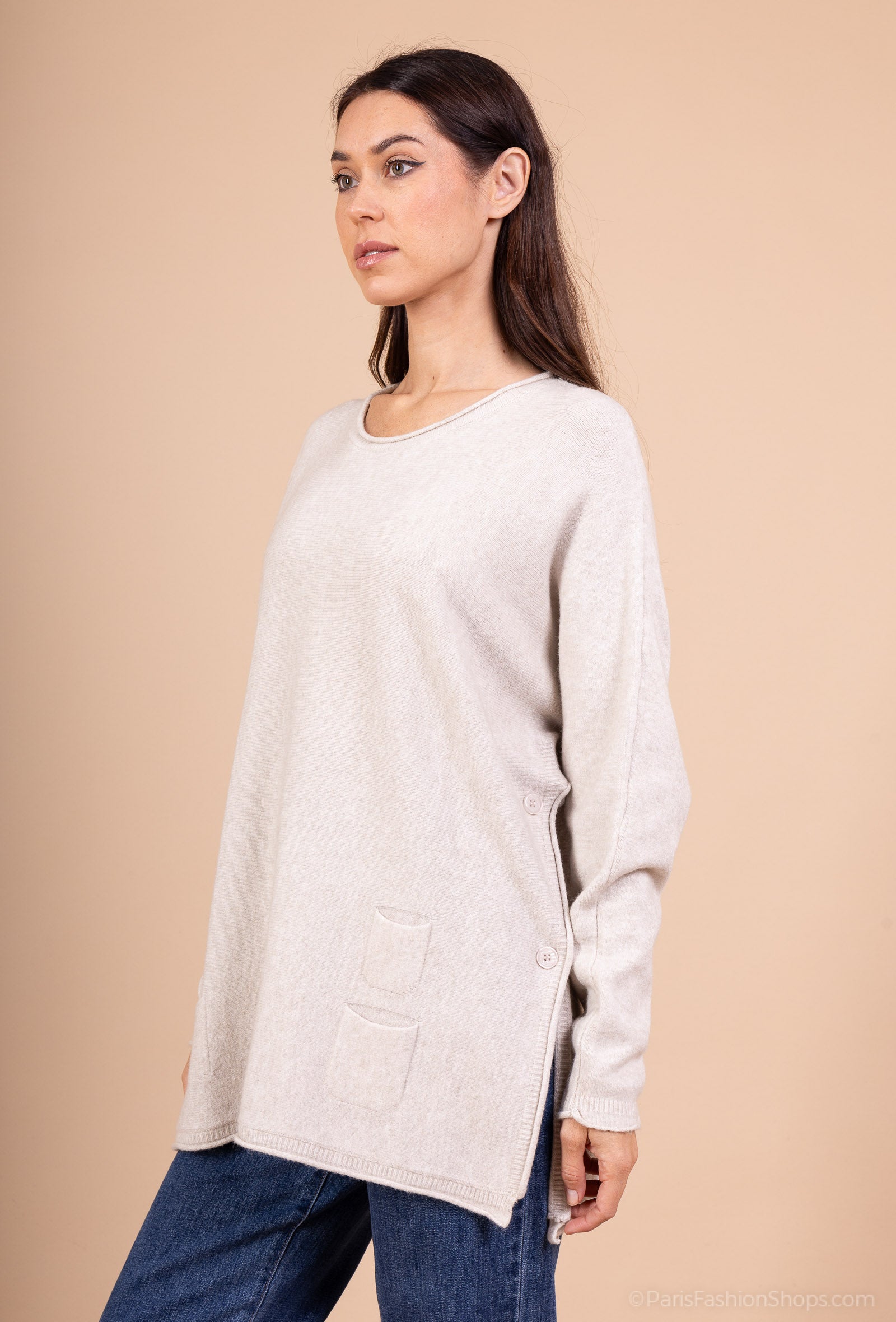 Pull Ample Fentes Cotés Boutonnées Poches Décoratives