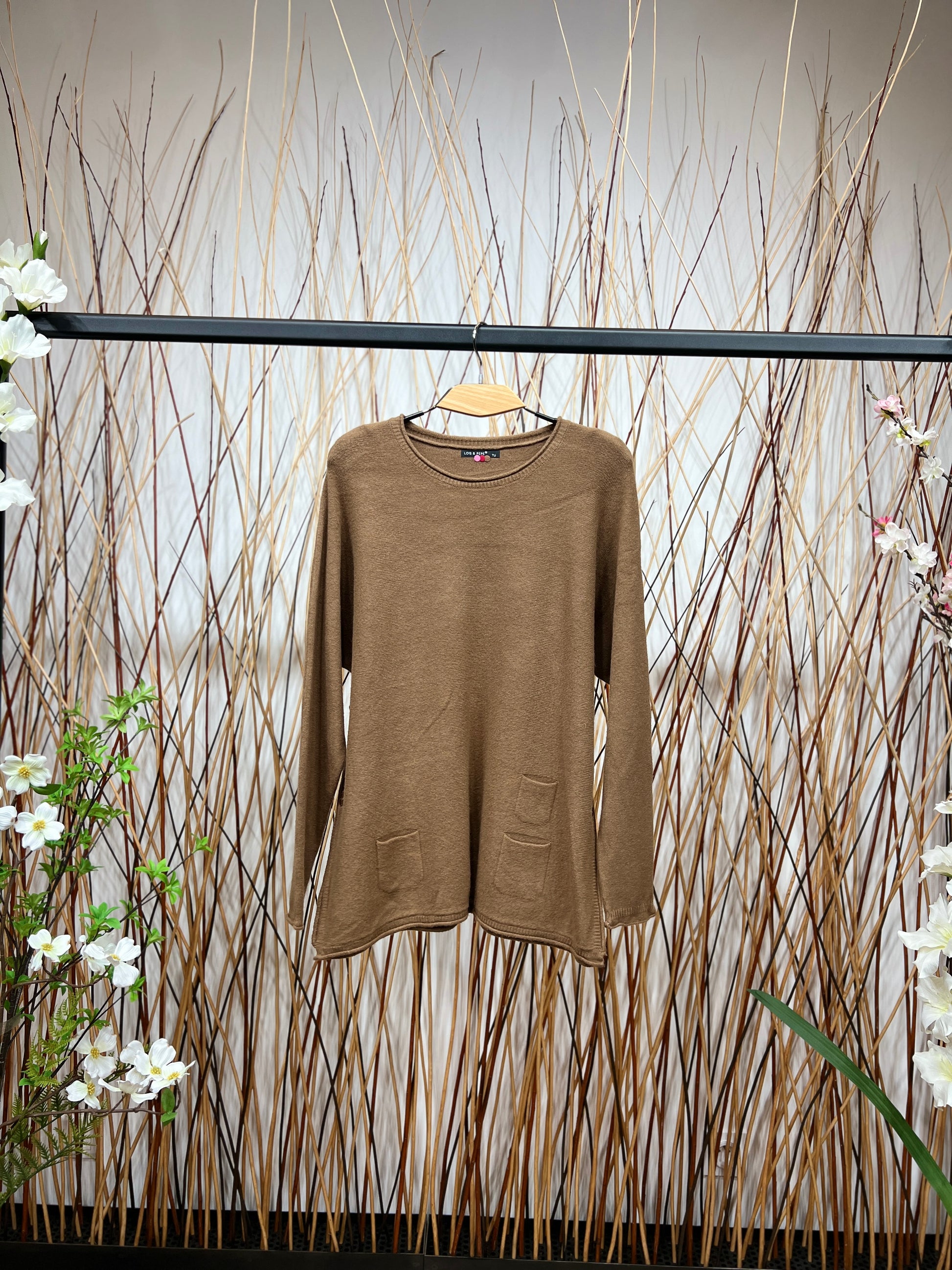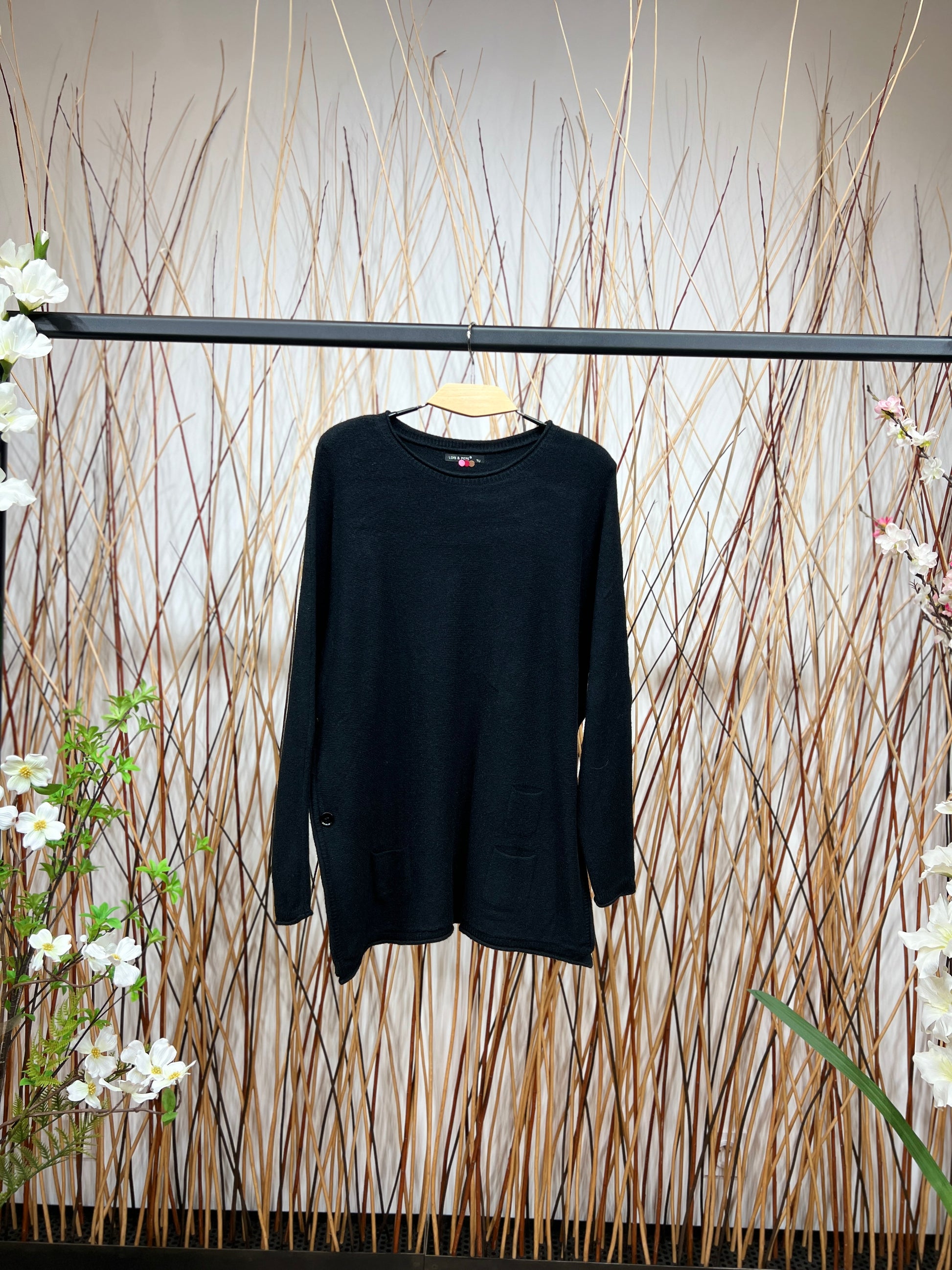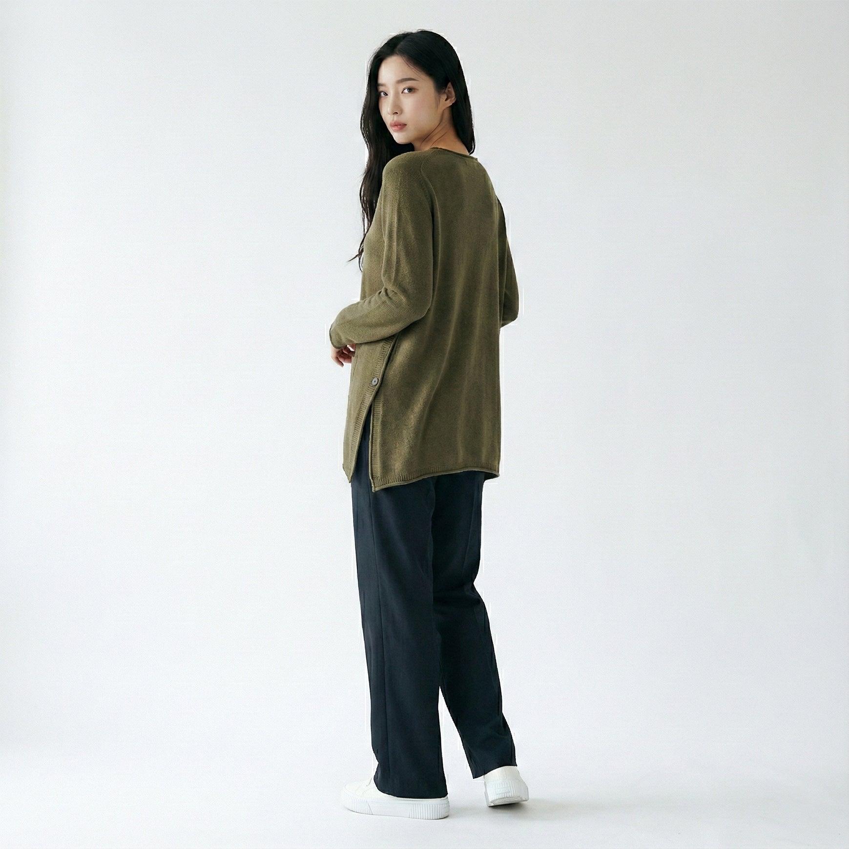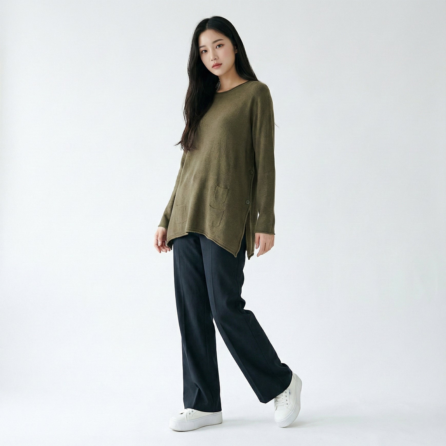 Pull Ample Fentes Cotés Boutonnées Poches Décoratives