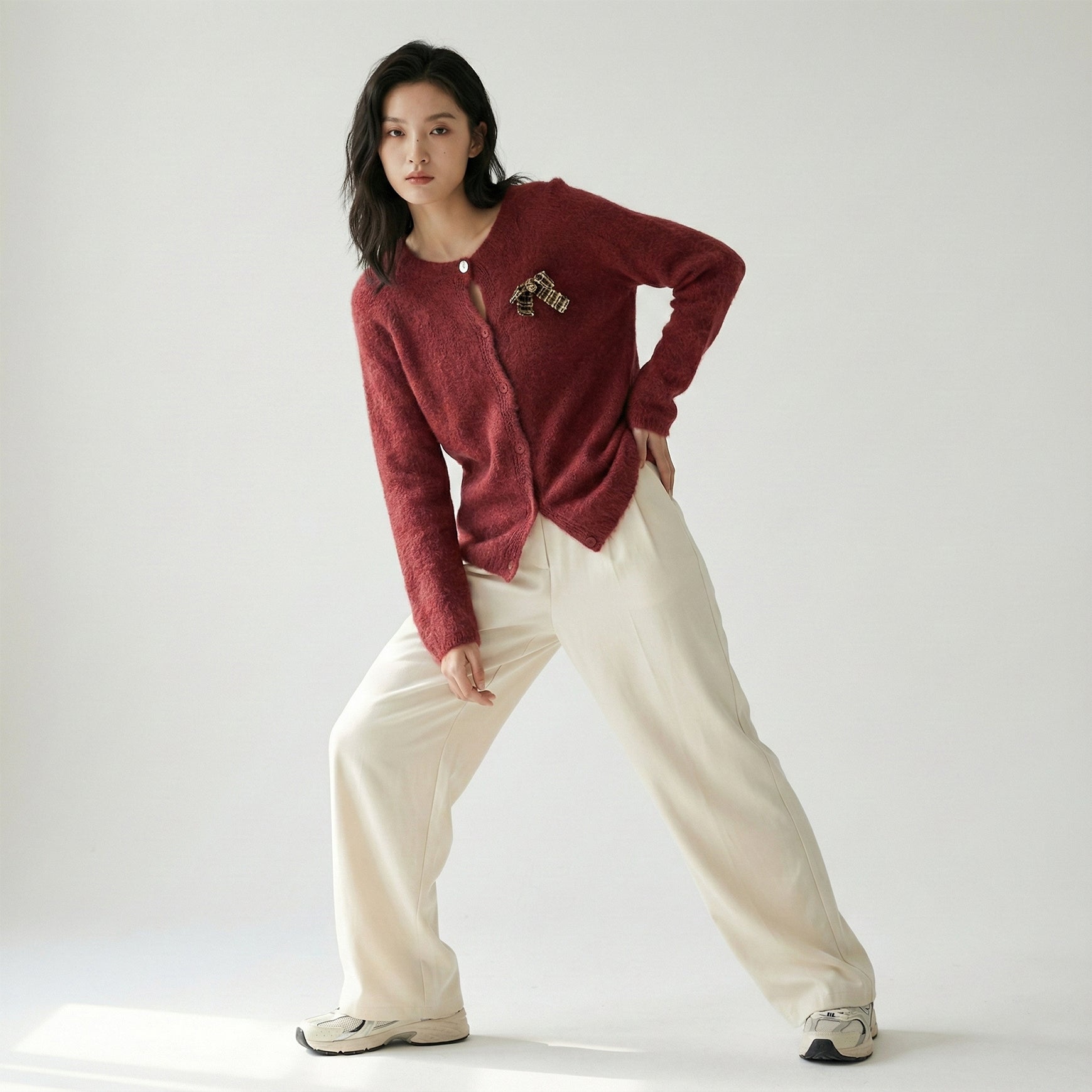 Pull Cardigan Maille Fine Pin Nœud 27% Alpaca