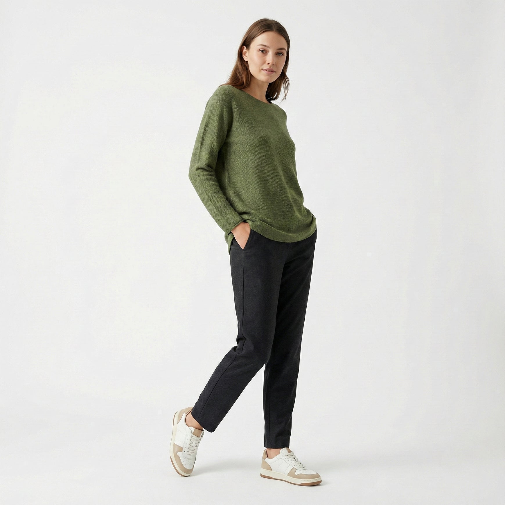 Long Sleeve Knitted Sweater Round Neck Viscose One Size Fits Sizes 36-44