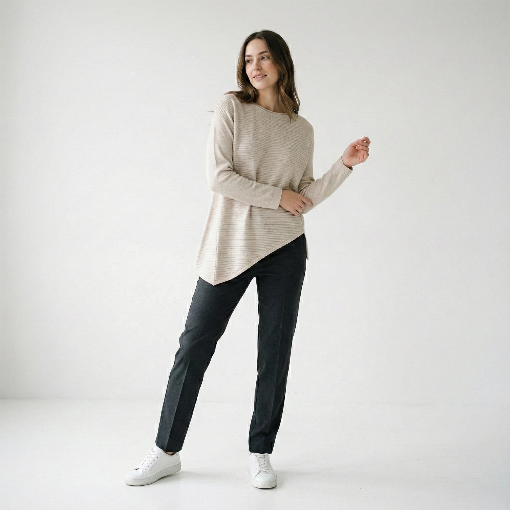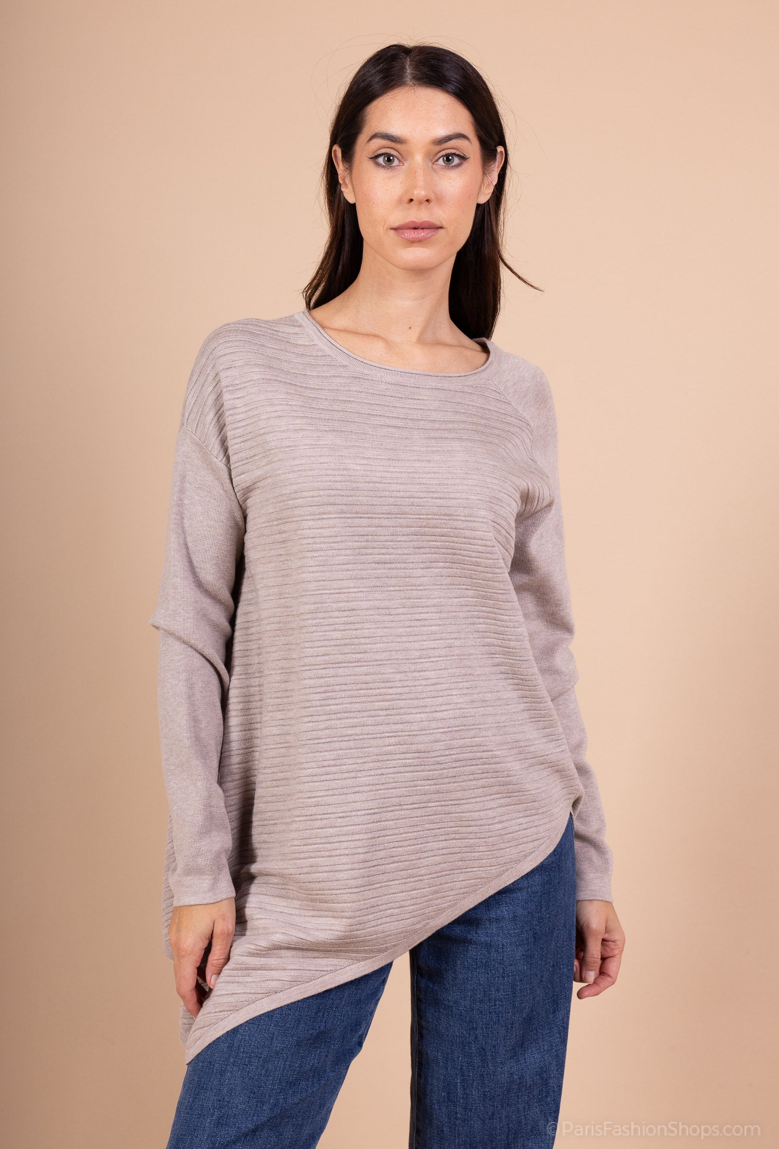 Pull Tunique Coupe Asymétrique Relief Rayures