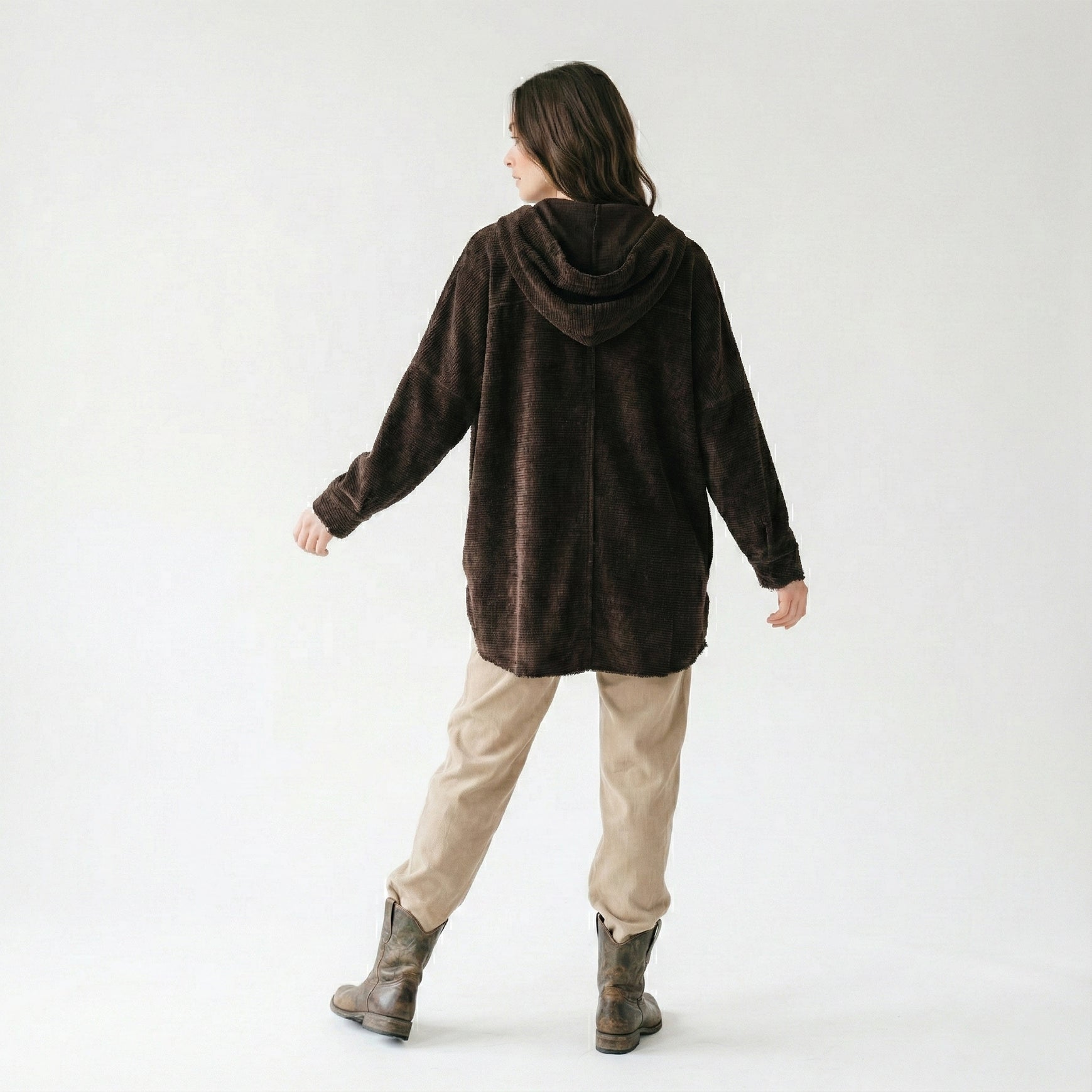 Oversized Zip-Up Hoodie with Distressed Effect Pleated Velvet One Size Fits Sizes 38-50