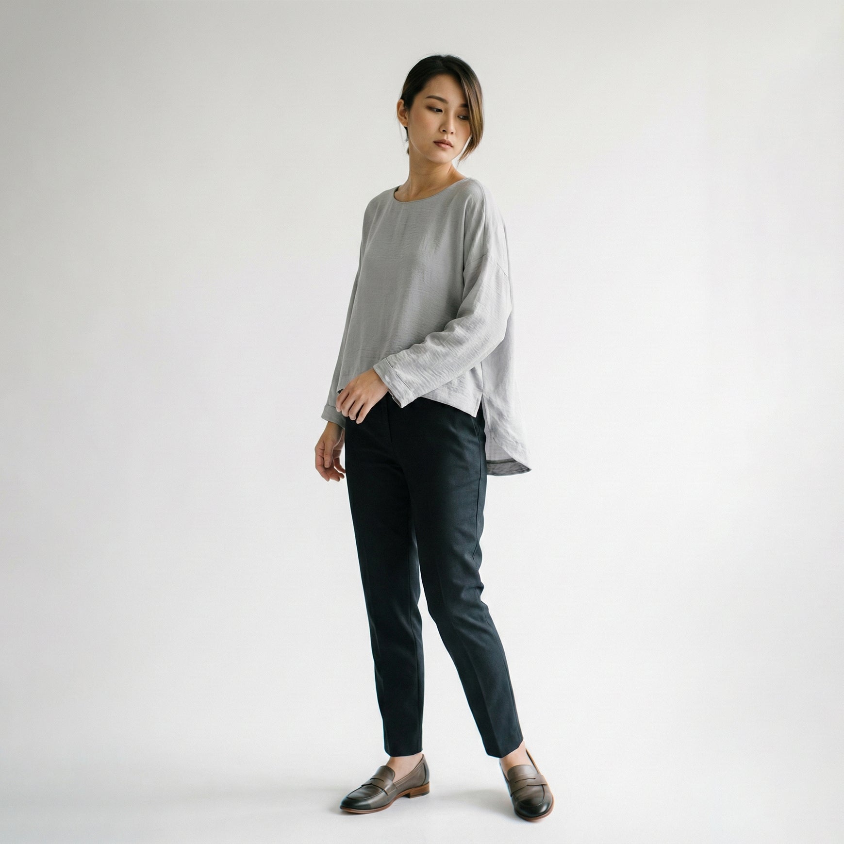 Long Sleeve Cropped T-Shirt with Slit and Back Teardrop Collar