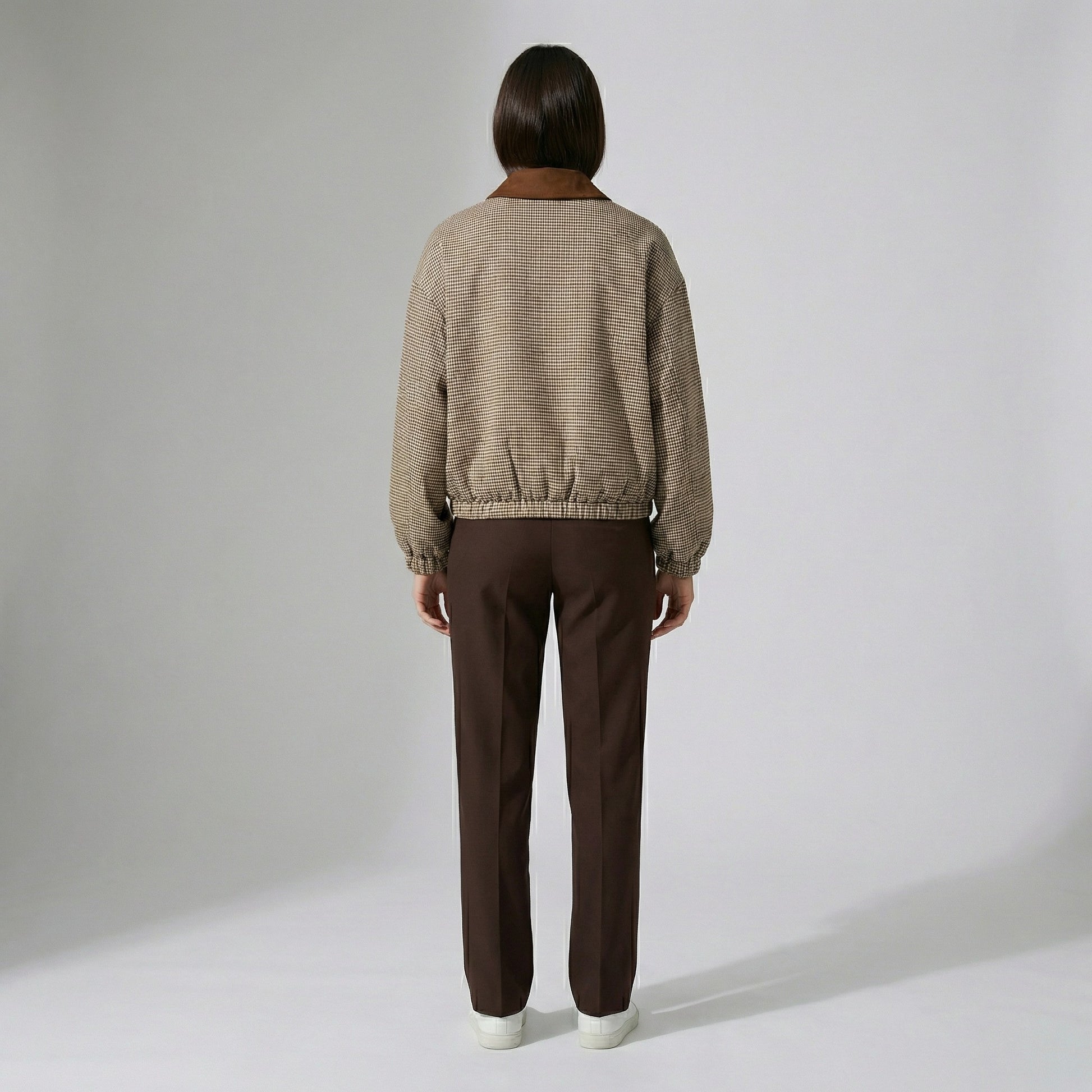 Veste Blousante Zippé Col Velour Motif Pied De Poule Manches Bouffantes Taille Unique Convient Aux Tailles 38-44