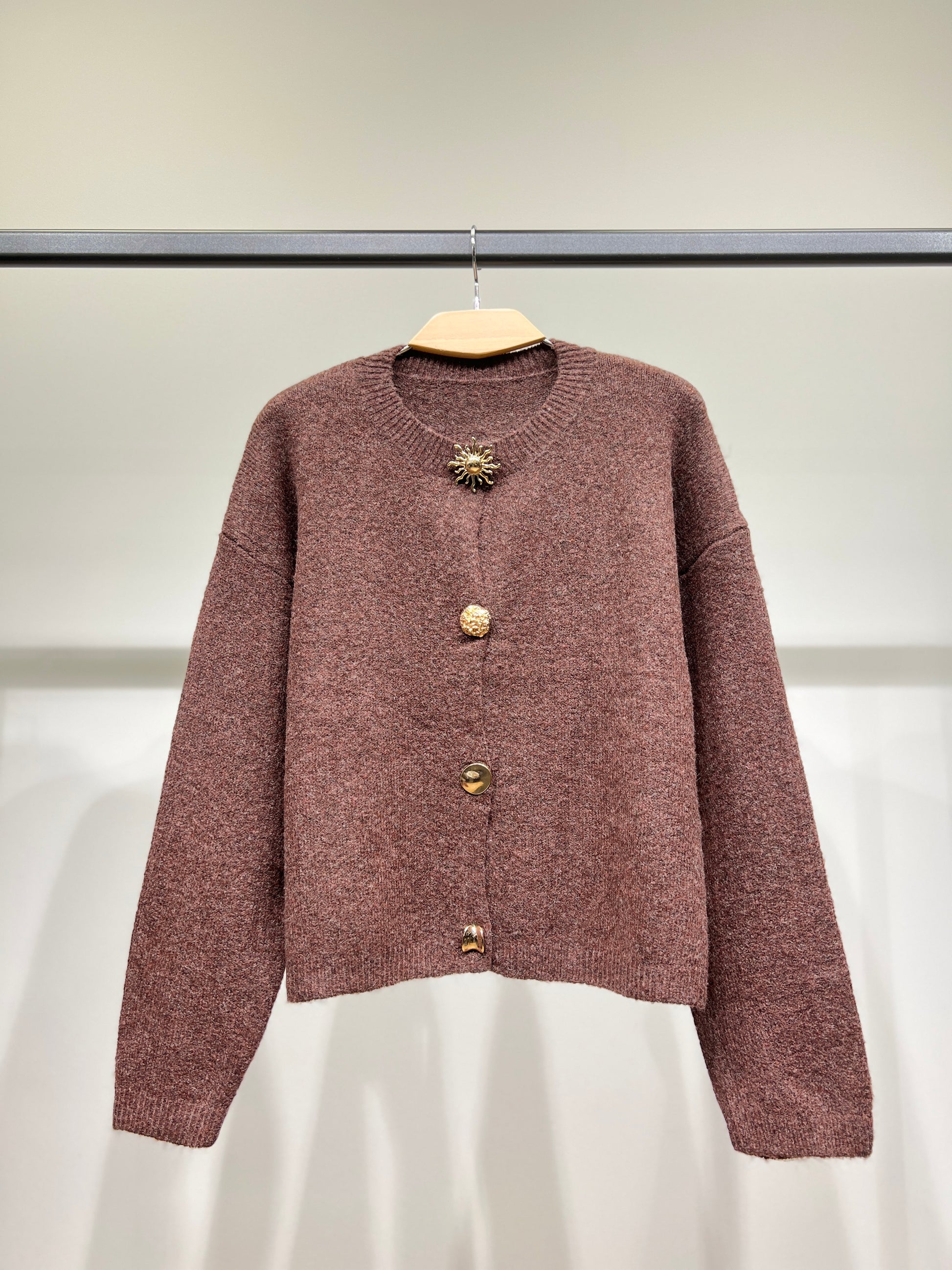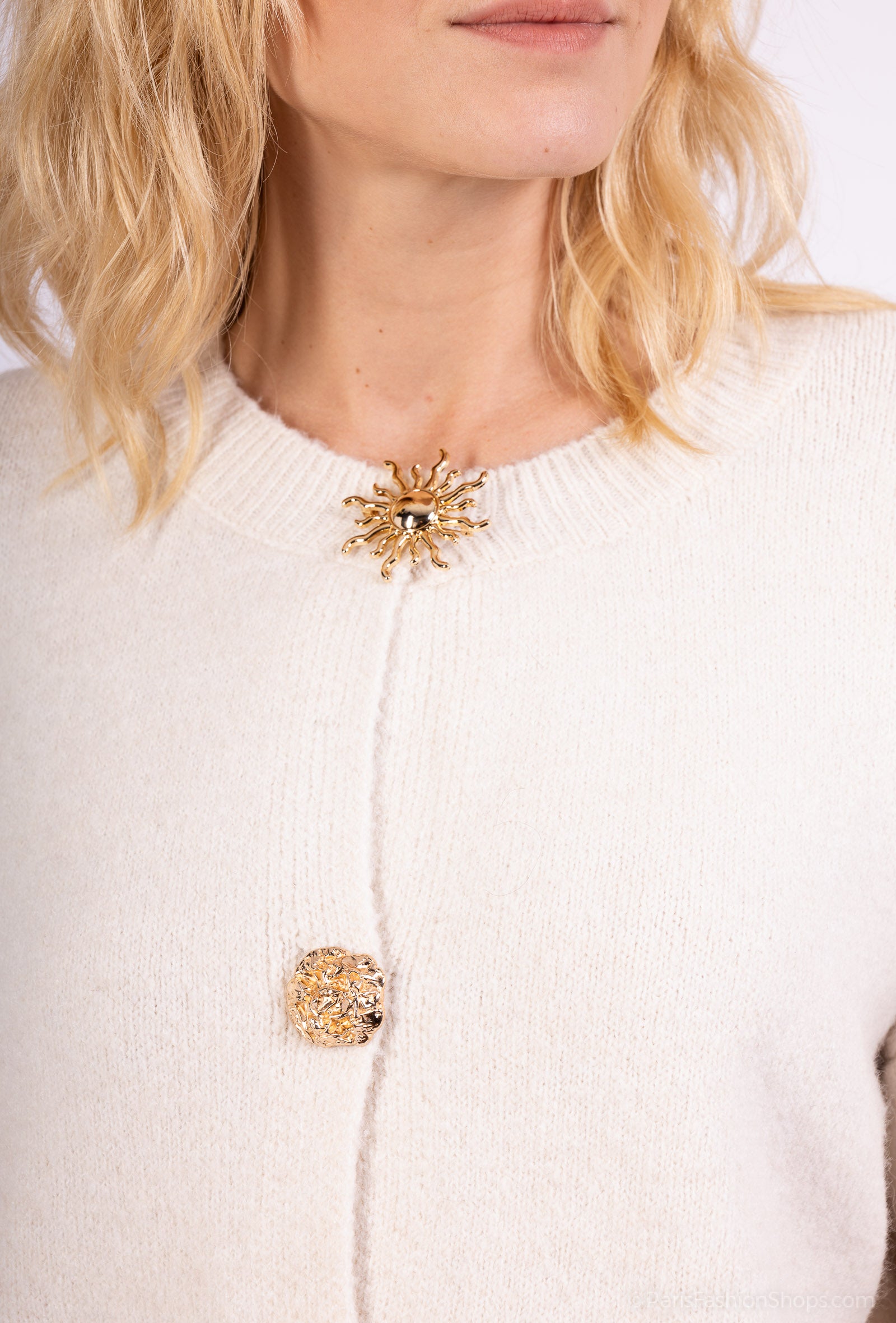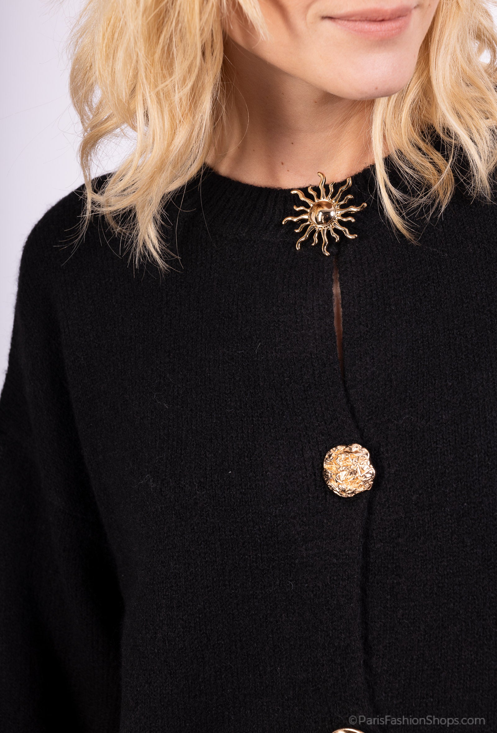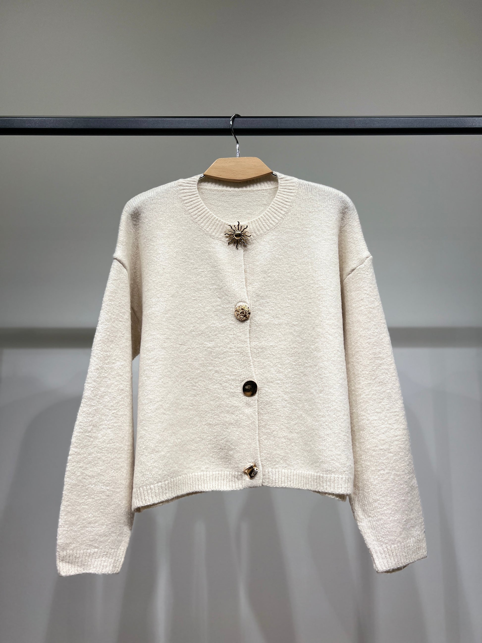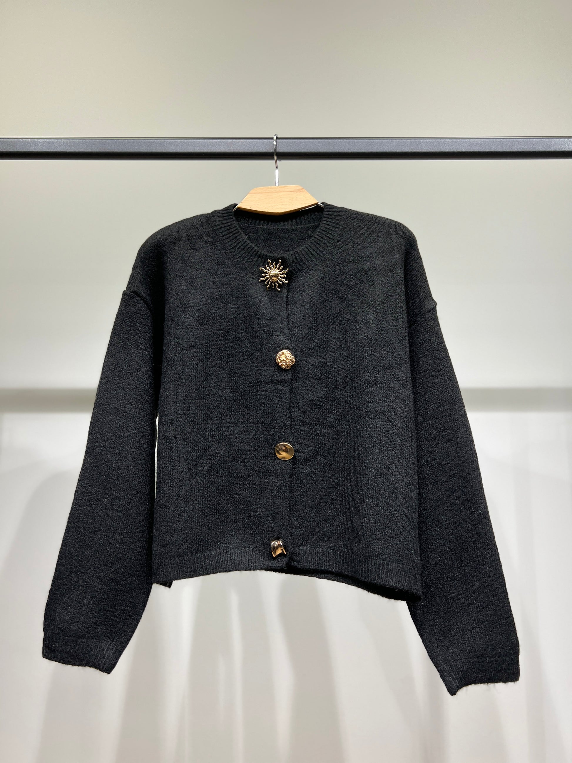 Cardigan Large Boutons Fantaisie Bords-Côtes 10% Laine