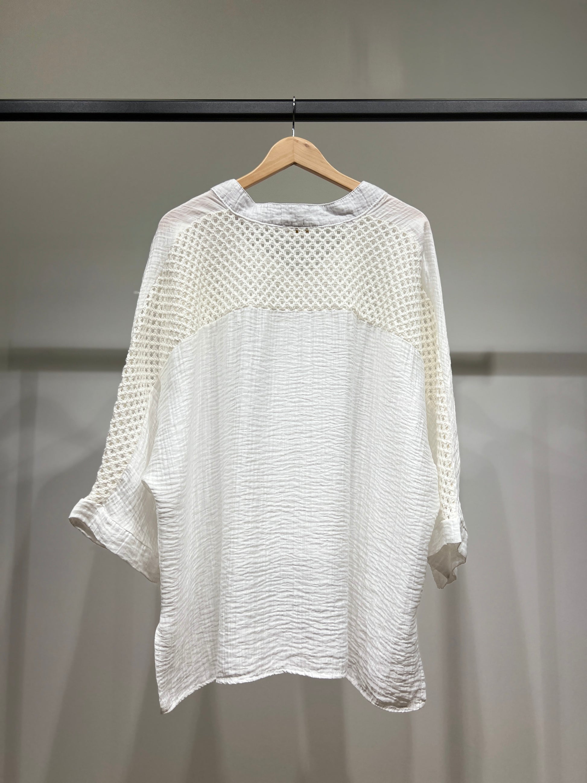 Chemisier Large Col V Maille Large Gaze De Coton 85% Tencel
