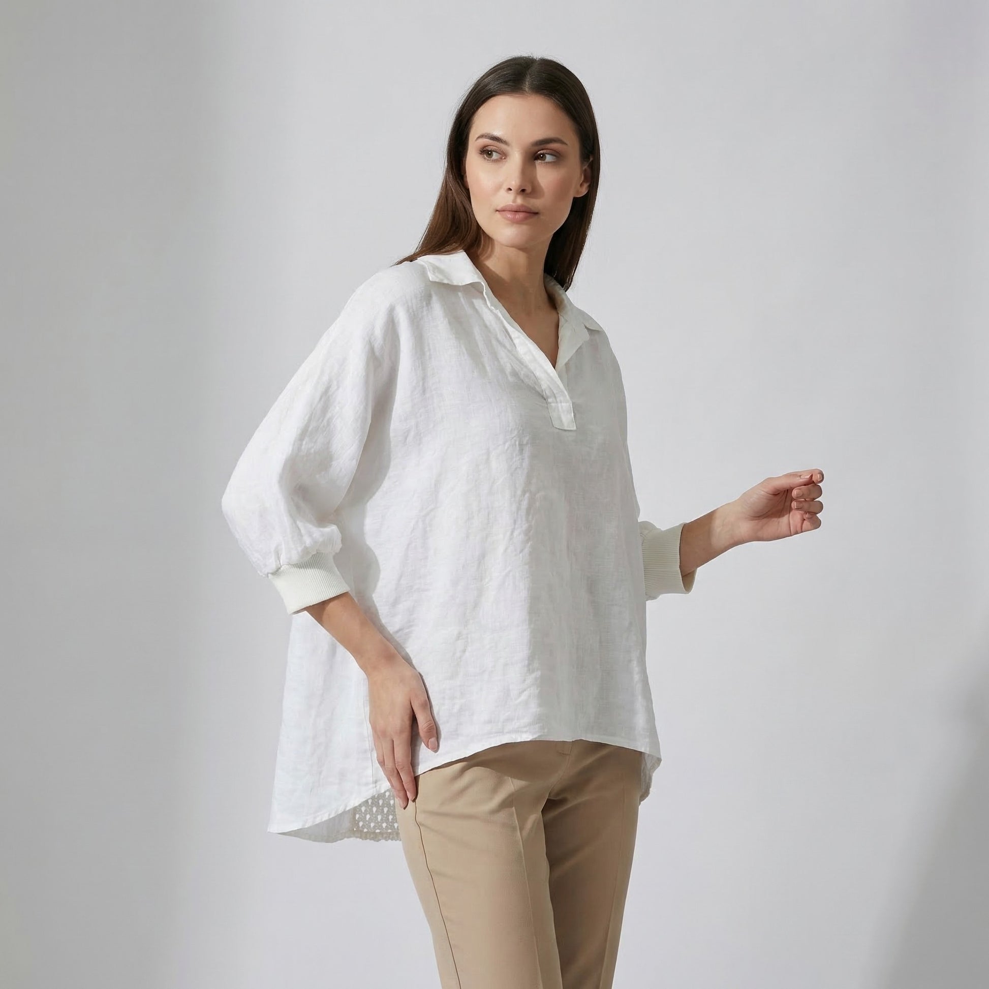 Chemisier Large Col V Manche Chauve Souris Bouffante 100% Lin Taille Unique Convient Aux Tailles 38-44