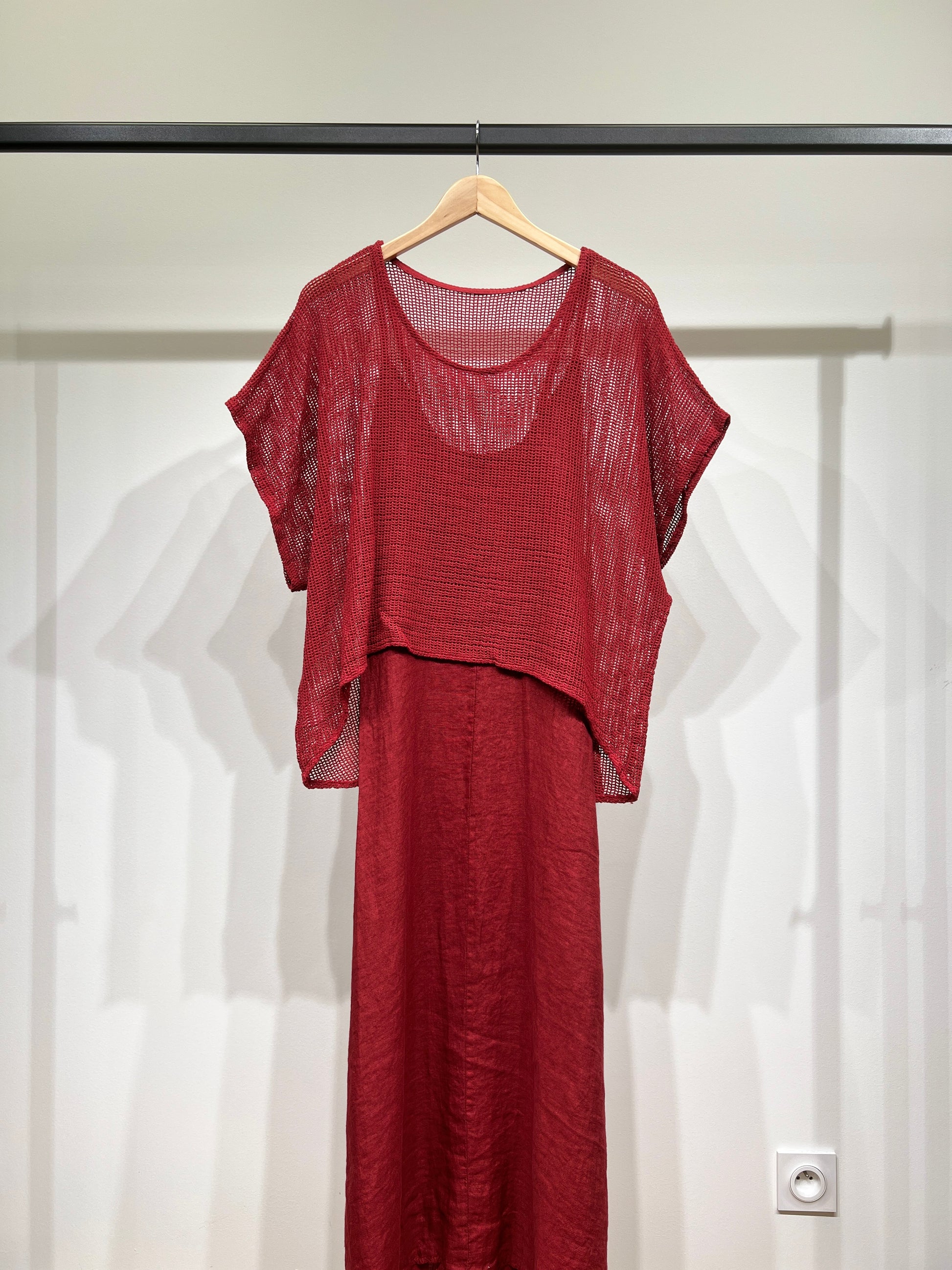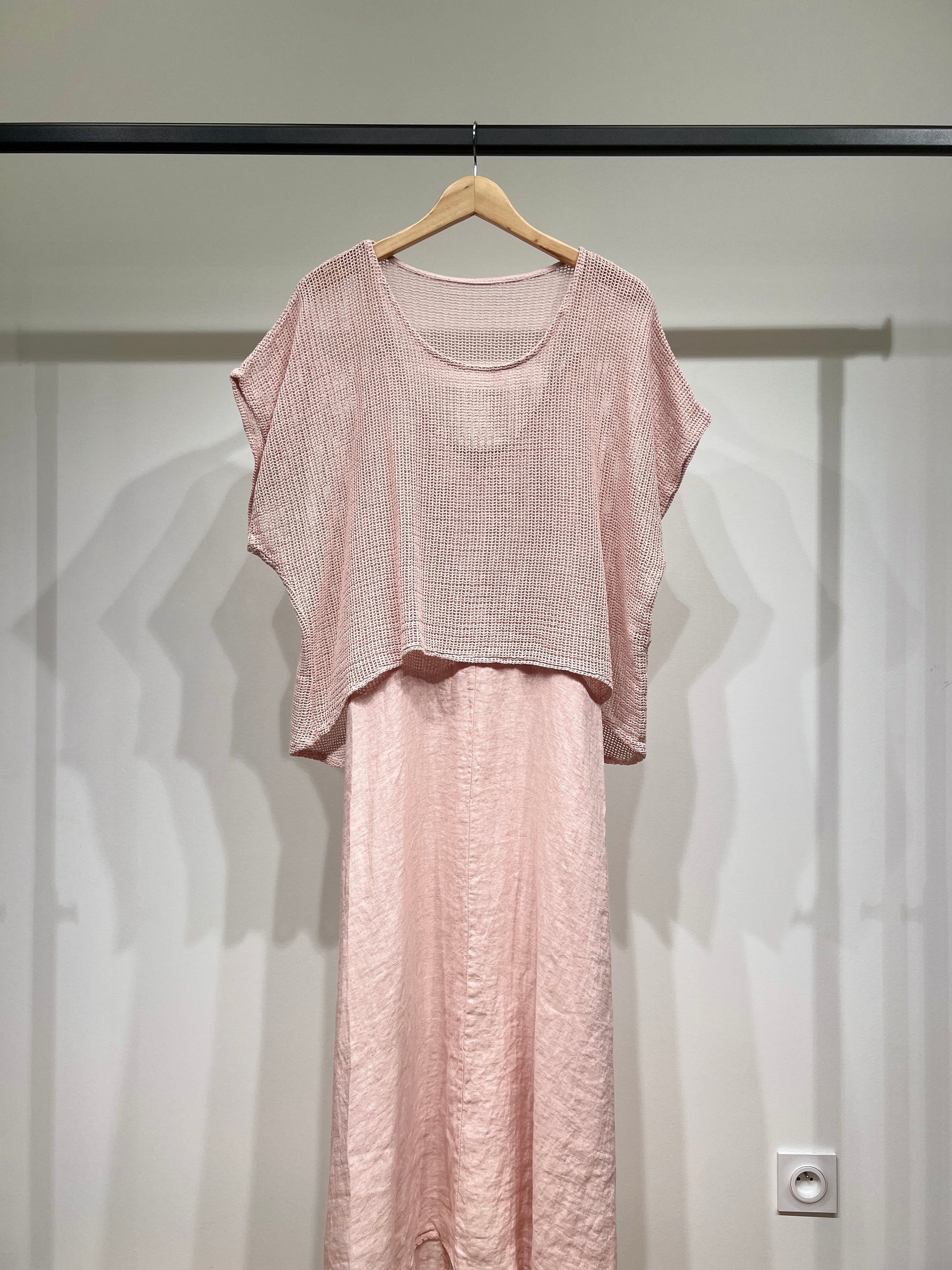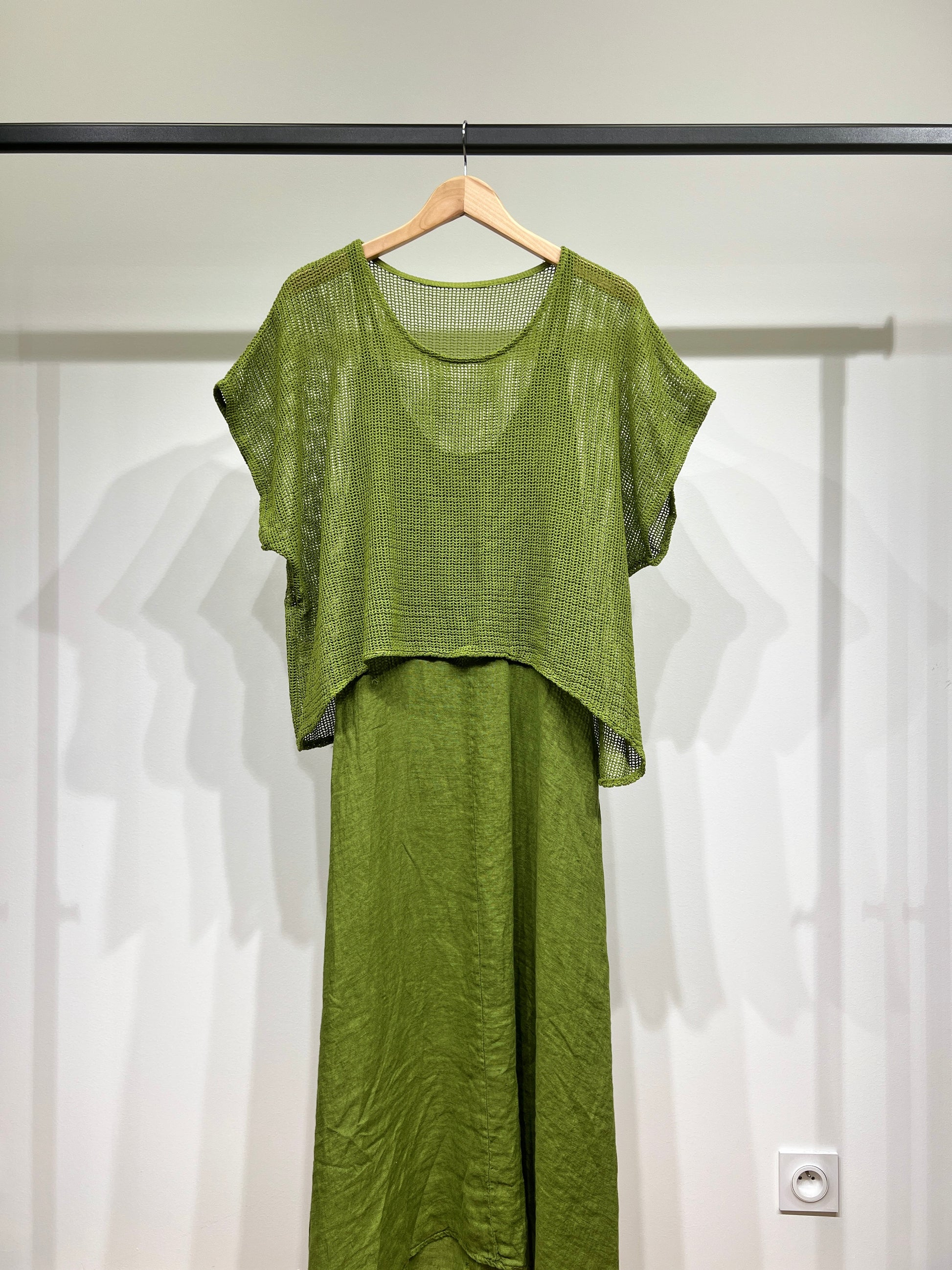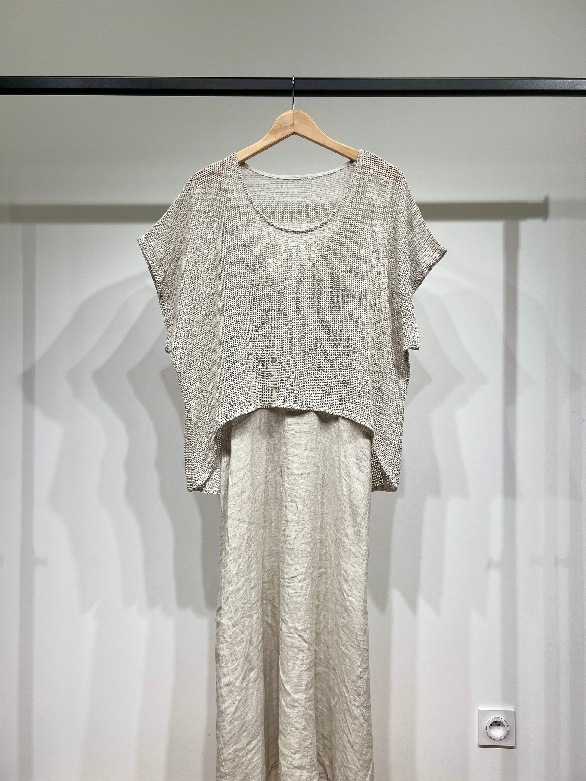 Ensemble Haut Maille Large & Robe à Poches Col V 100% Coton & 100% Lin