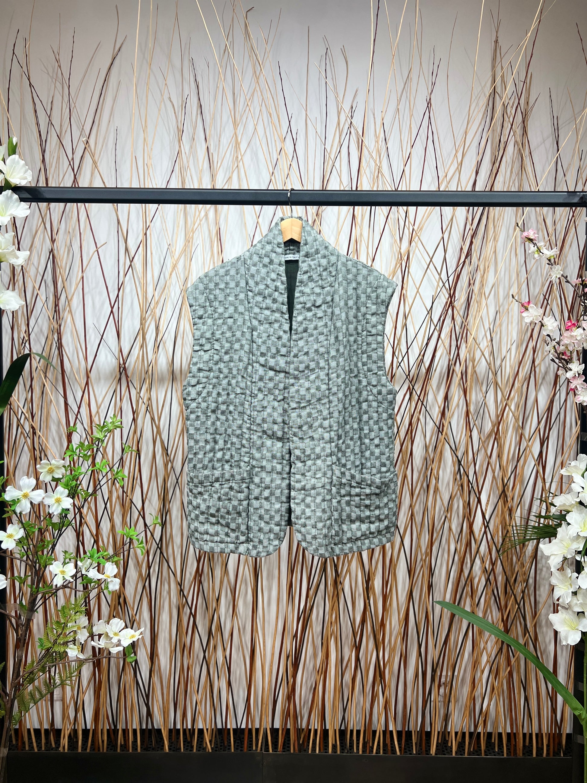 Gilet Motif Carreaux En Polyester Lin Poches Fonctionnelles