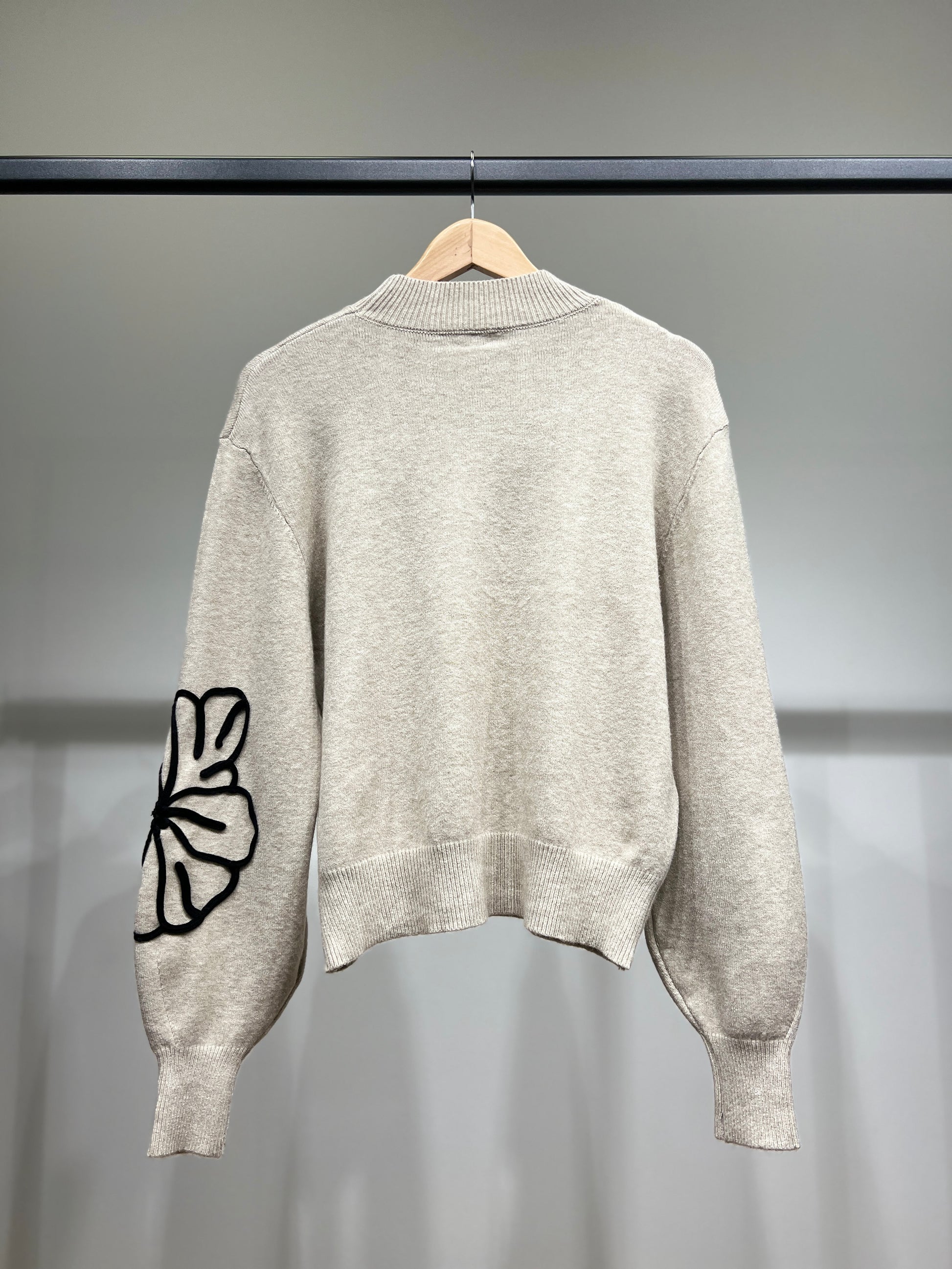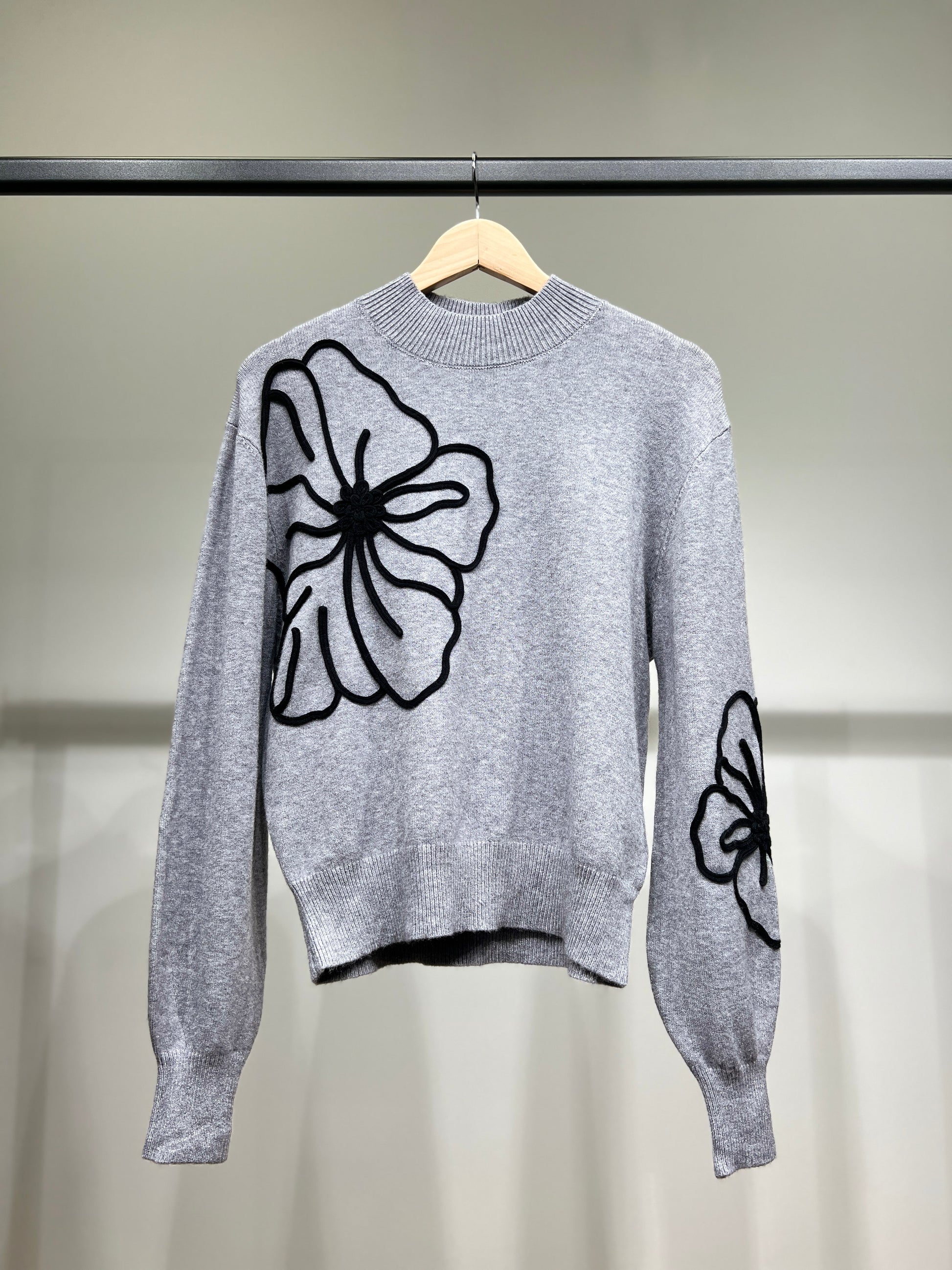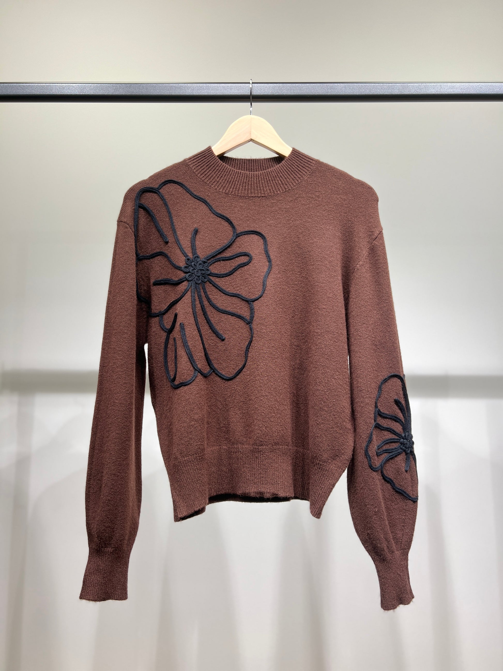 Pull à Manches Ballons Bords-Côtes Motif Floral Brodé