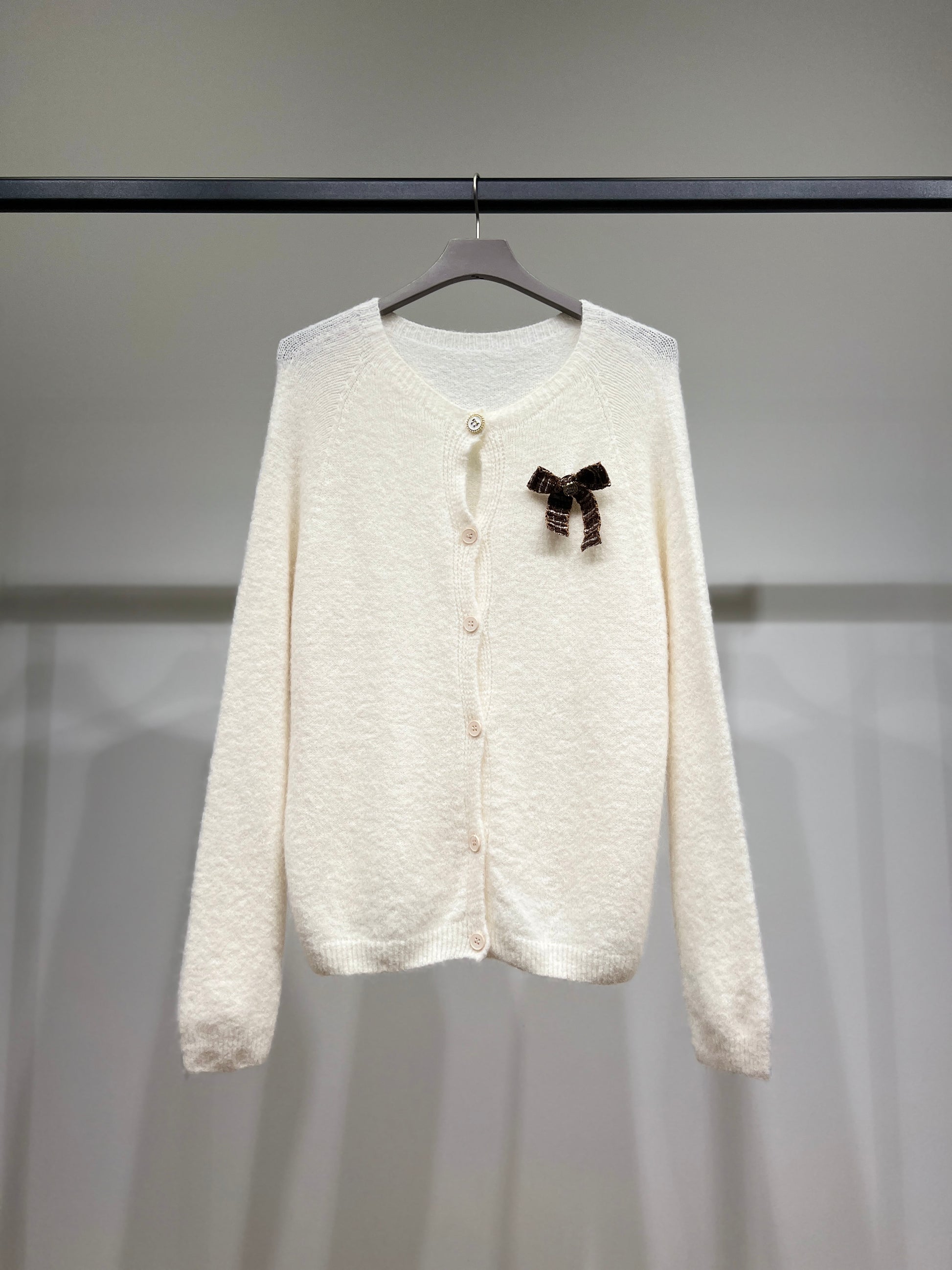 Pull Cardigan Maille Fine Pin Nœud 27% Alpaca