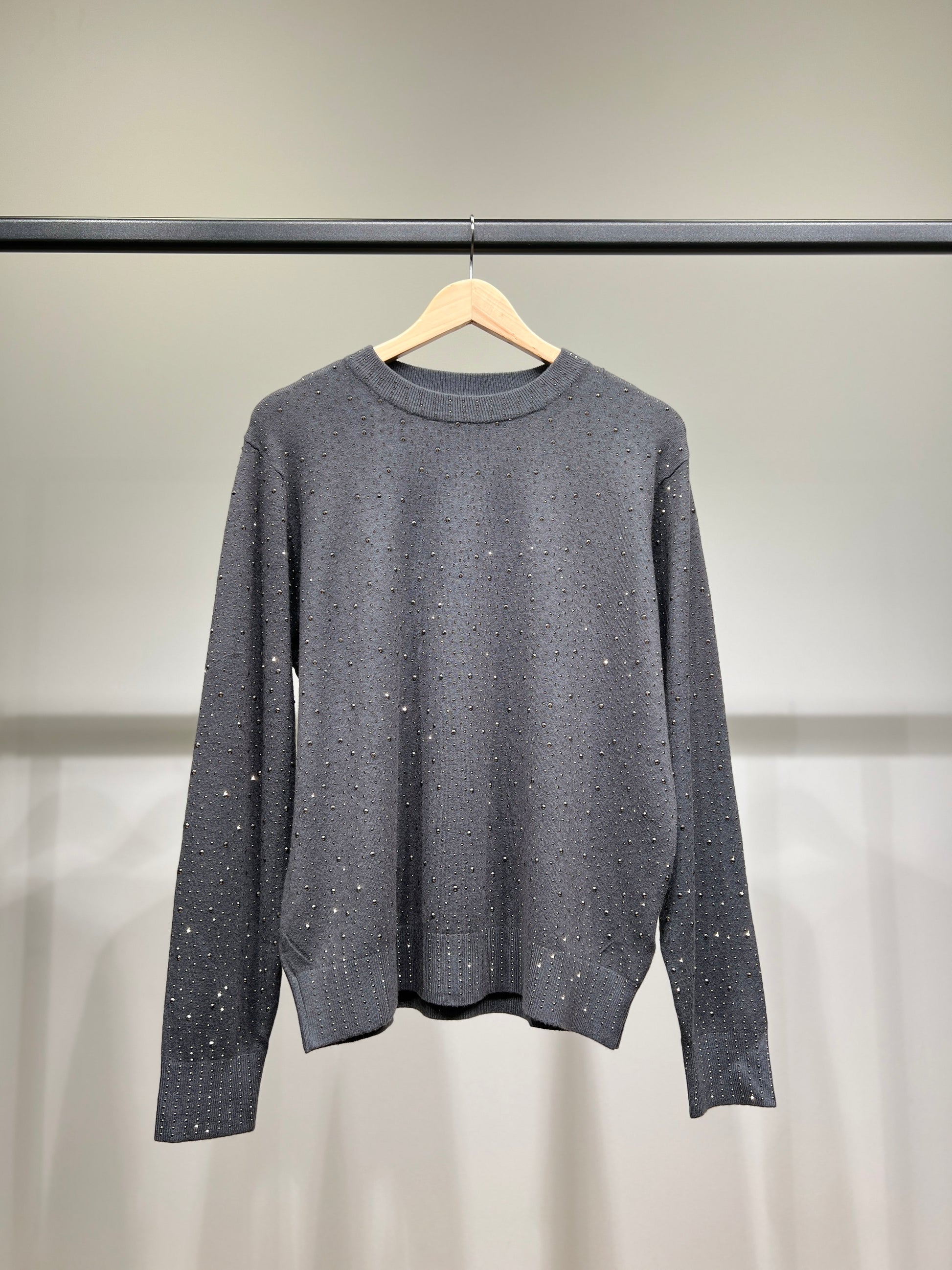 Pull Col Rond Bords-Côtes à Motif Pois Strass Argenté