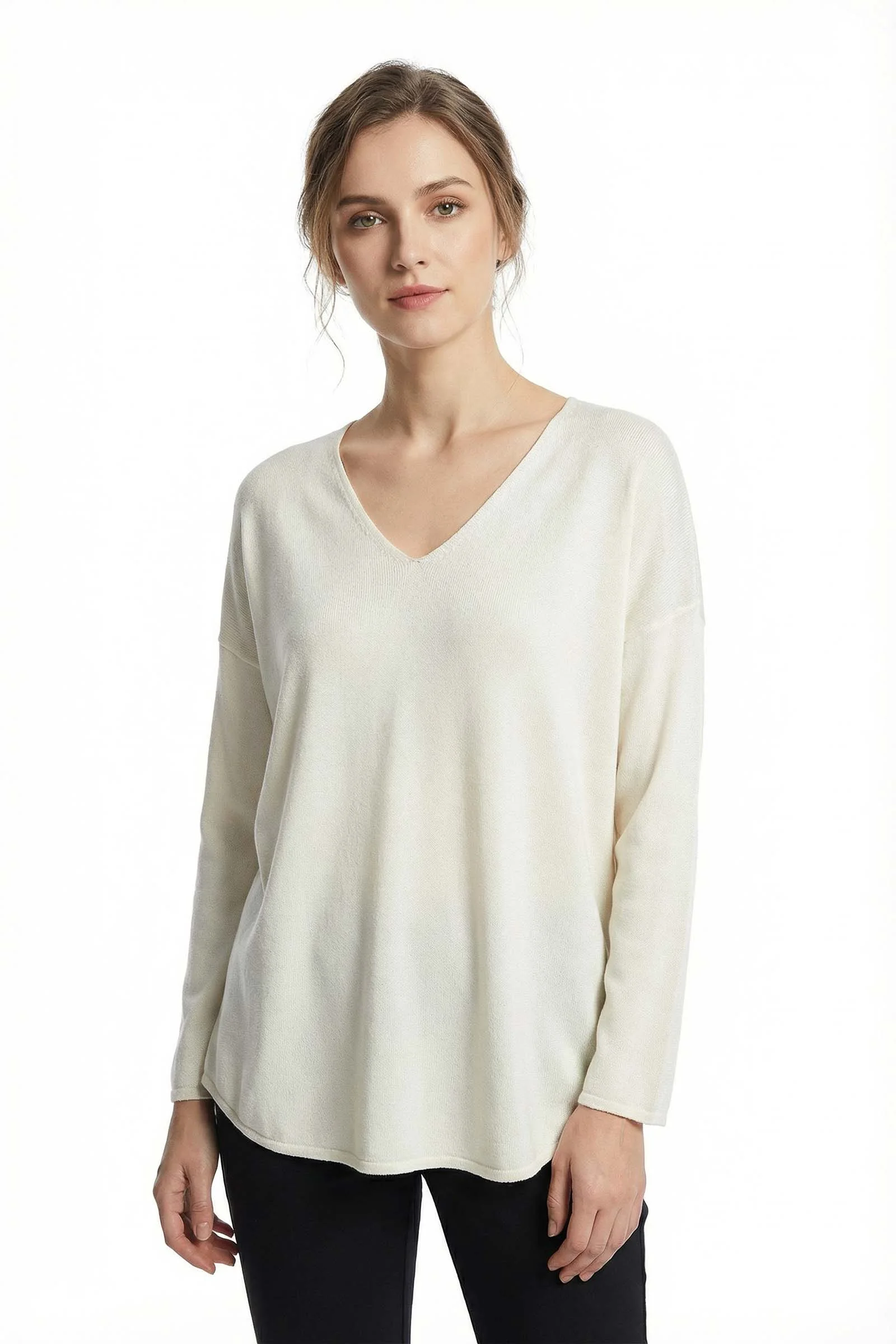 Pull En Maille Manche Longue Col V Viscose Taille Unique Convient Aux Tailles 36-42