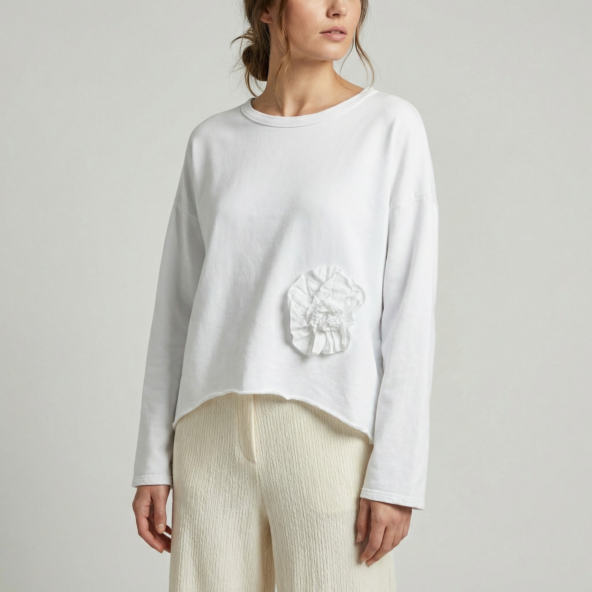Pull Large Col Rond Décoration Florale 70% Coton Taille Unique Convient Aux Tailles 38-46