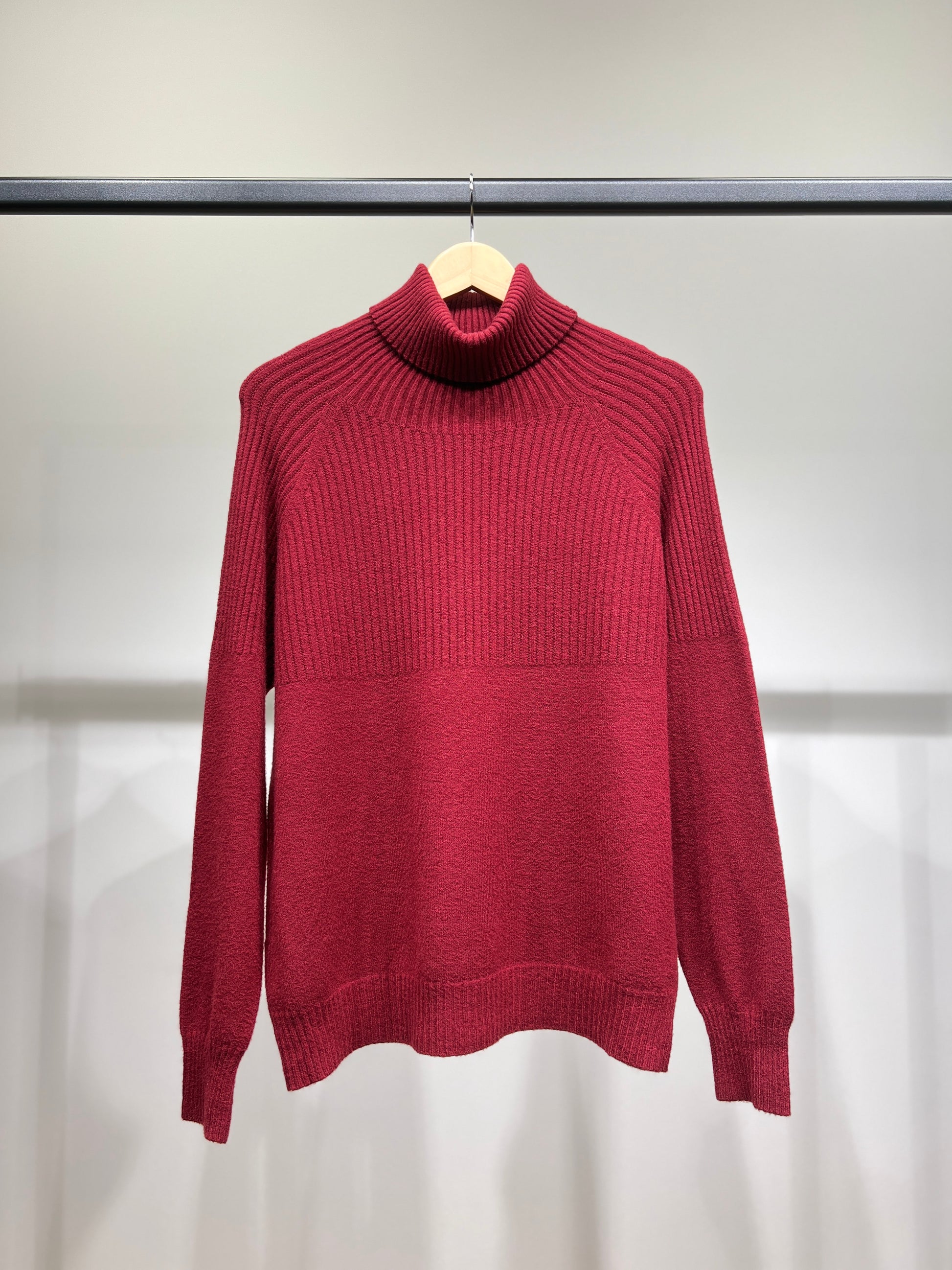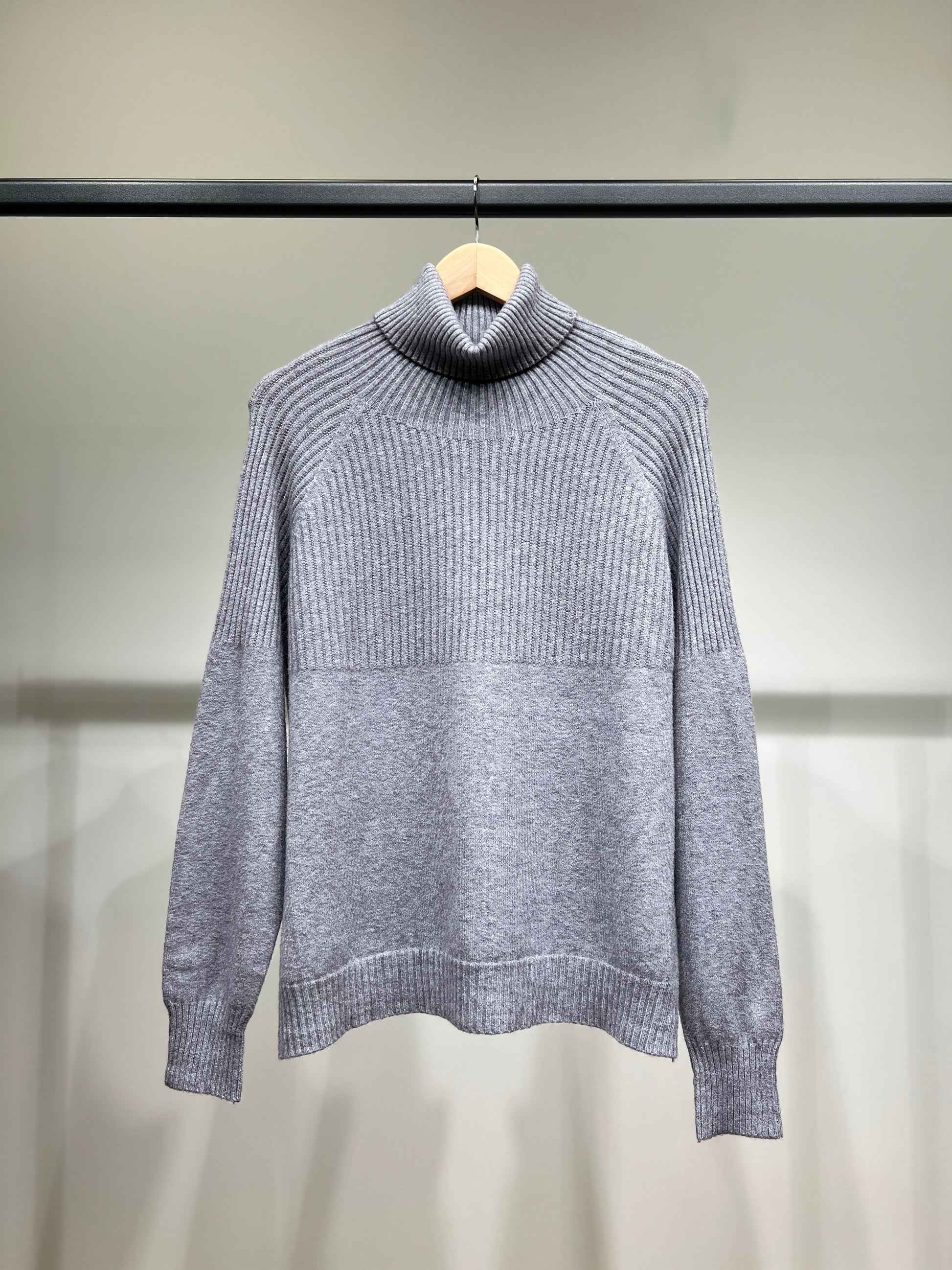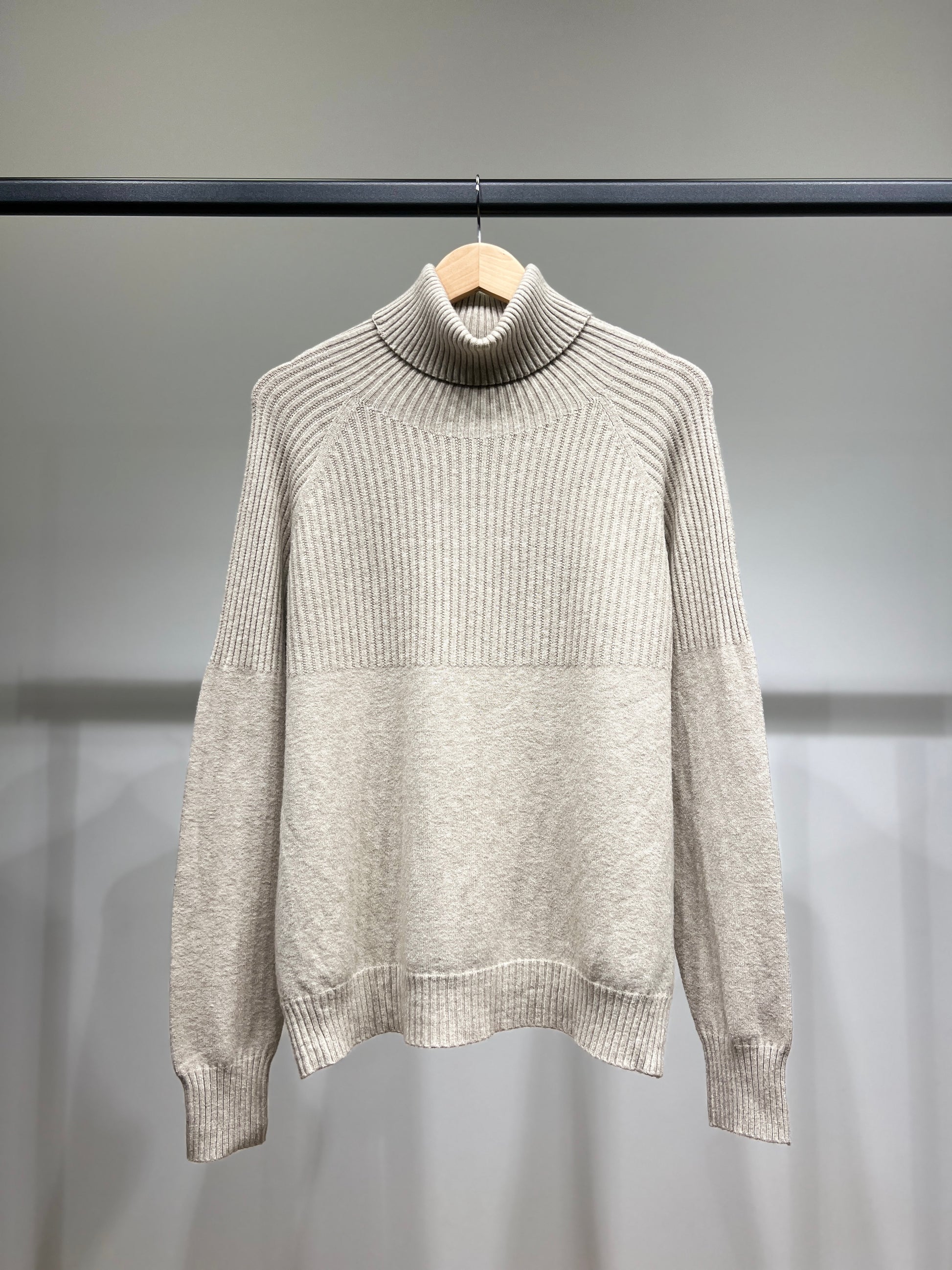 Pull Large Col Roulé Semi-Côtelé Bords-Côtes