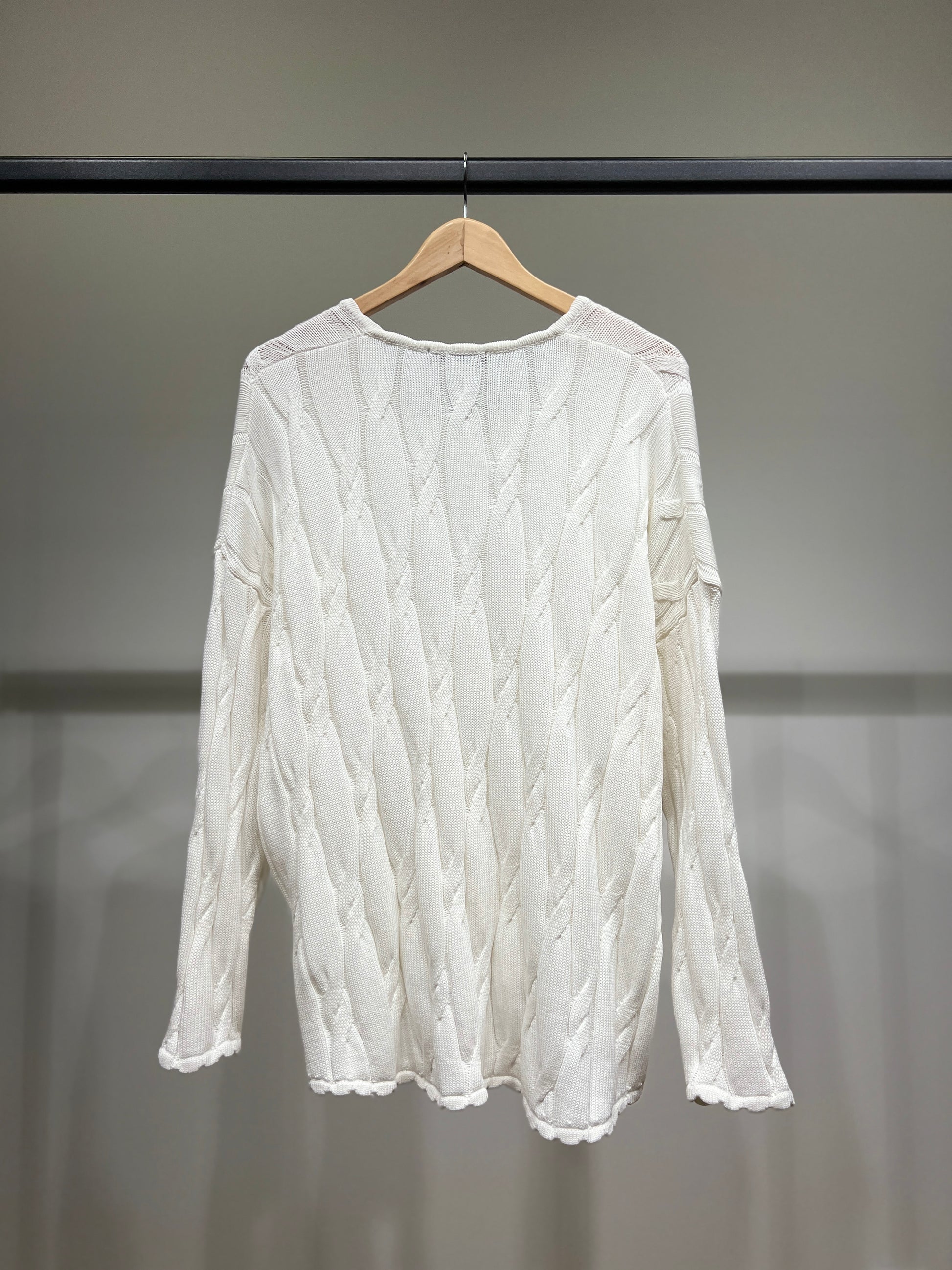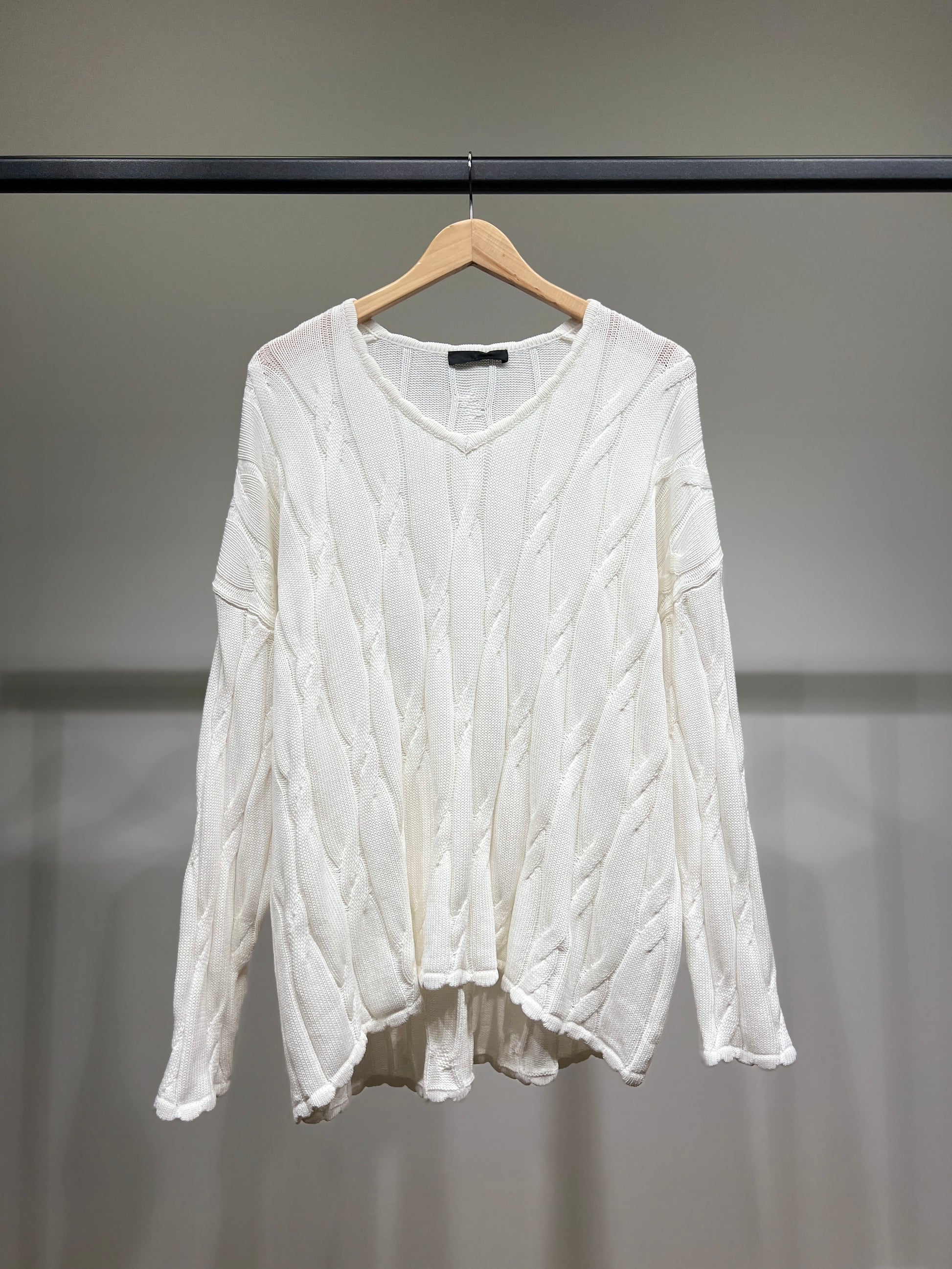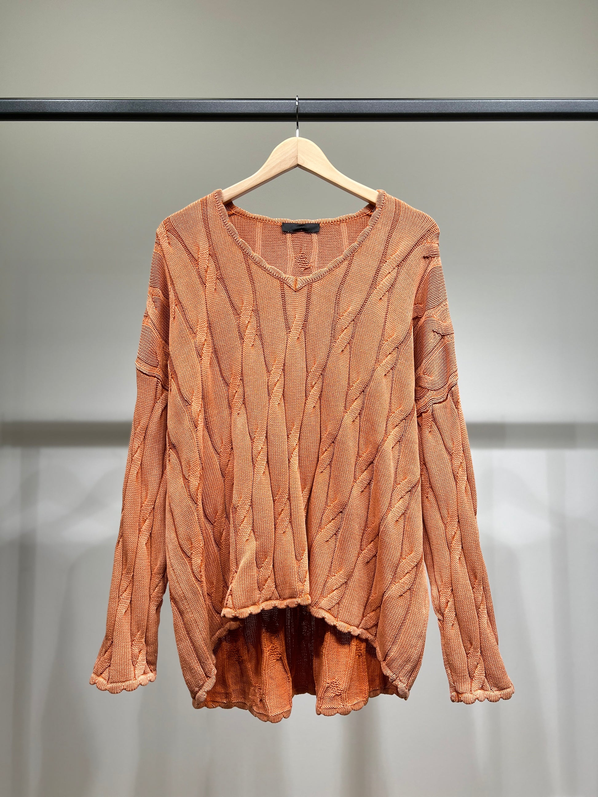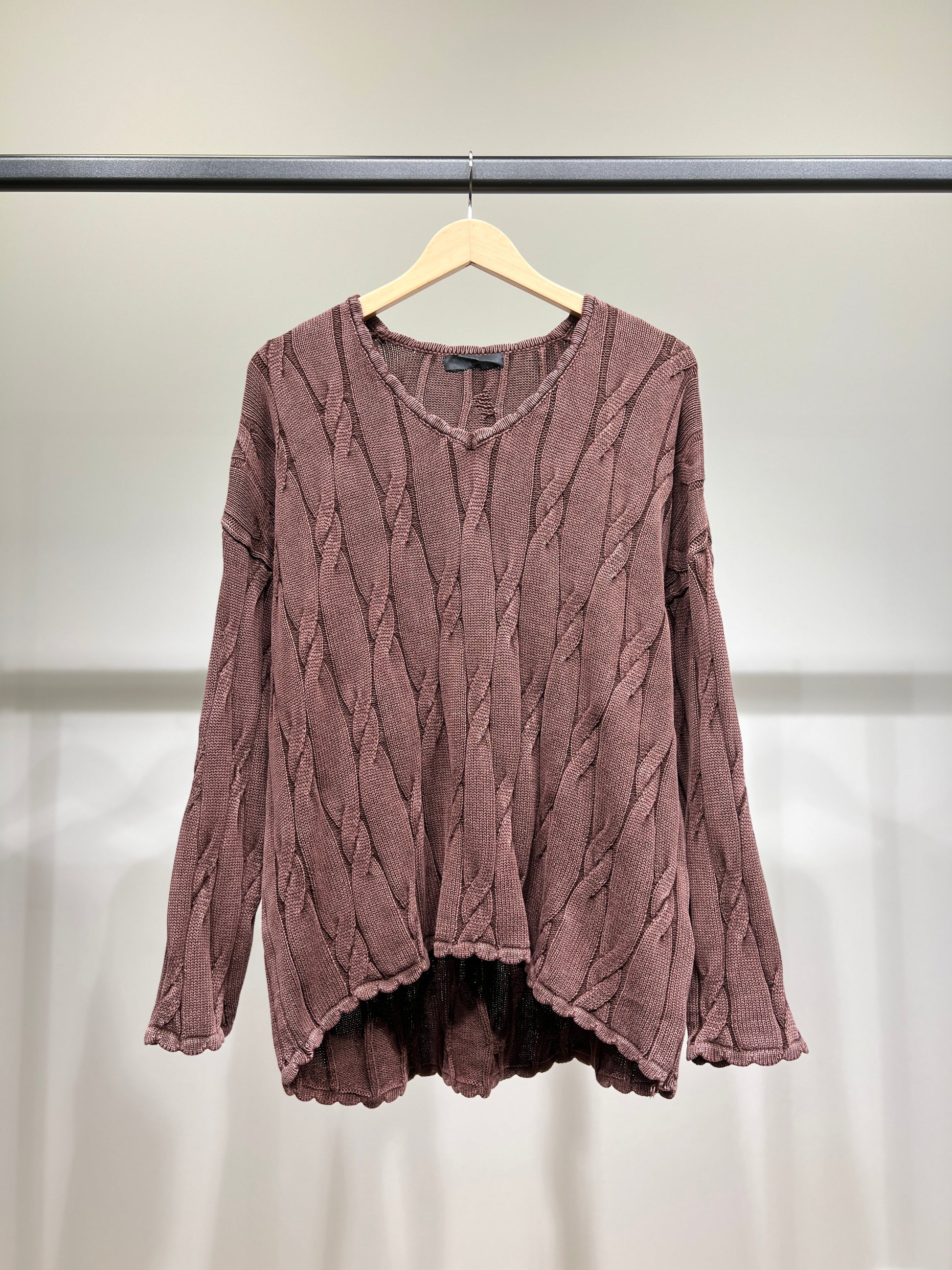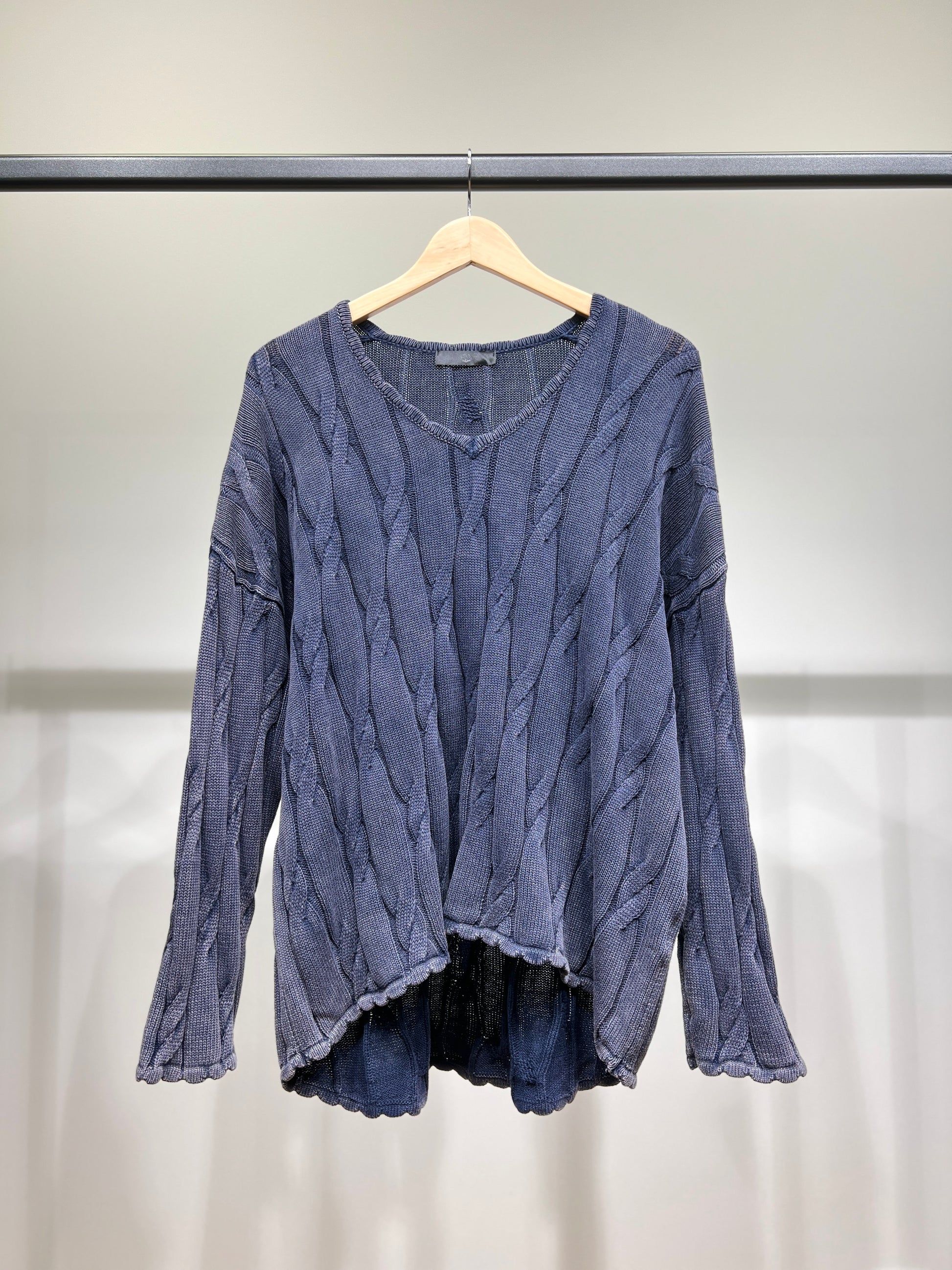 Pull Large Col V Motif Torsadé Délavé 100% Coton