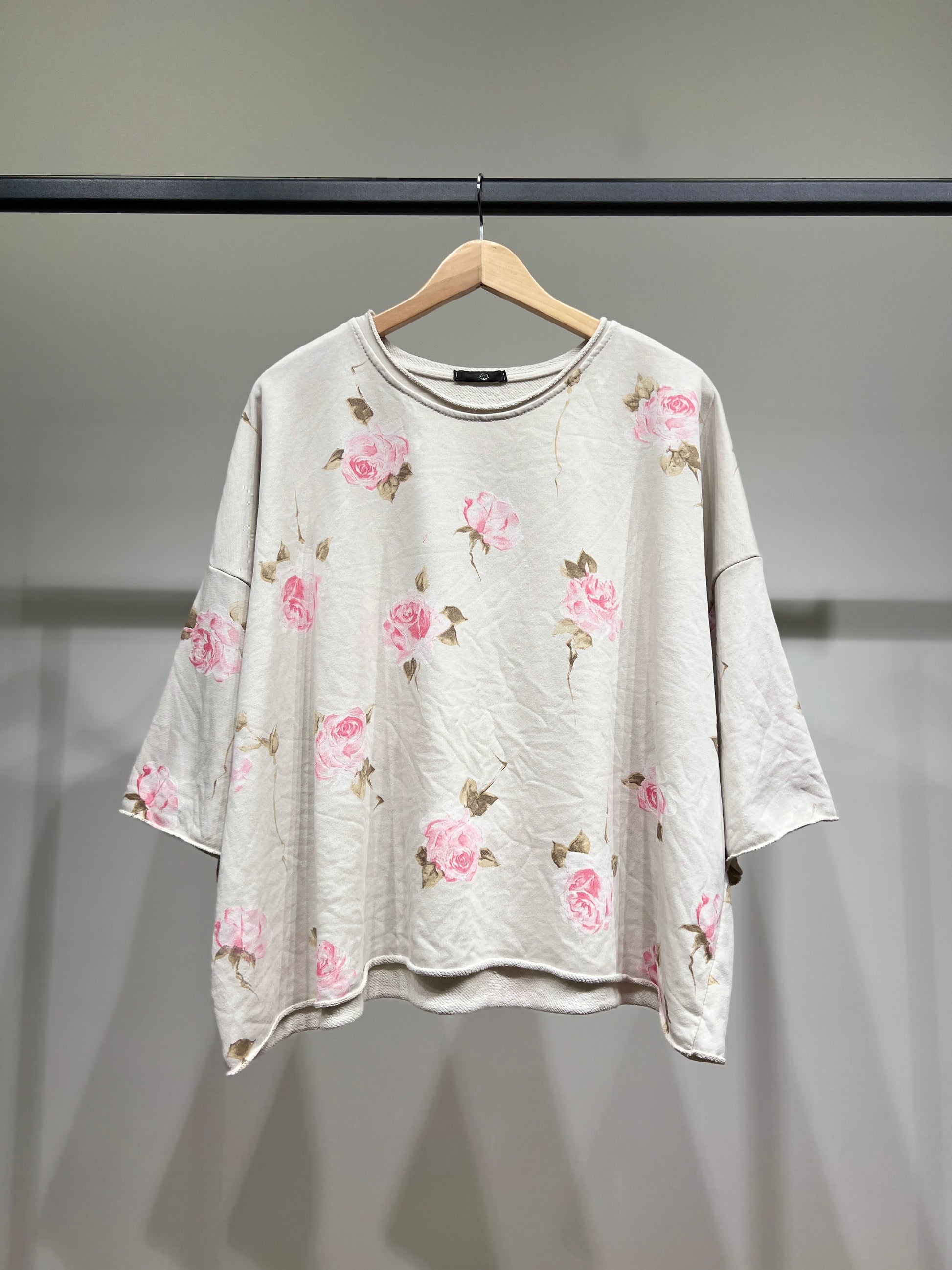 Pull Large Confort Manche 3/4 Motif Fleuri 70% Coton Taille Unique Convient Aux Tailles 38-46