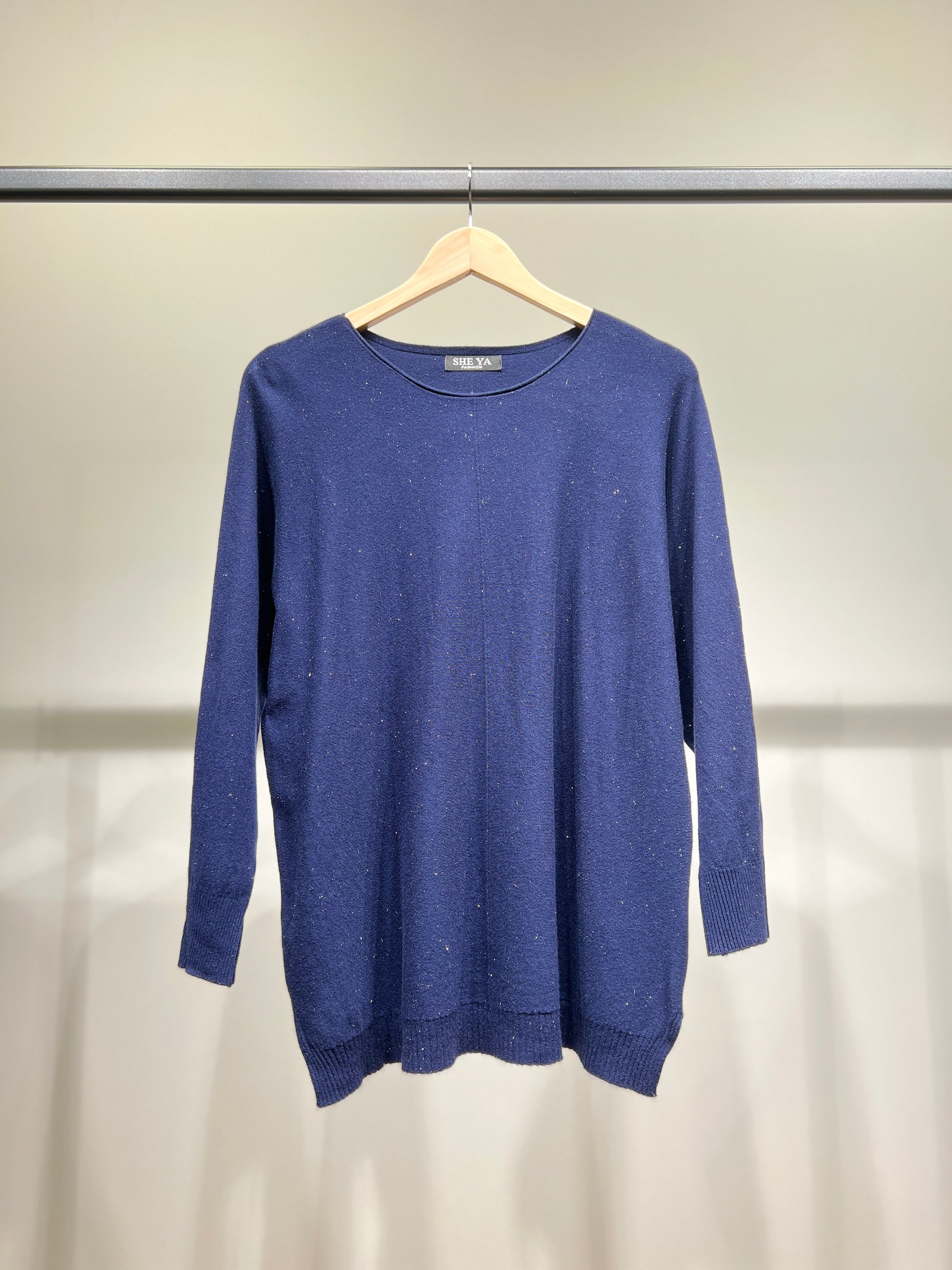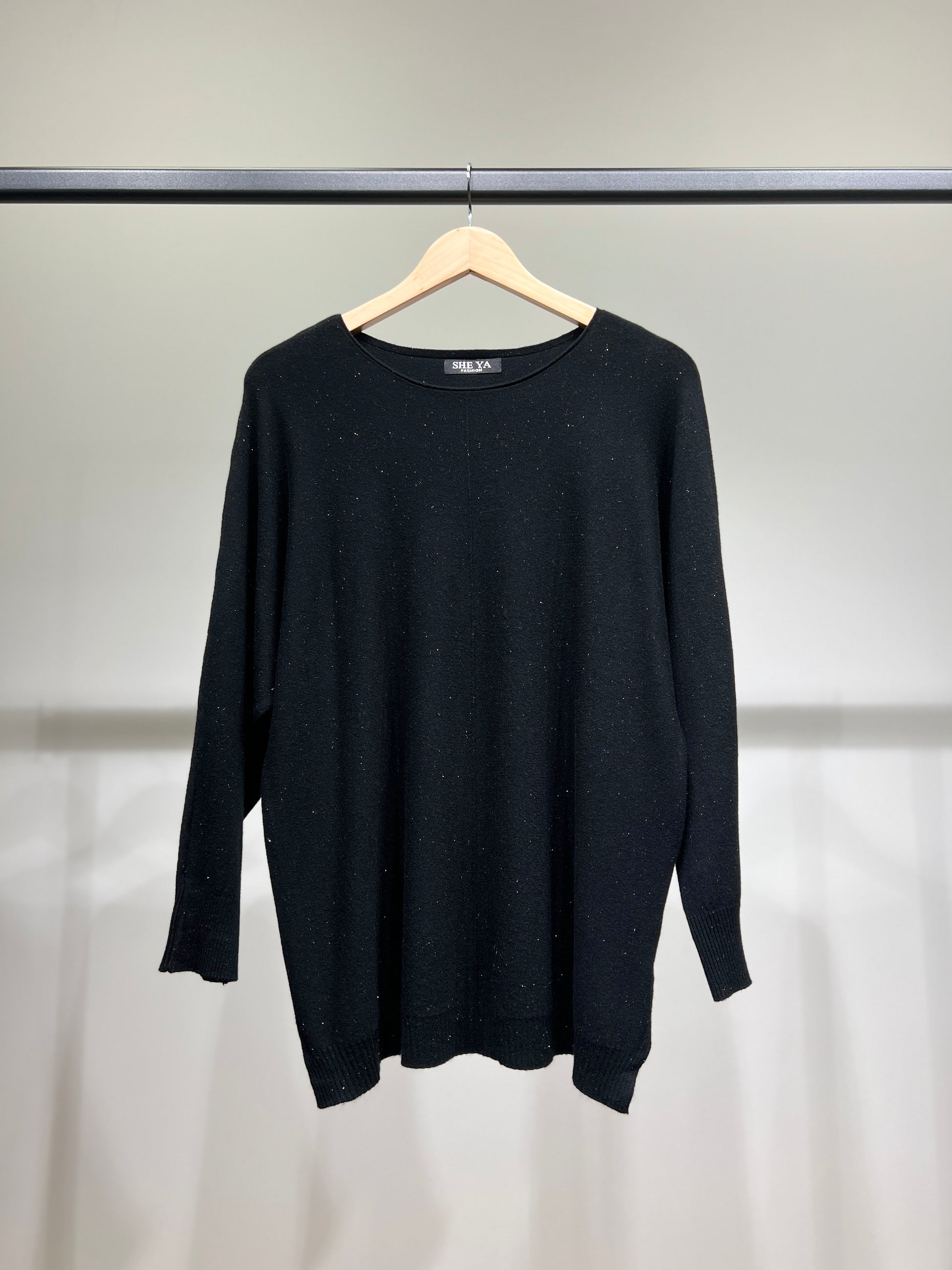Pull Maille Fine Col Rond Bords-Côtes à Lurex Argenté Taille Unique Convient Aux Tailles 36-42