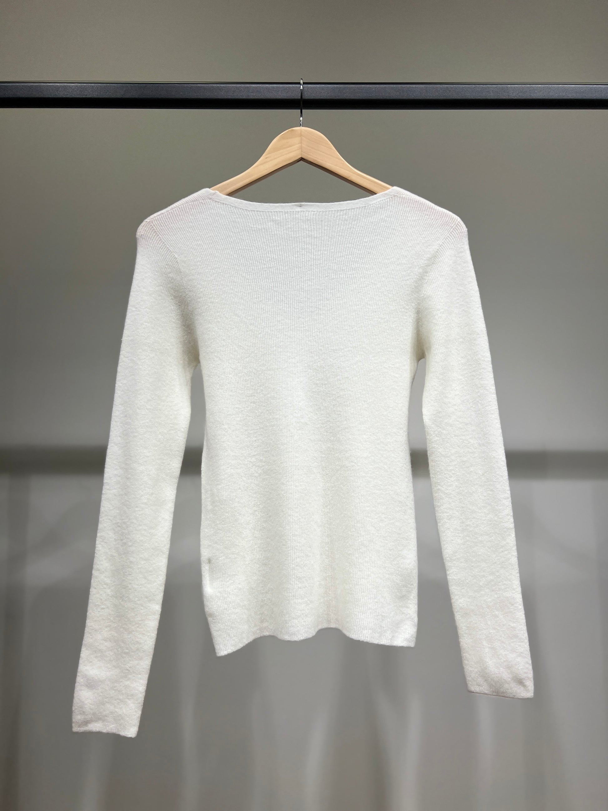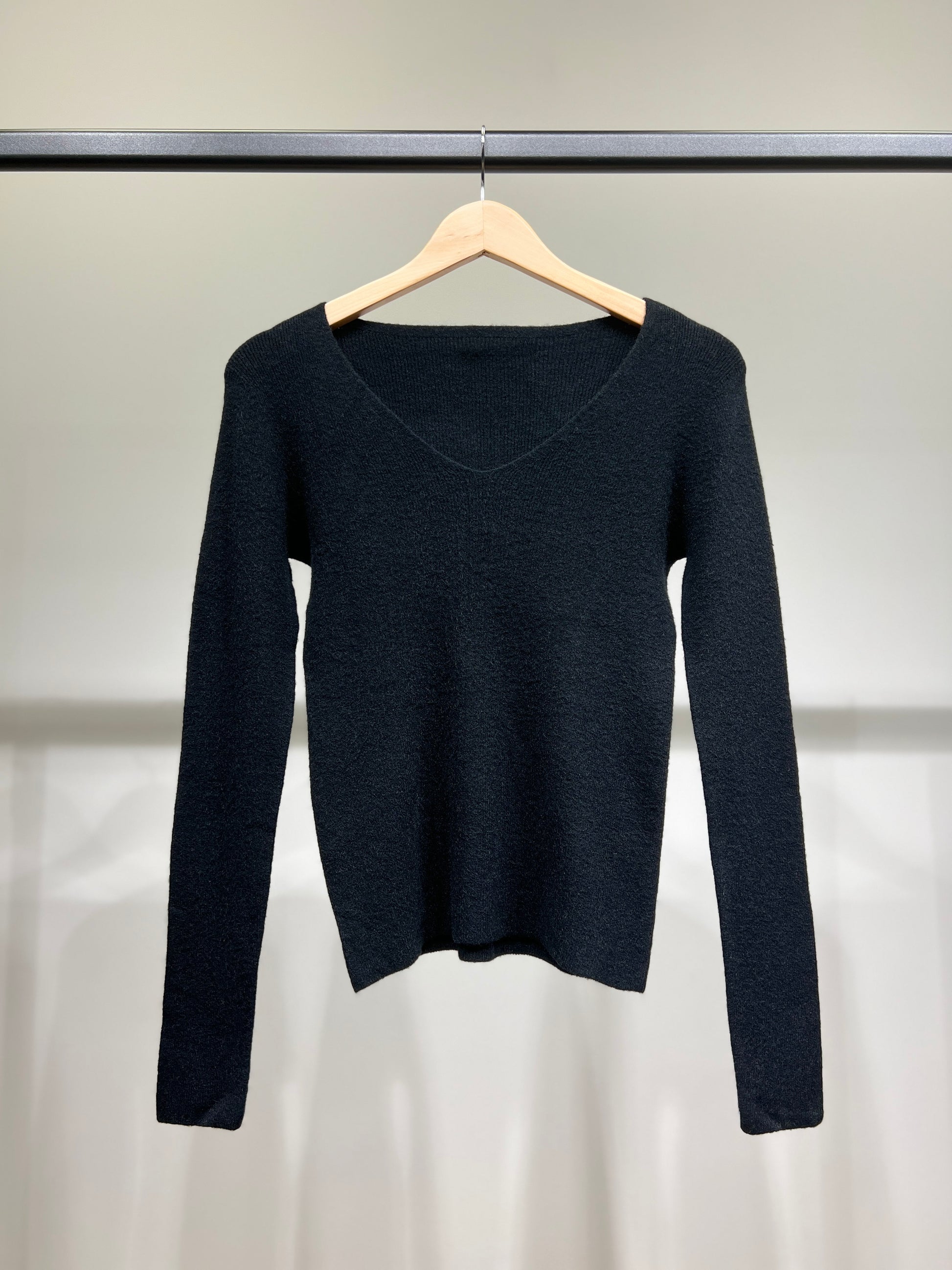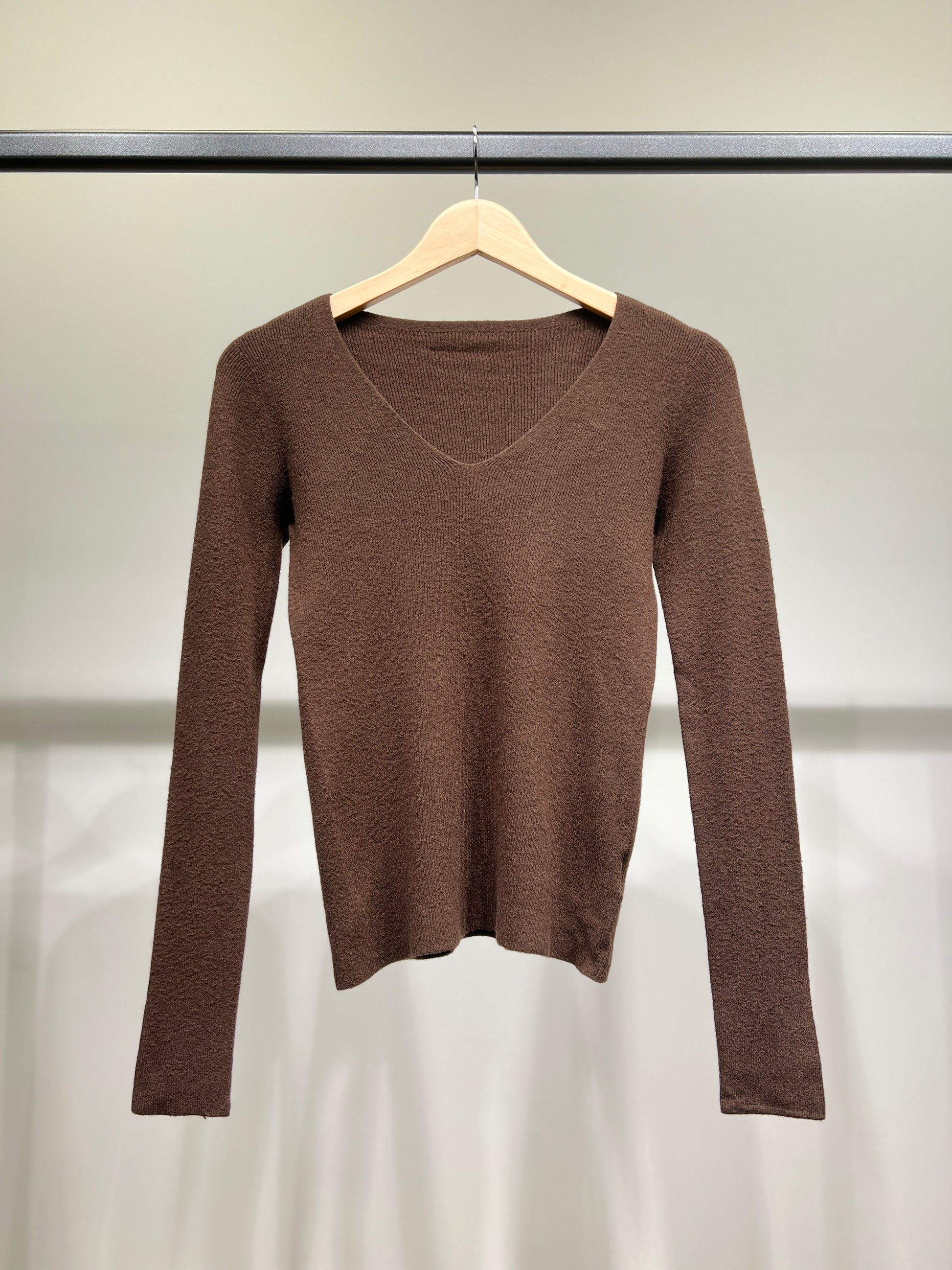 Pull Maille Fine Col V Côtelé Avec Laine Nylon