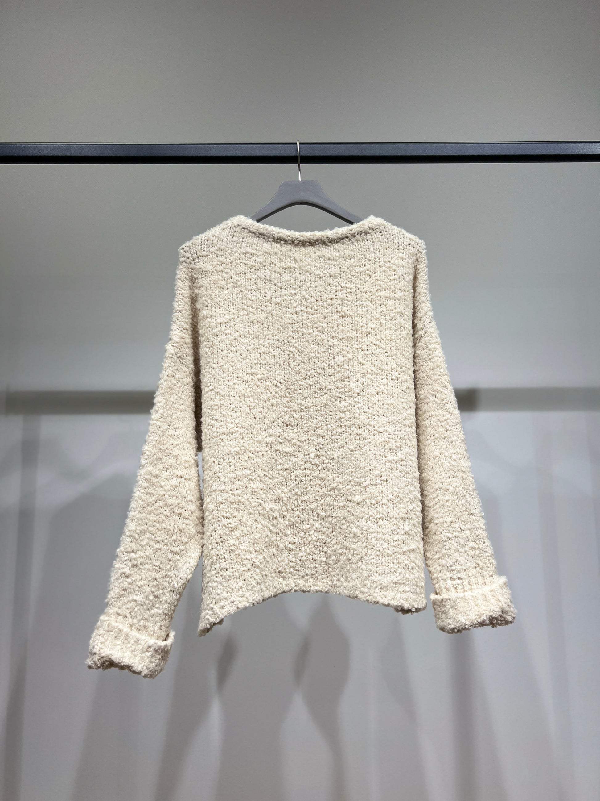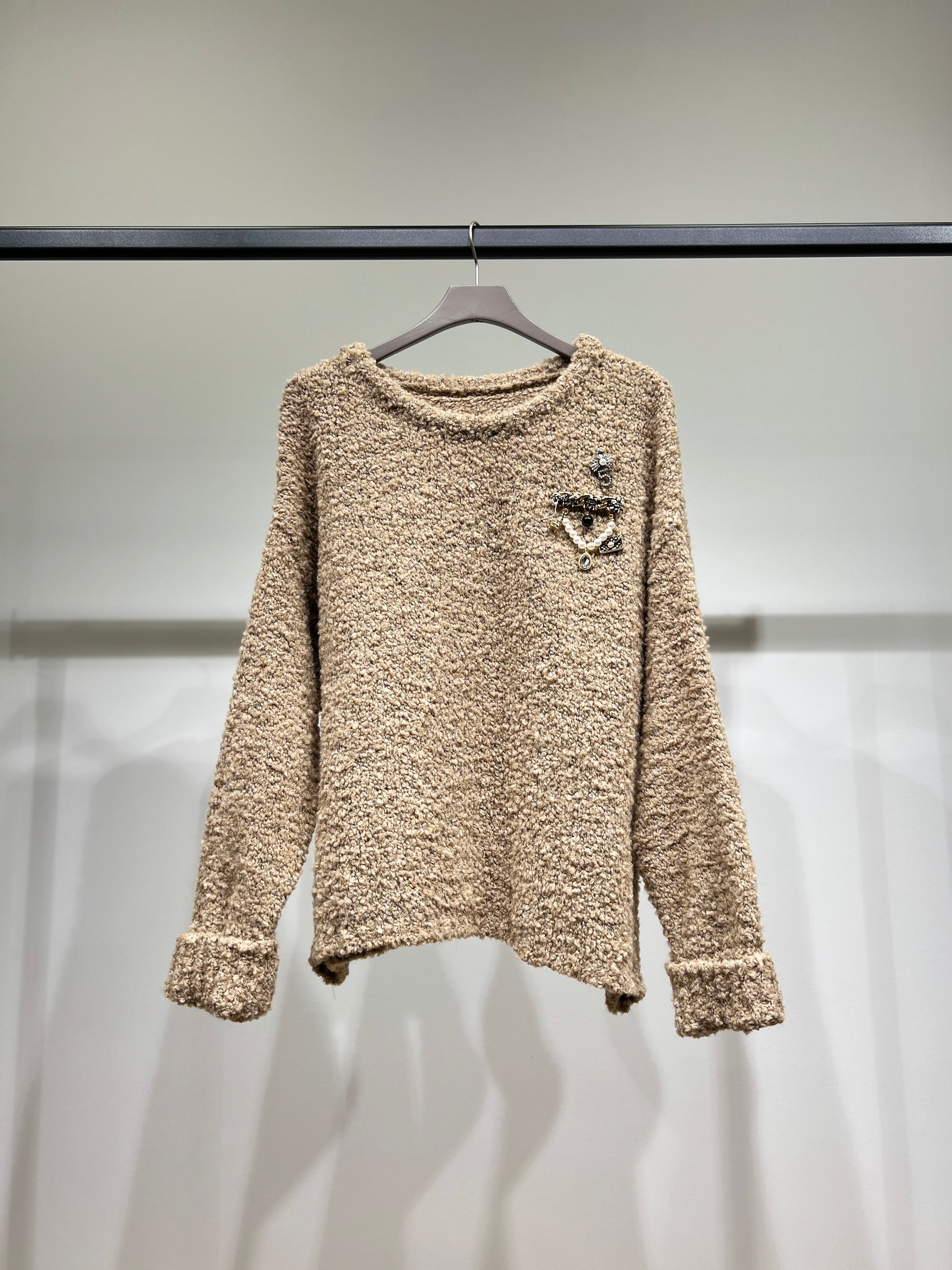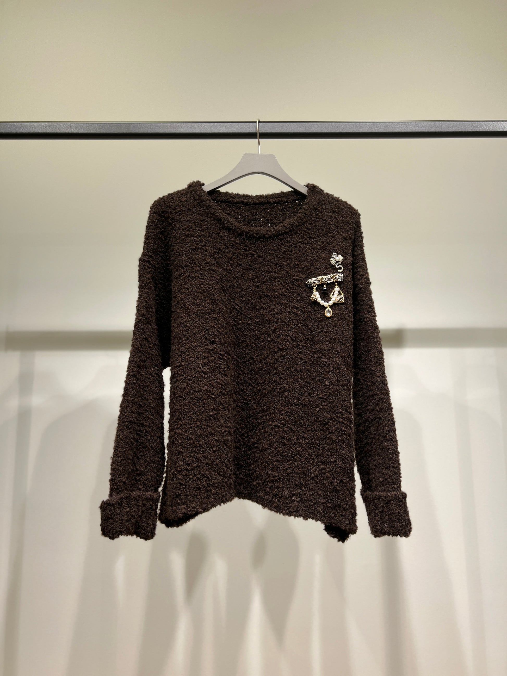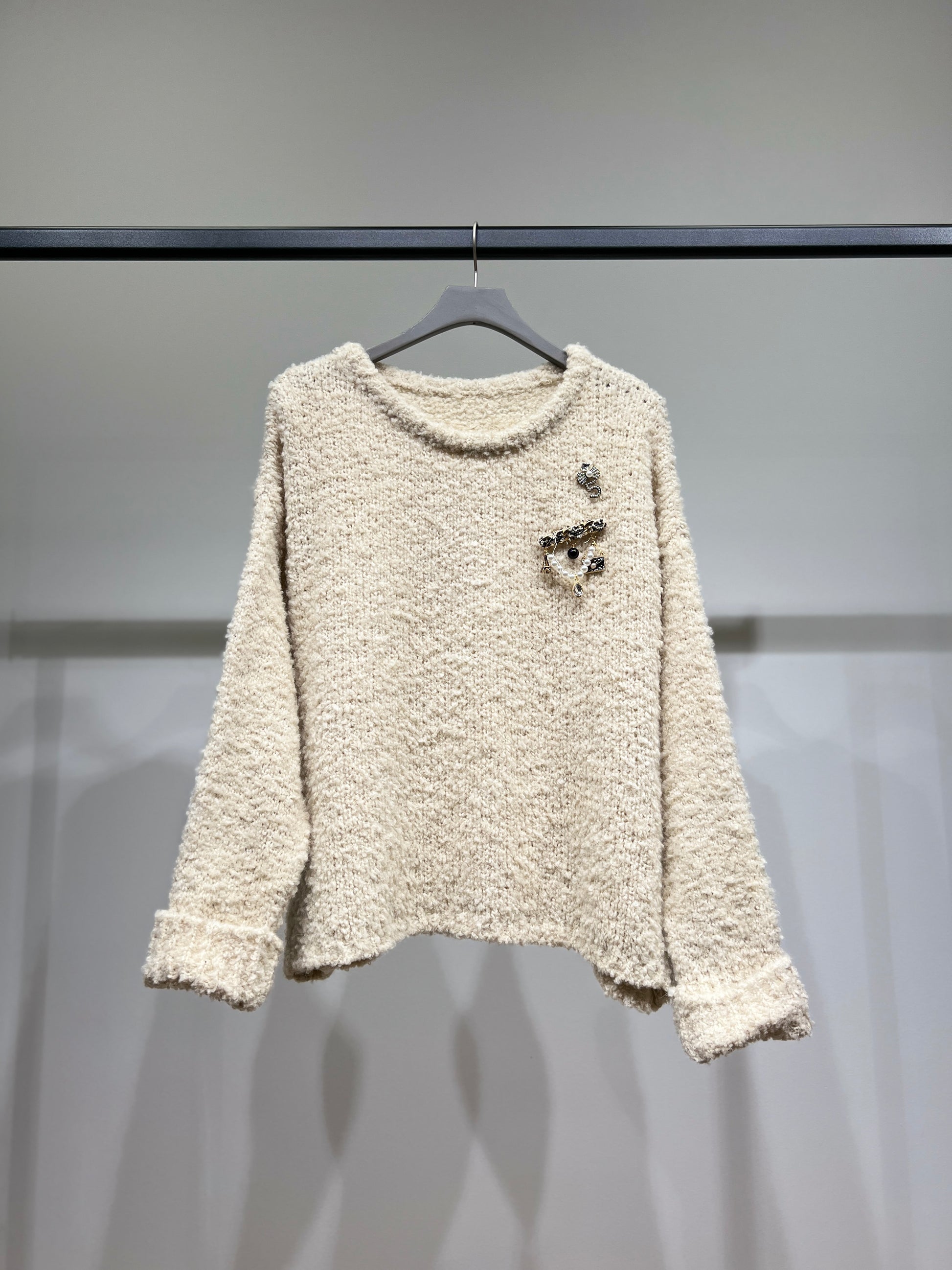 Pull Moumoute Large Manches Ourlet Pins Décoratifs
