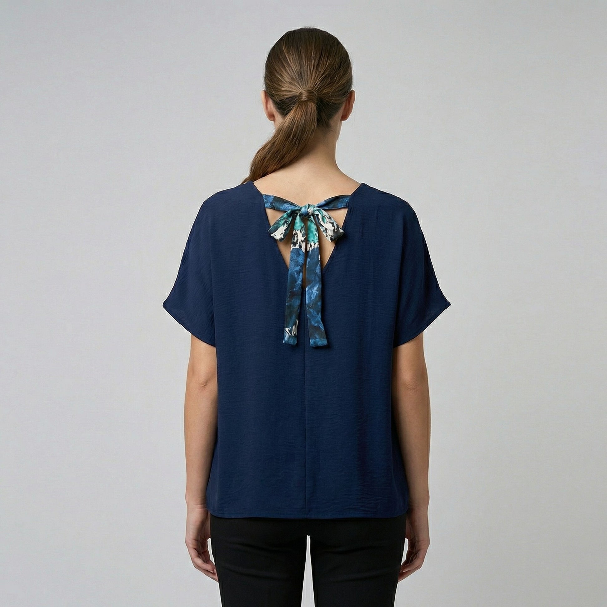 T-Shirt Col V Dos Ouvert Nœud Décoratif Léopard Taille Unique Convient Aux Tailles 38-44