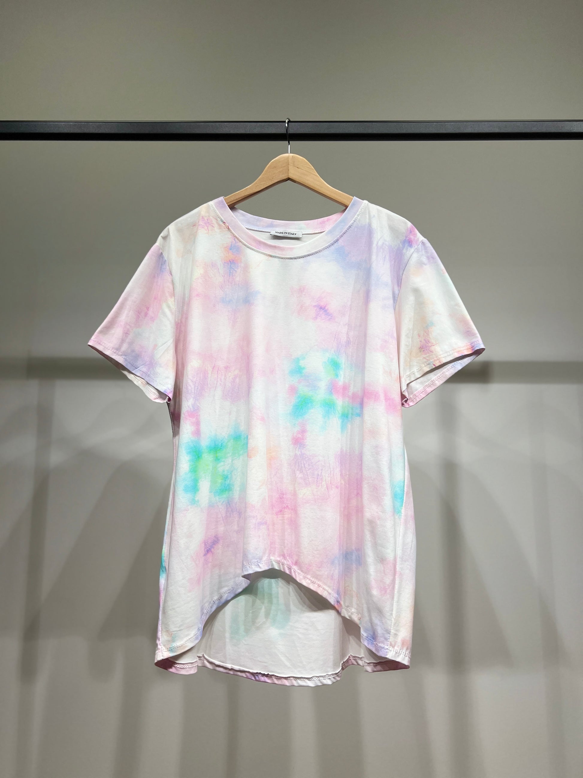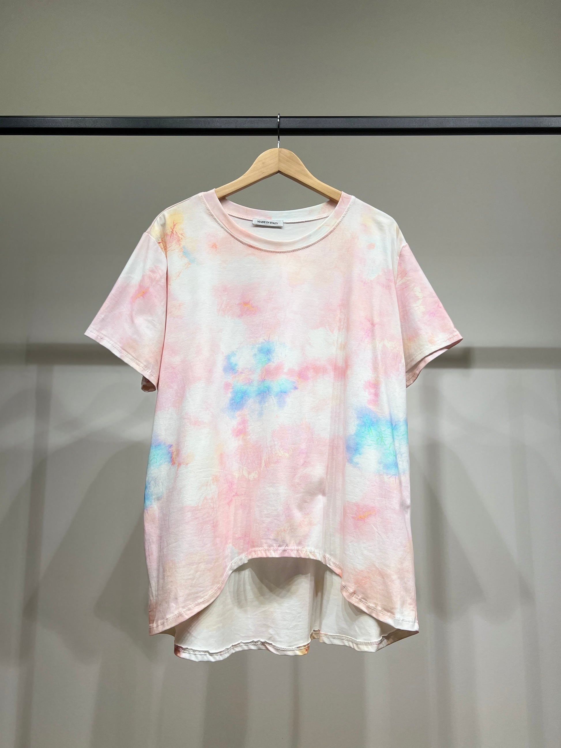 T-Shirt High Low Motif Tie & Dye Aquarelle 100% Coton