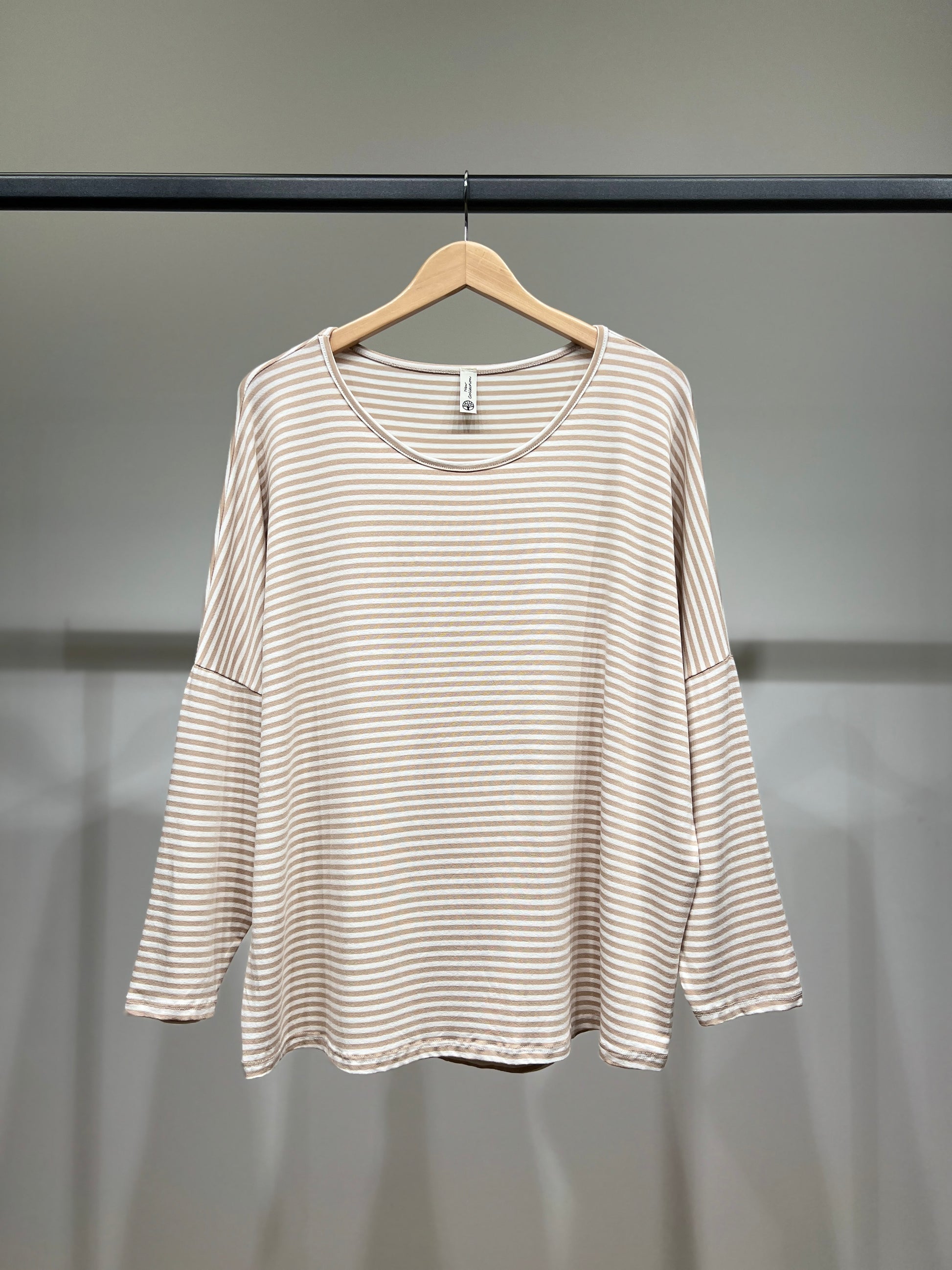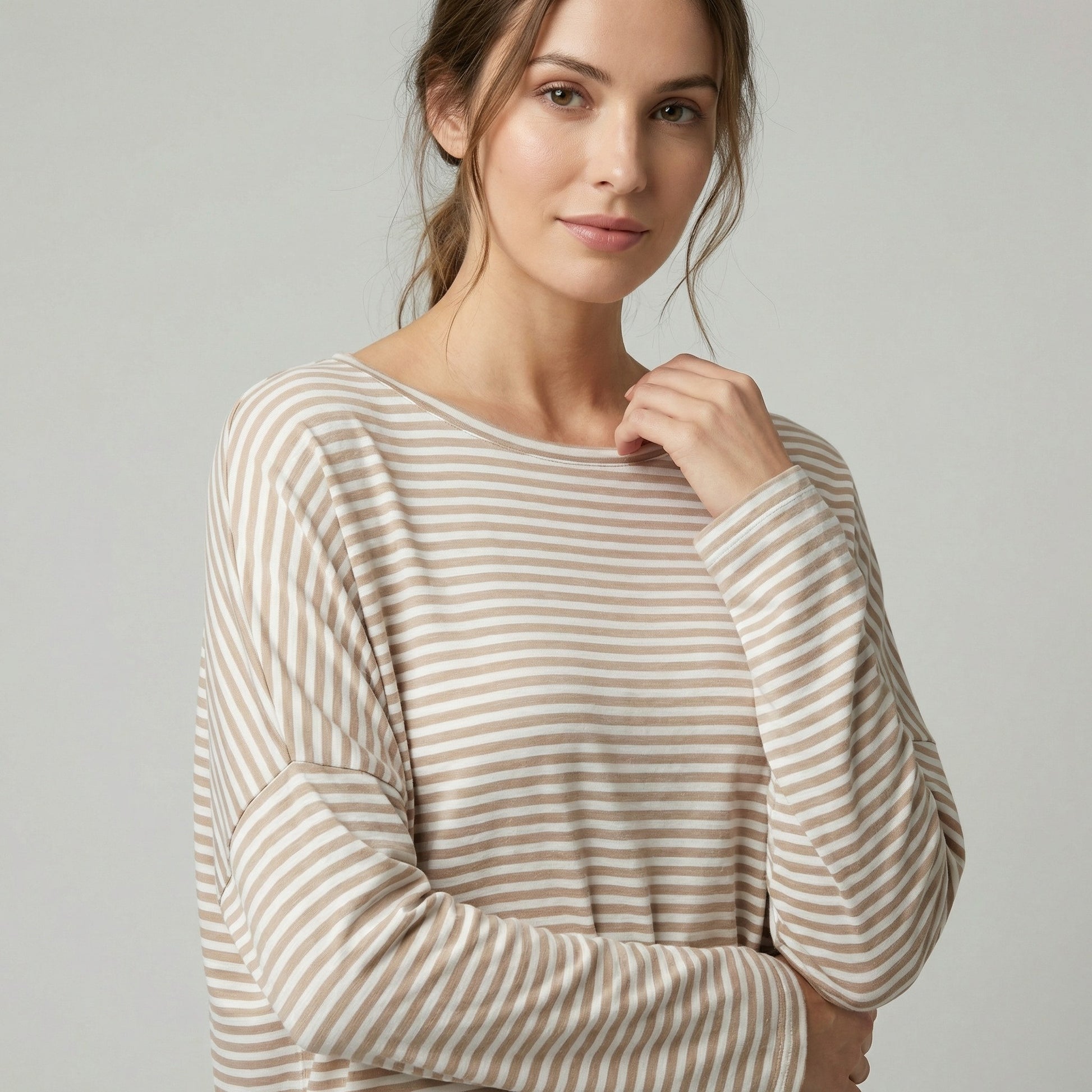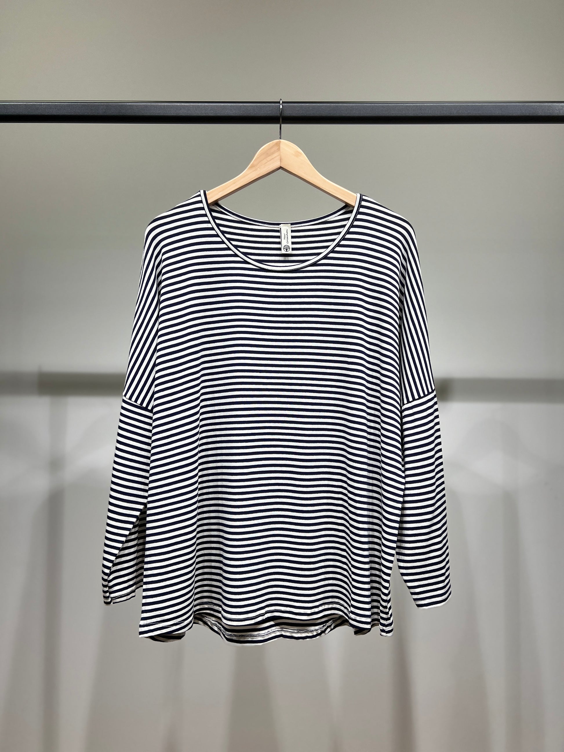 T-Shirt Large Col Rond Motif Marinière Emmanchures Tombantes 95% Viscose Taille Unique Convient Aux Tailles 38-46