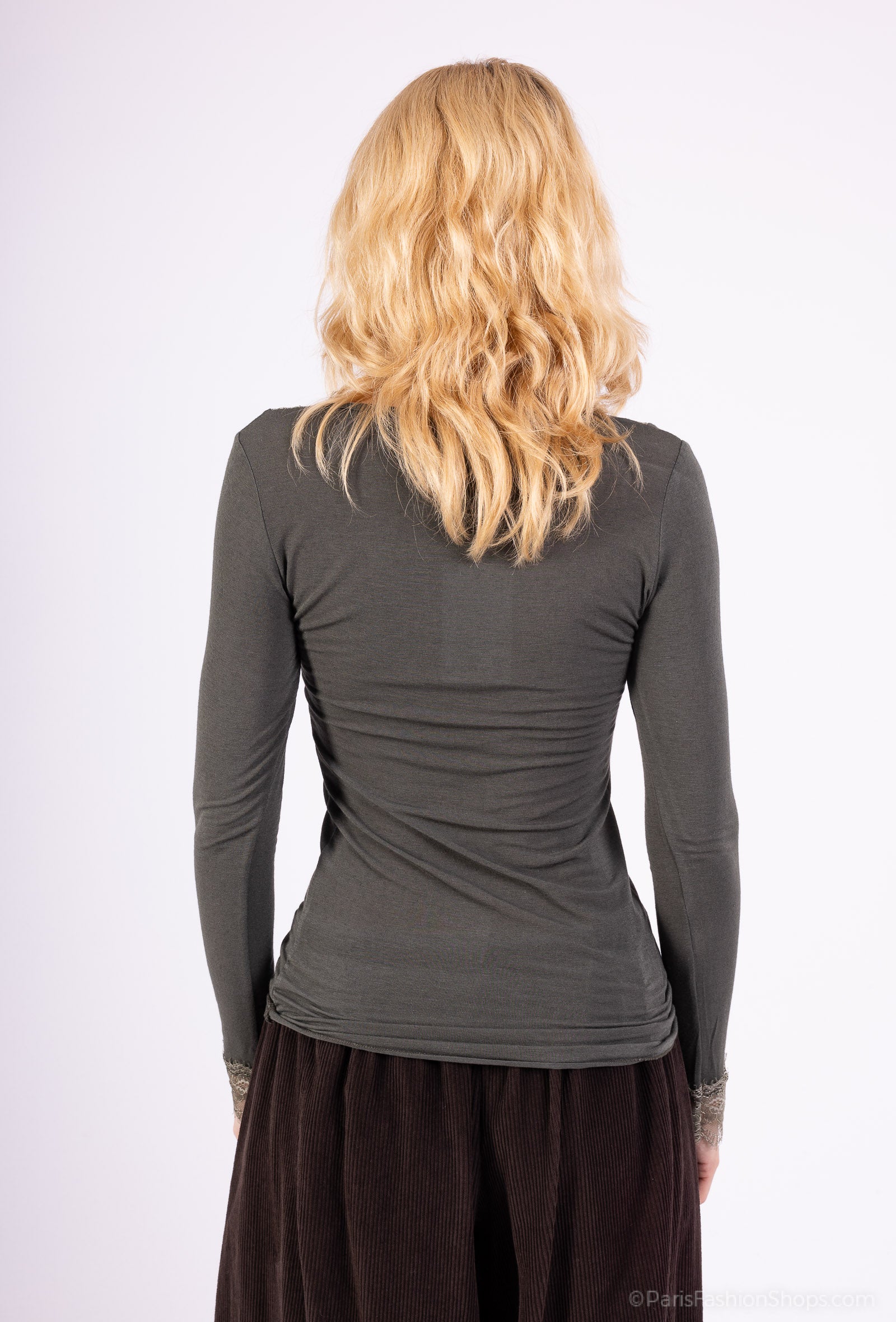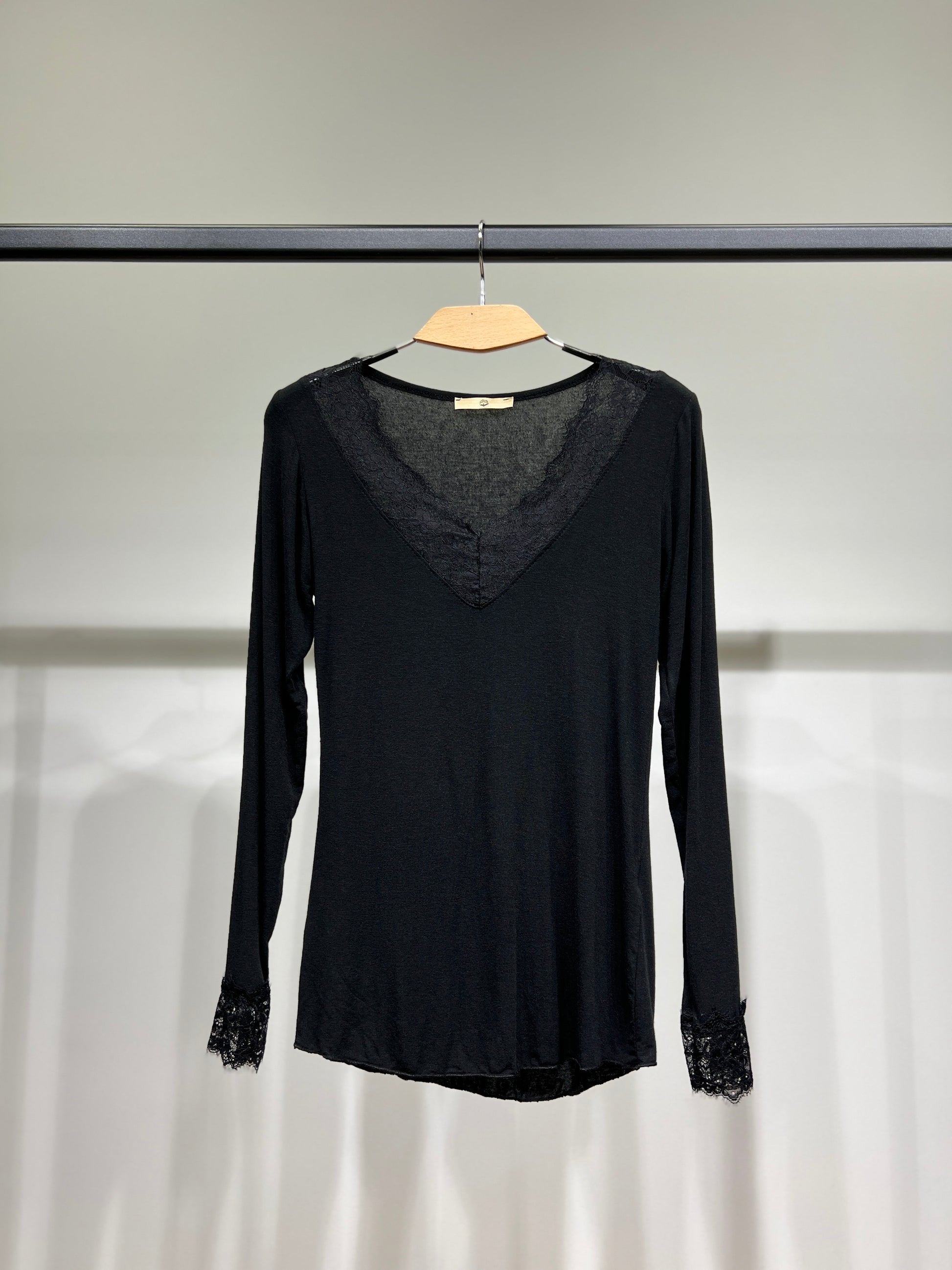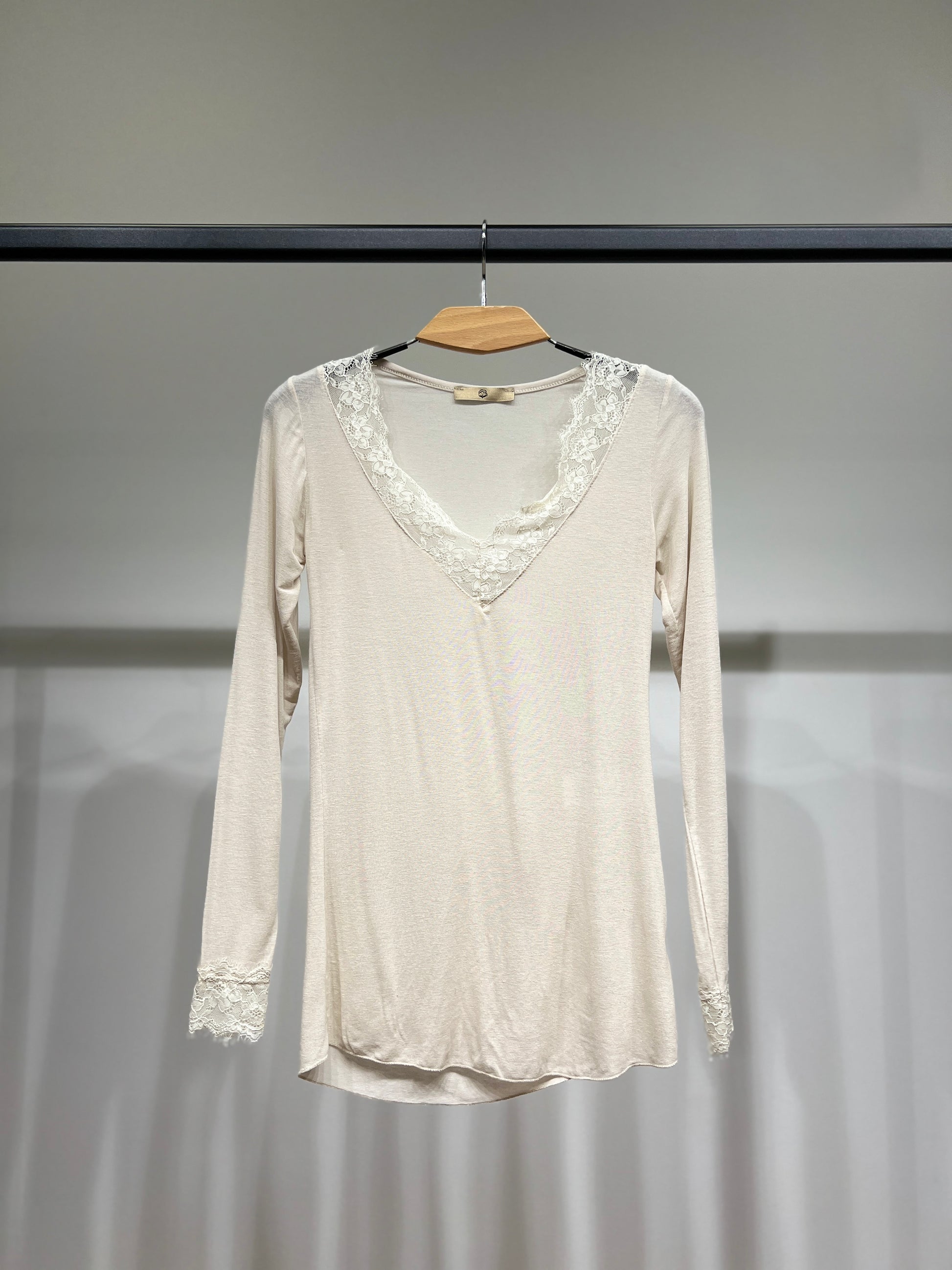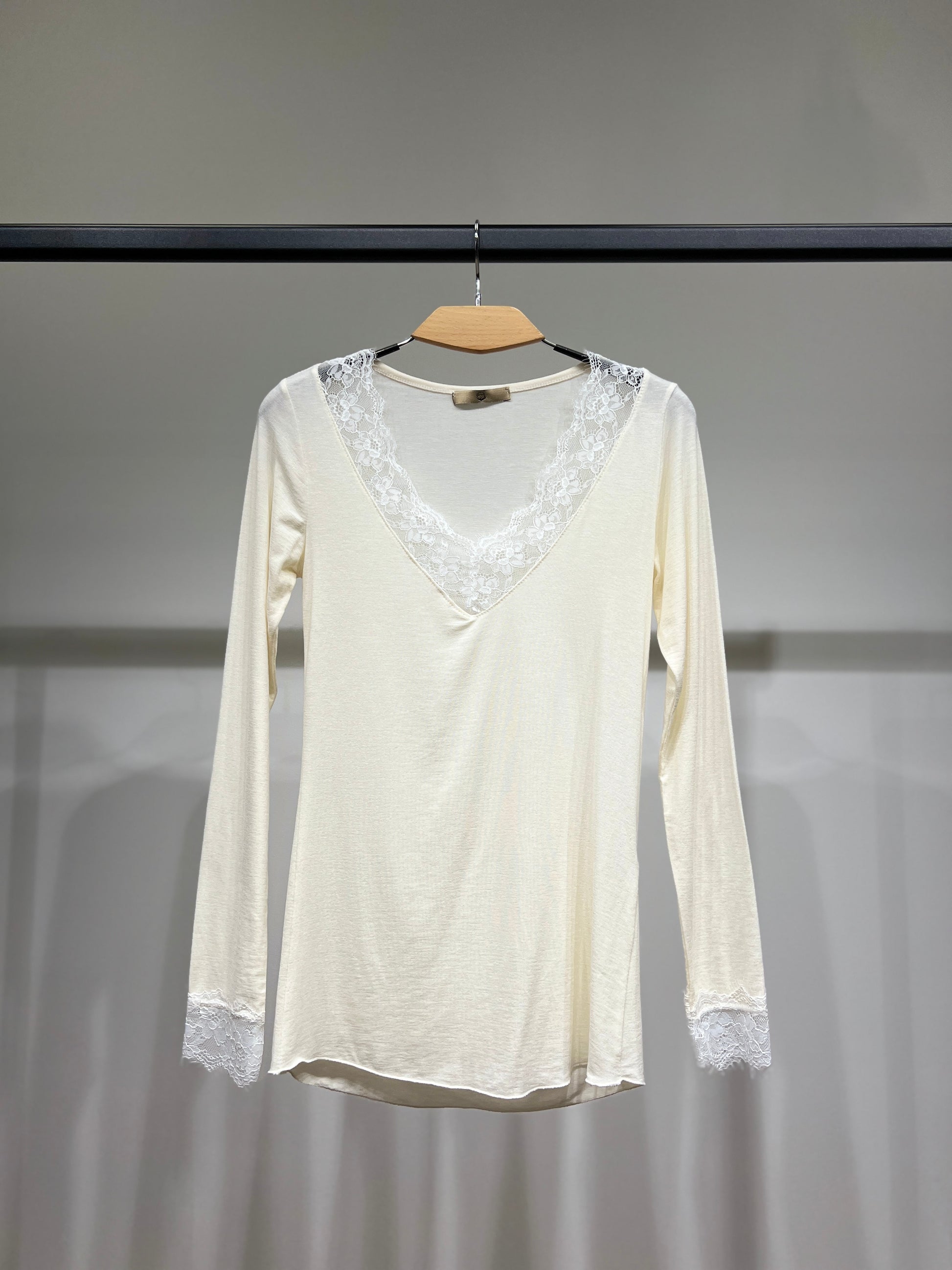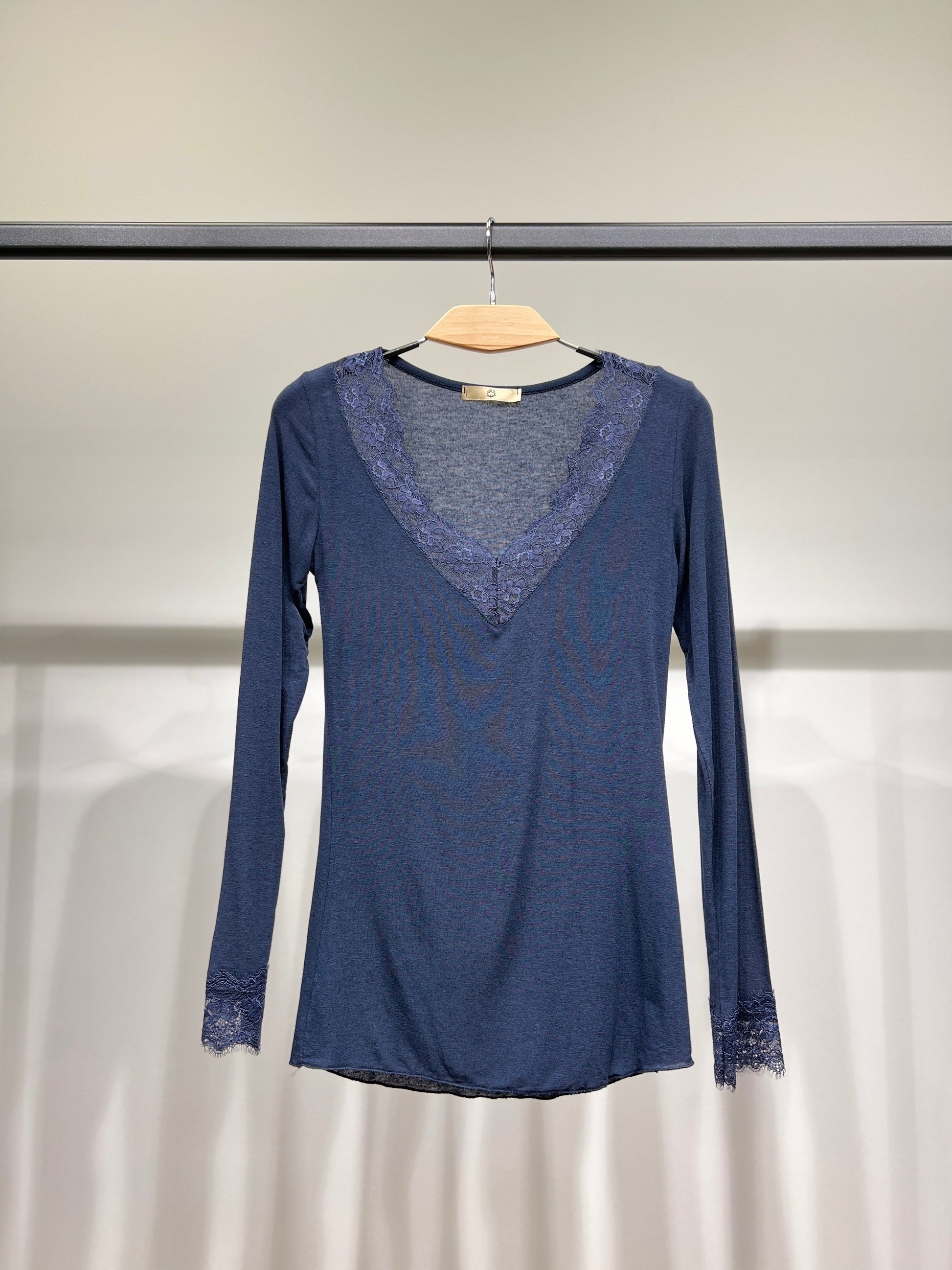 T-Shirt Léger Col V Manches Longue Dentelles 15% Cachemire