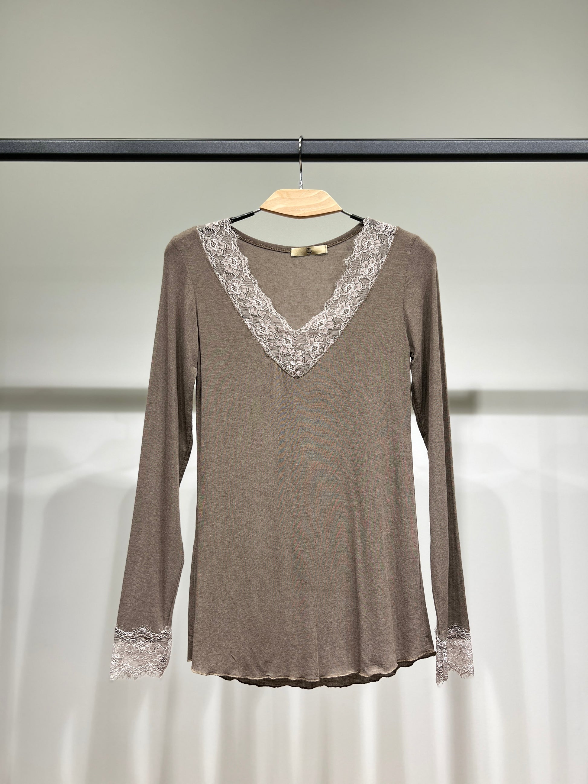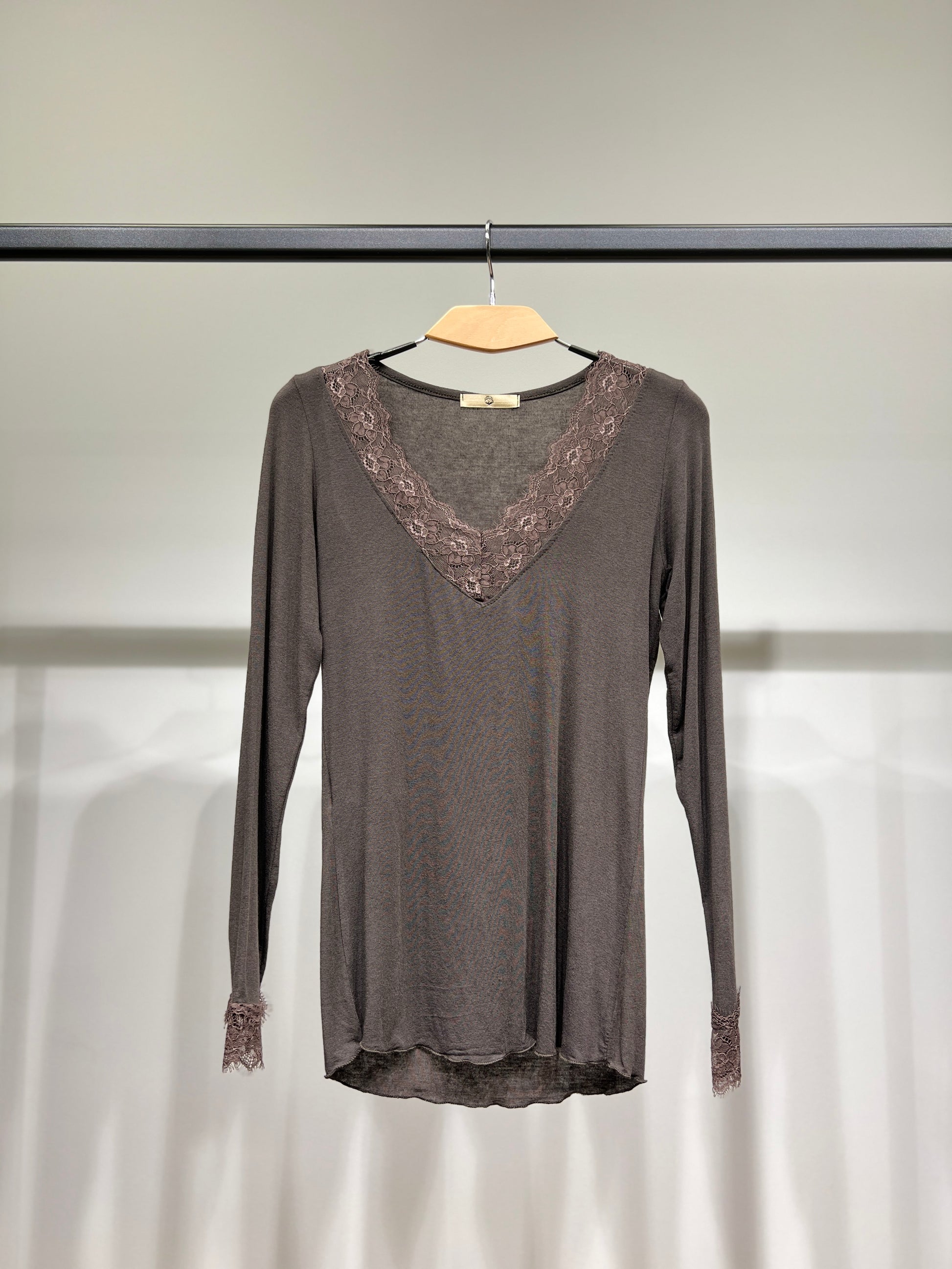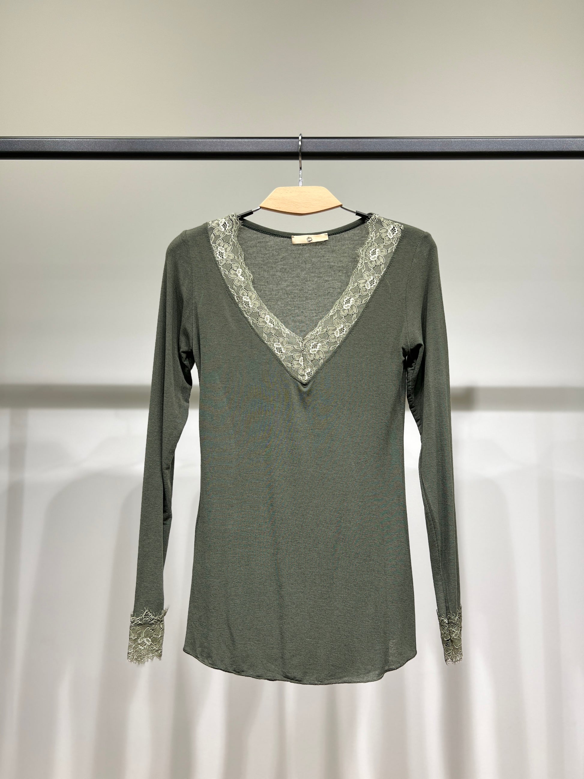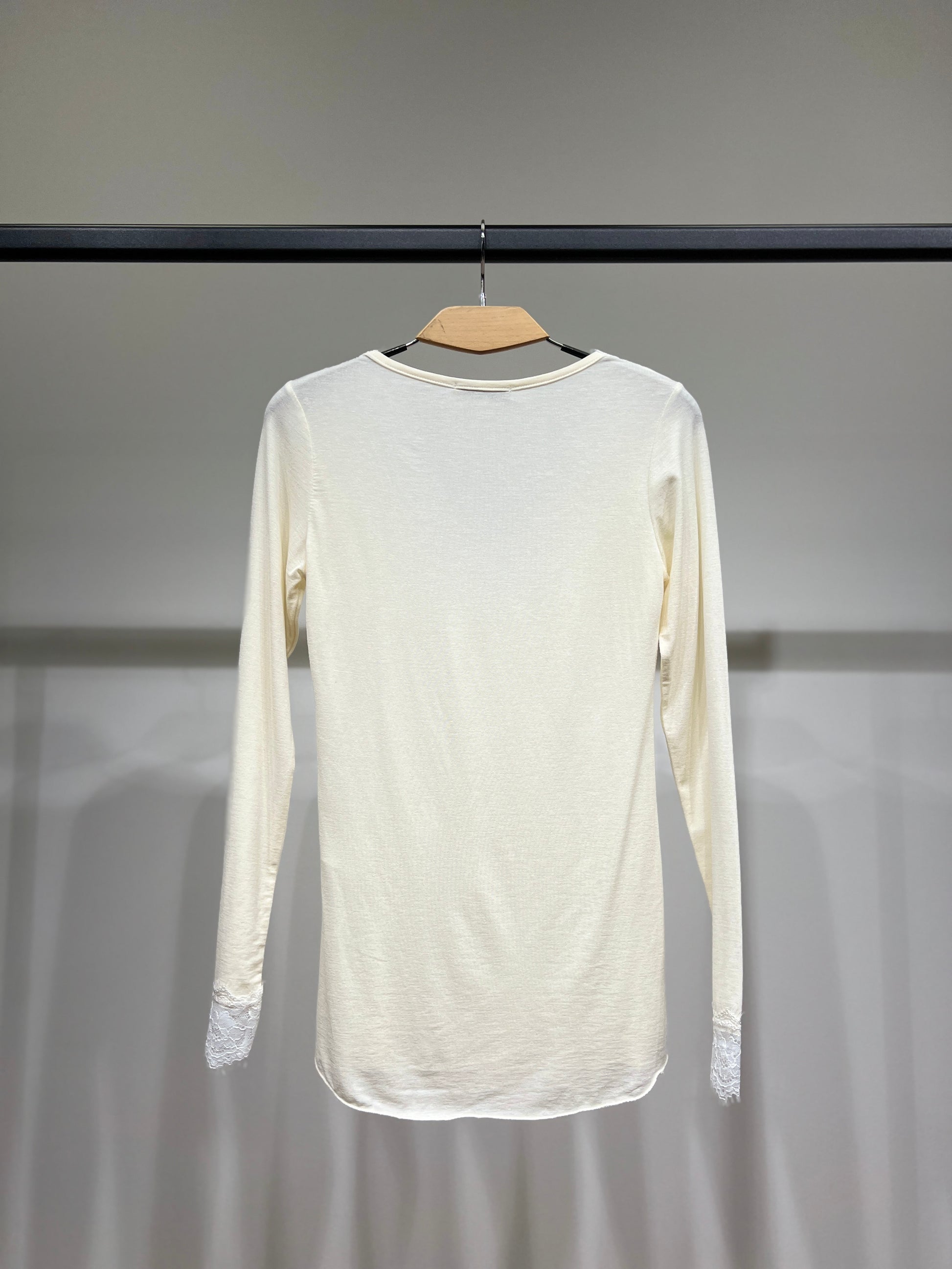 T-Shirt Léger Col V Manches Longue Dentelles 15% Cachemire