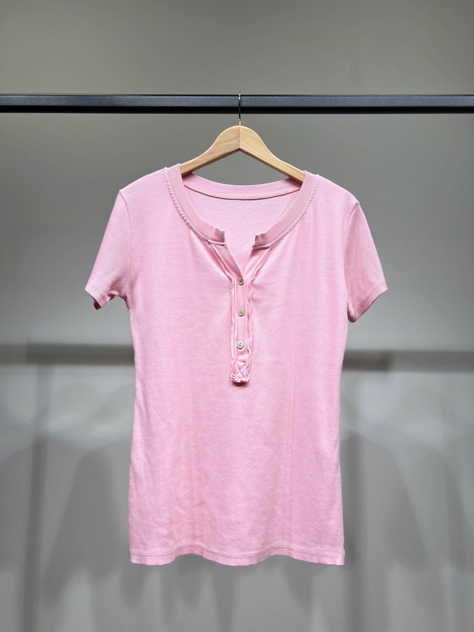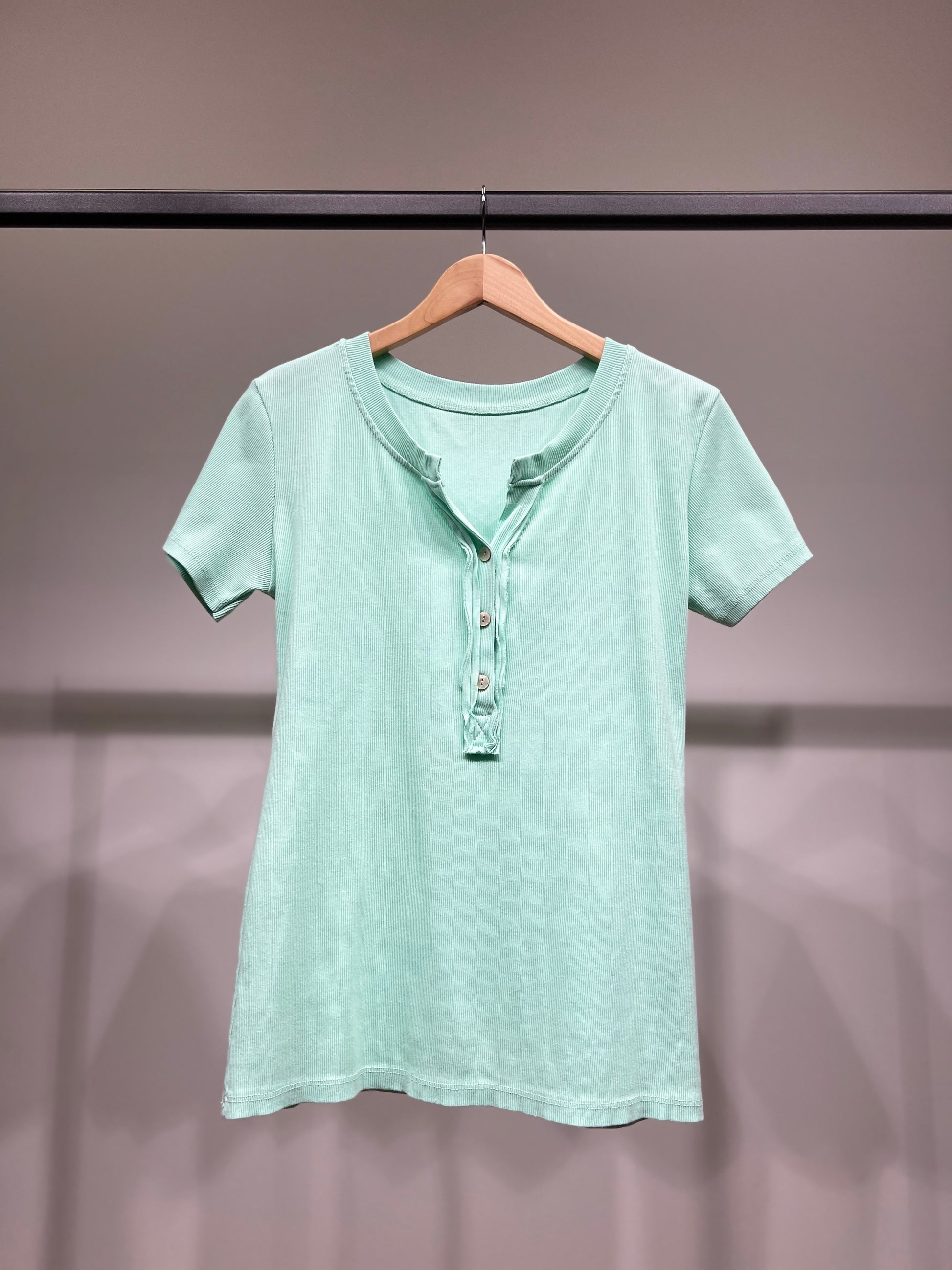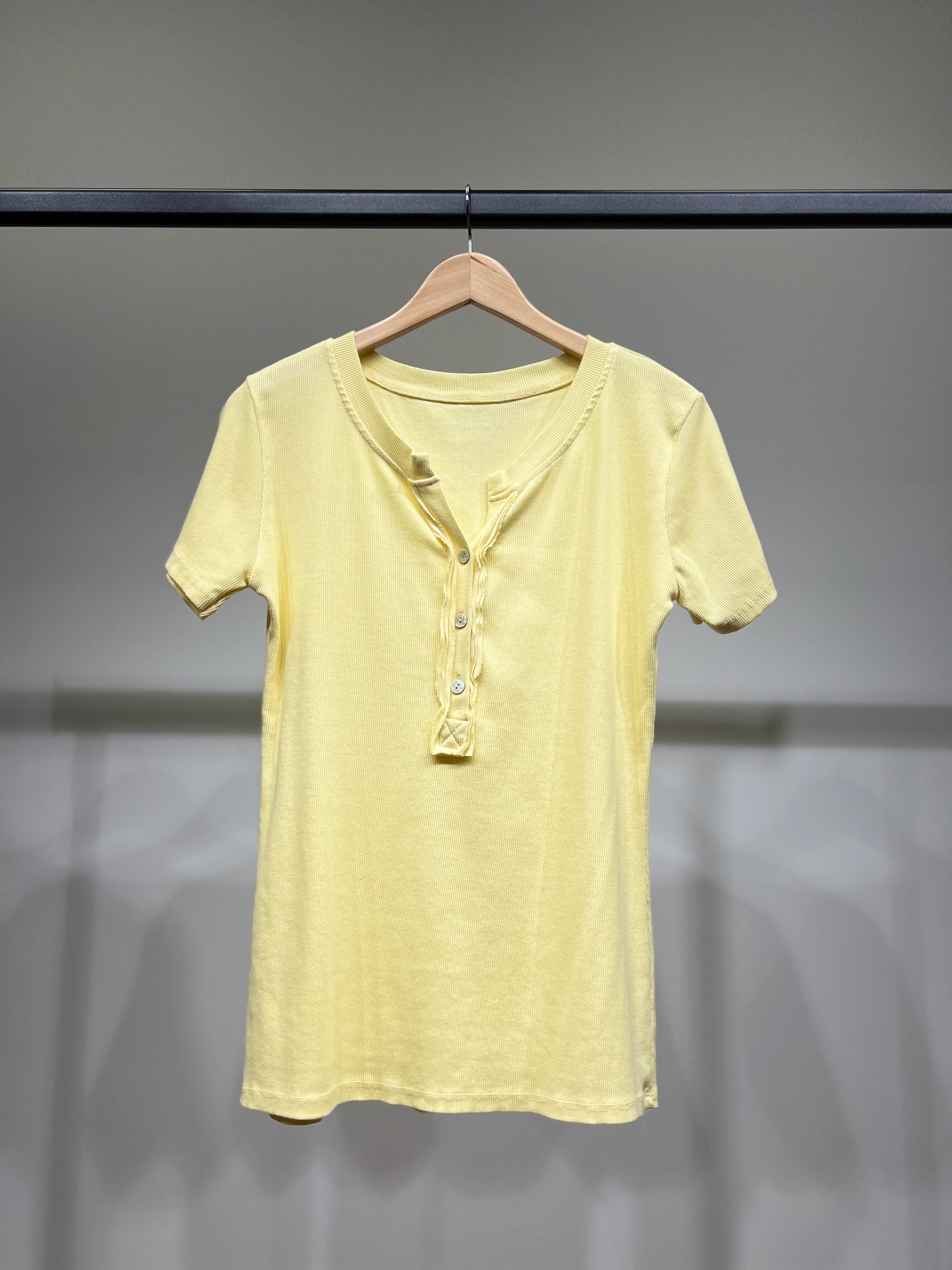 T-Shirt Manche Courte Côtelé Col Tunisien 90% Coton