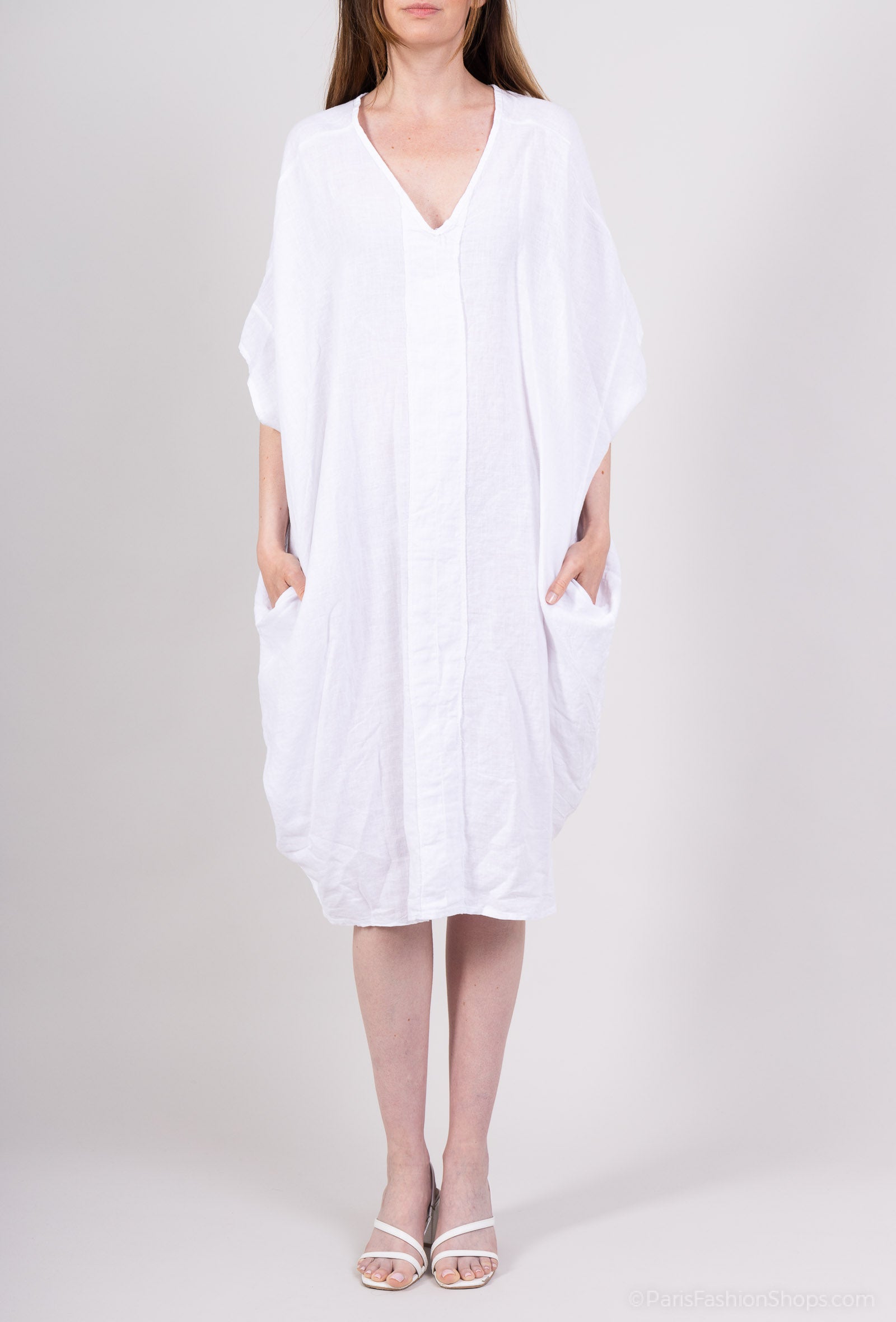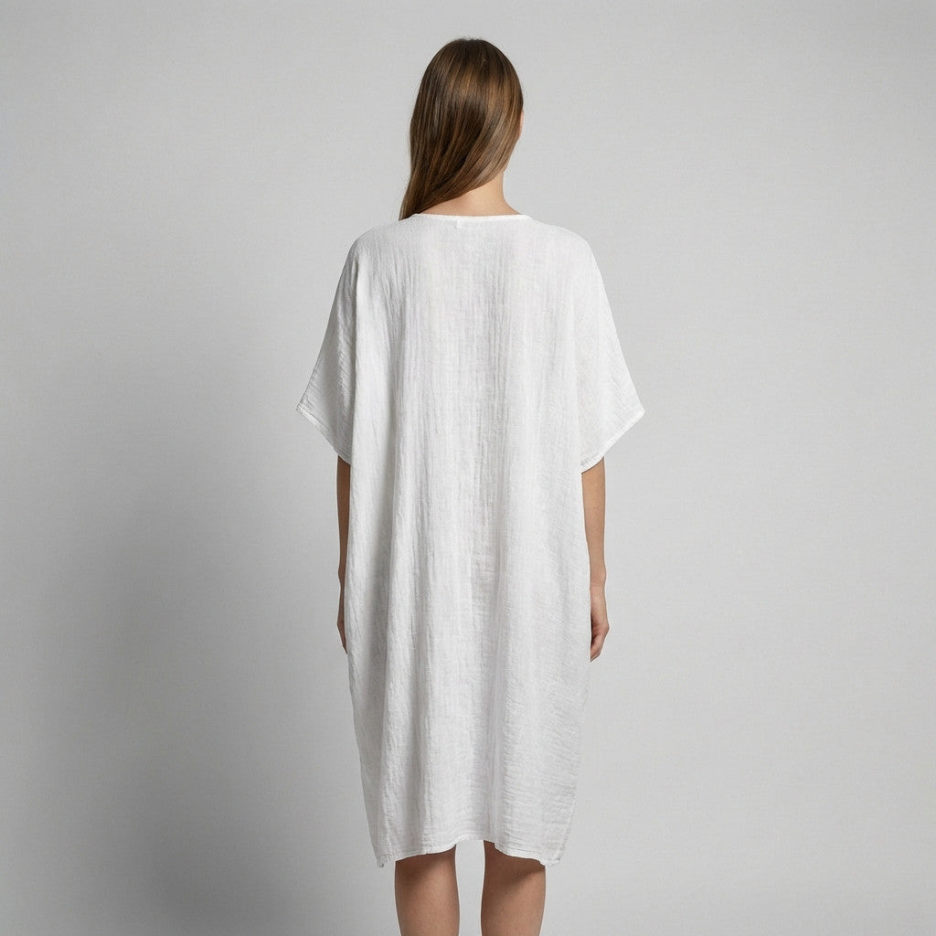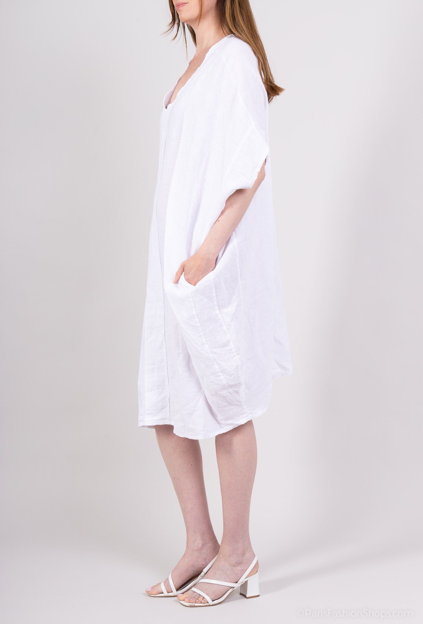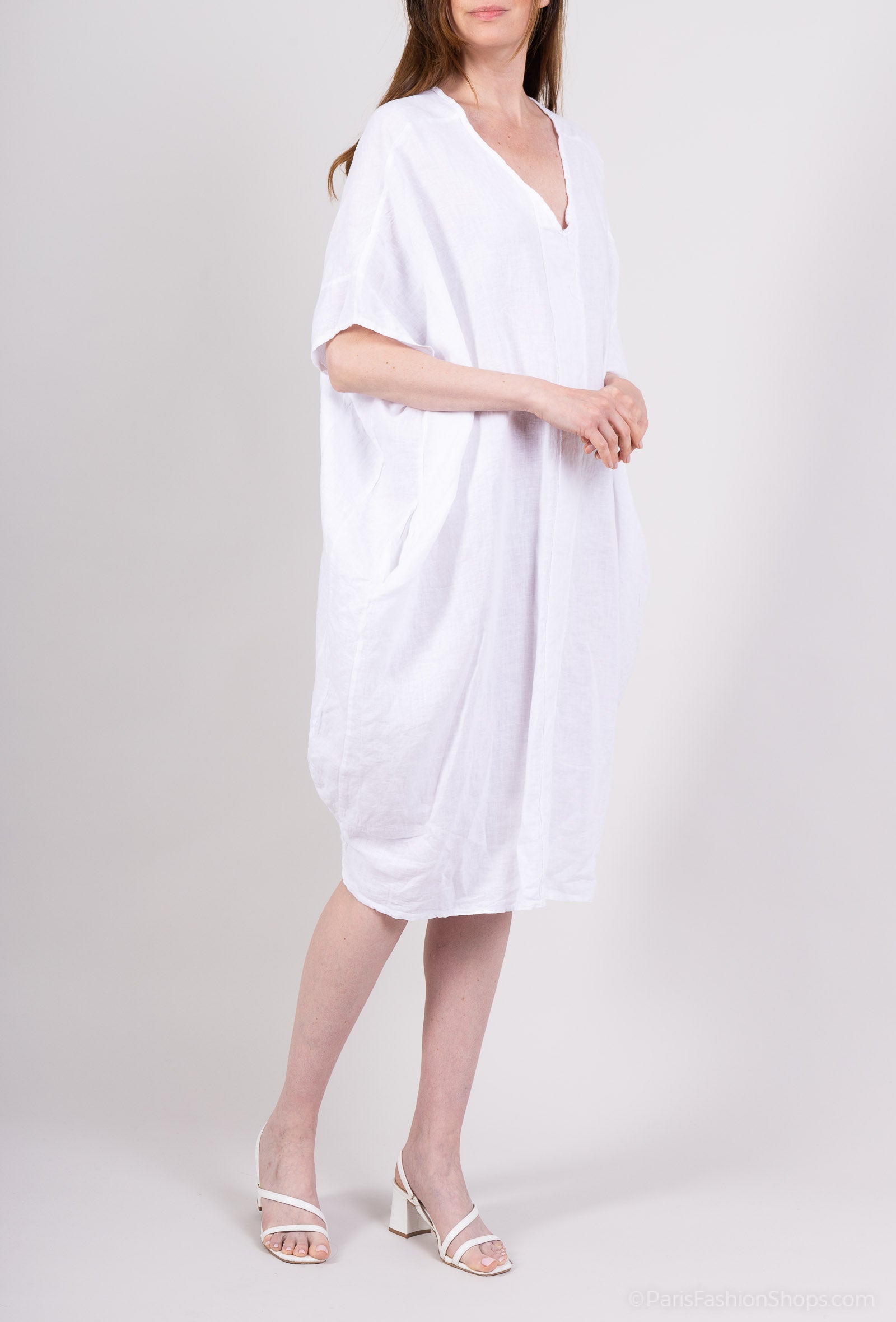 Tunique Large Col V Manche Chauve Souris 100% Lin