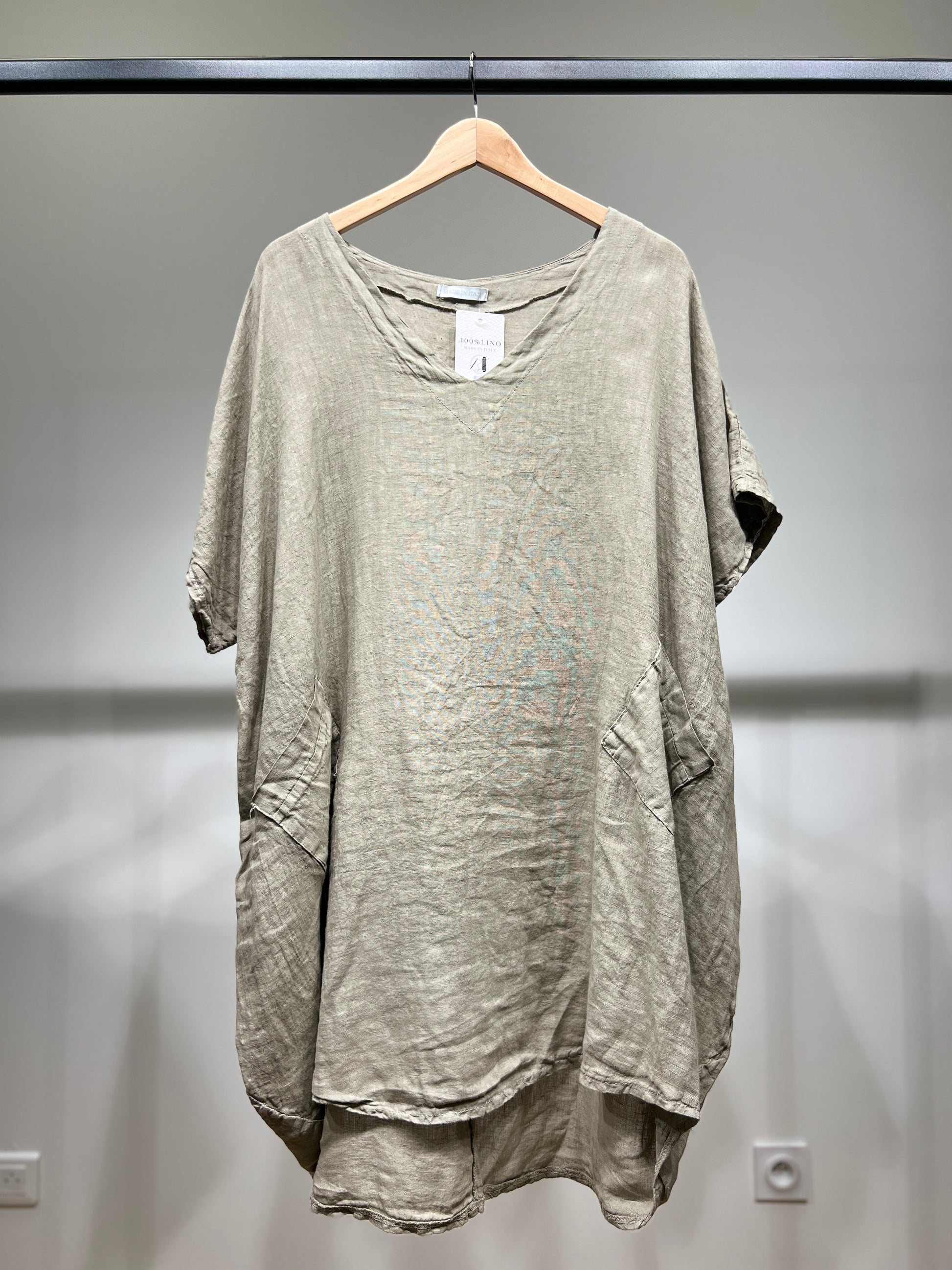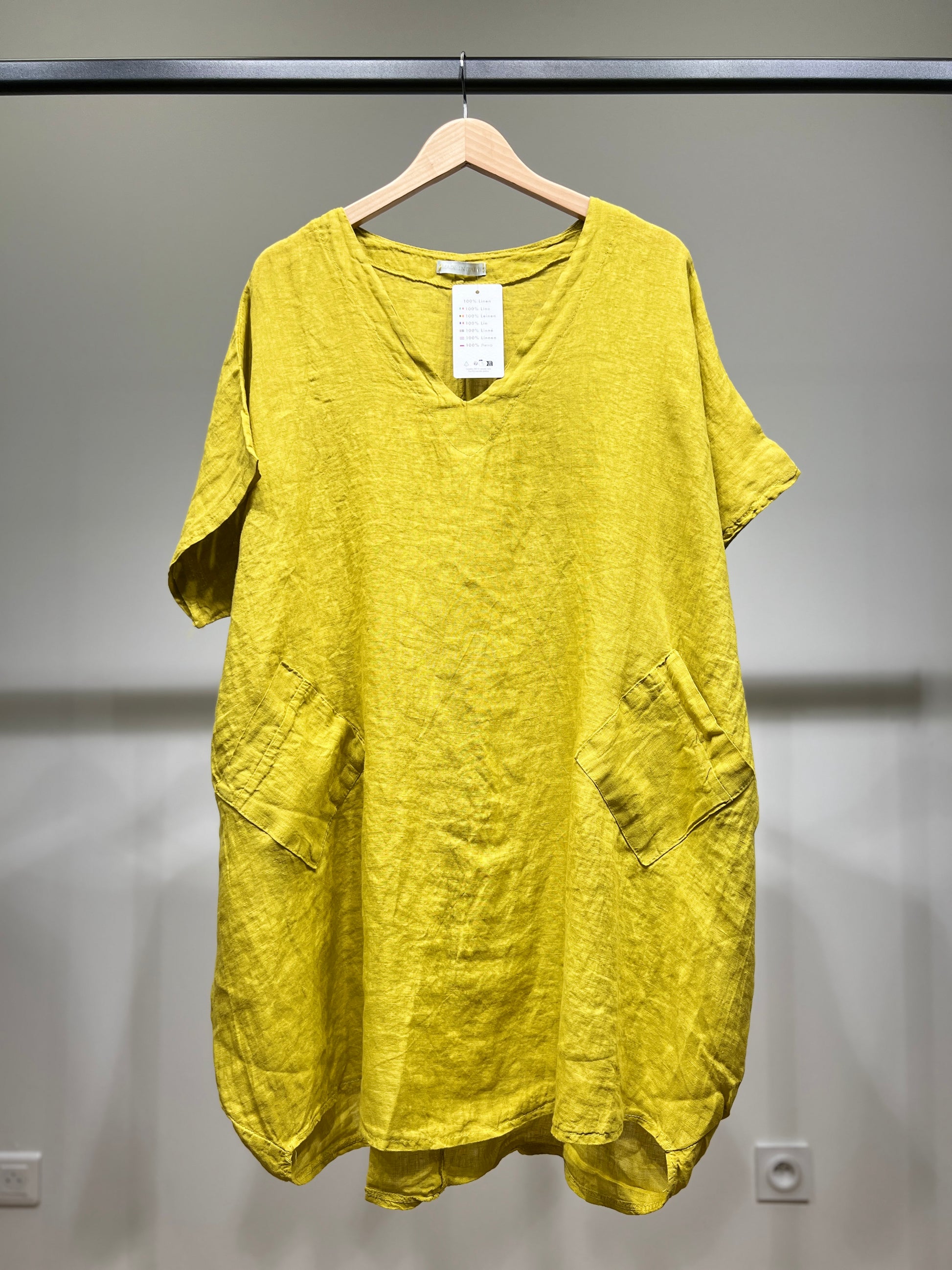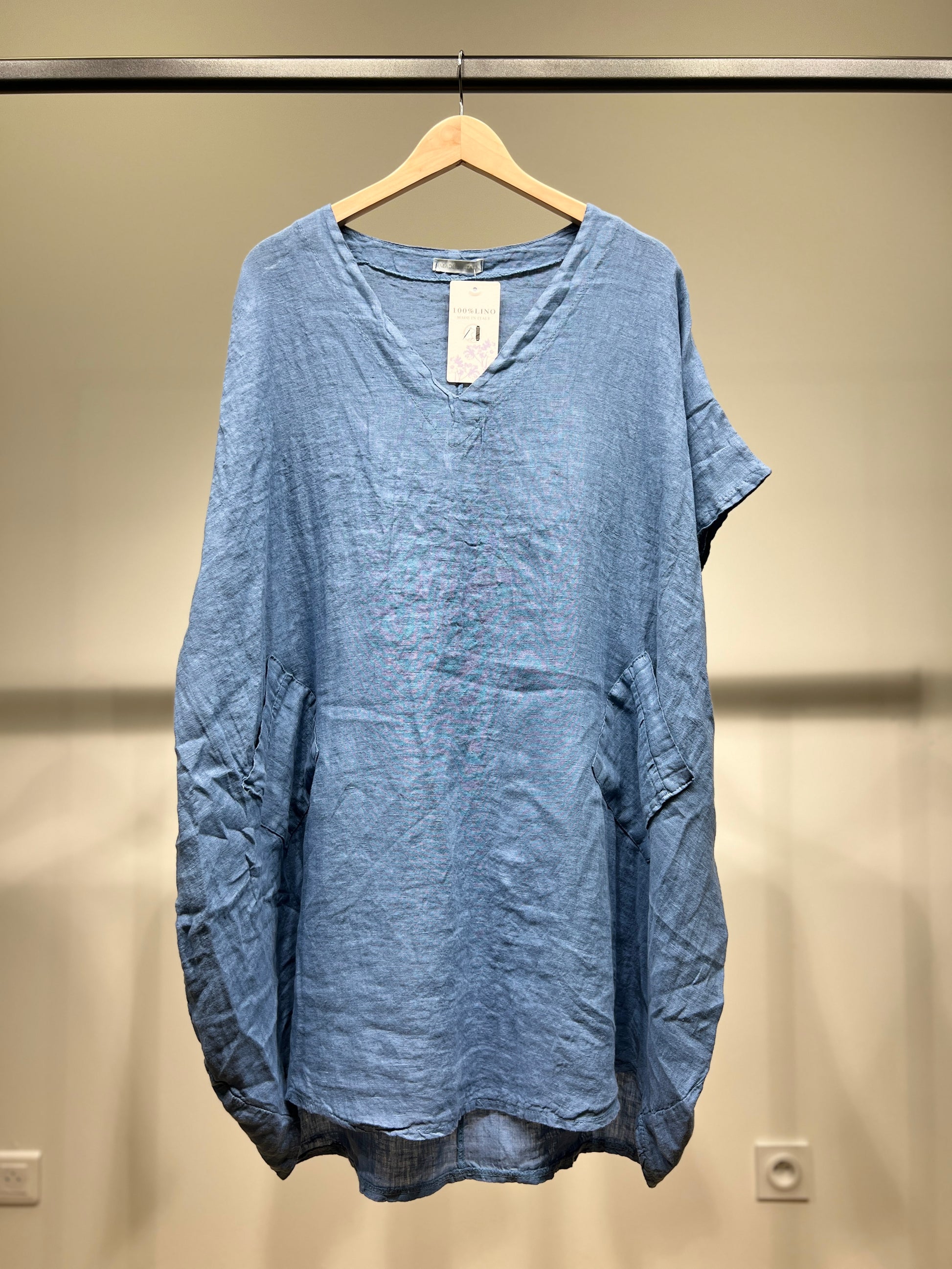 Tunique Large Col V Manche Courte à Poches 100% Lin Taille Unique Convient Aux Tailles 38-48